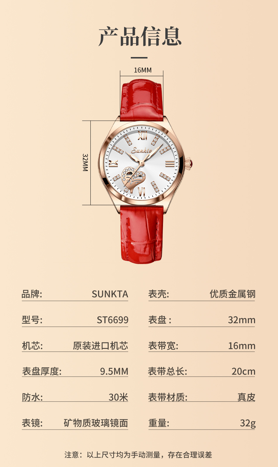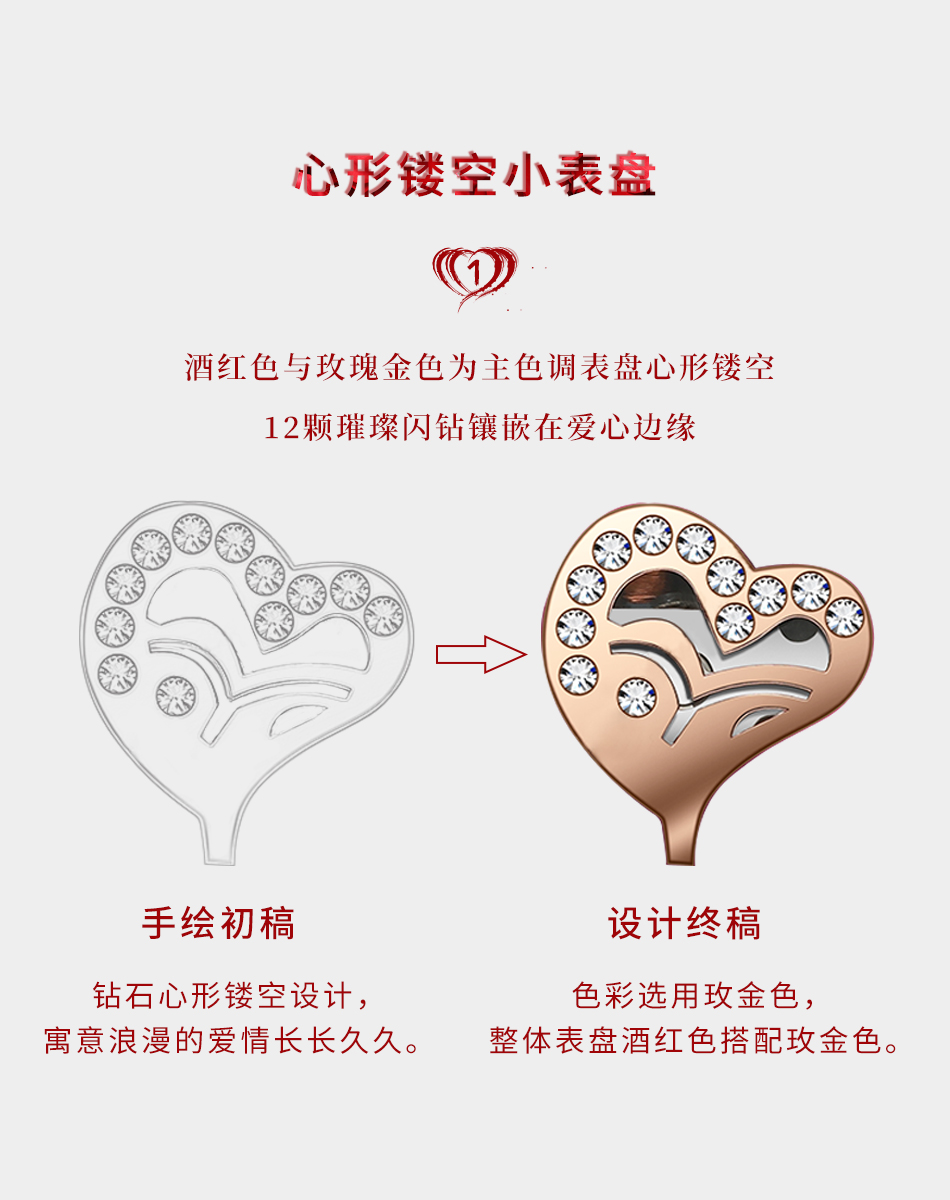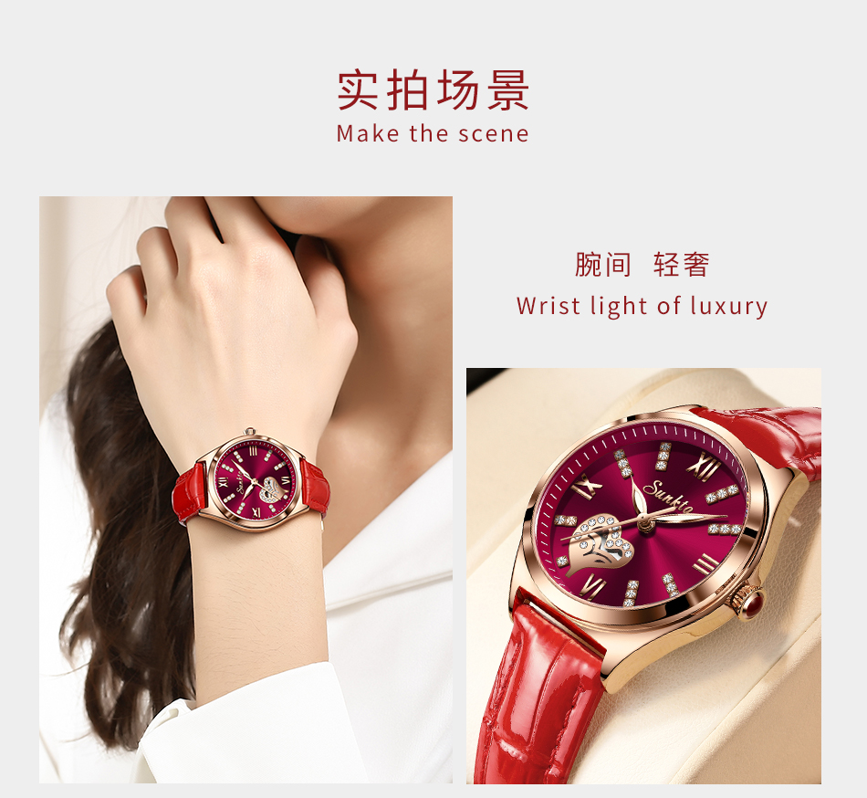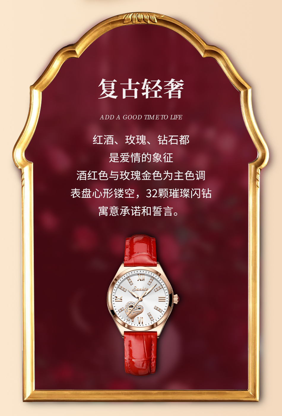 SUNKTA 桑达 爱心浪漫镂空韵味时尚腕表ST6699 经典女士手表 百搭风格