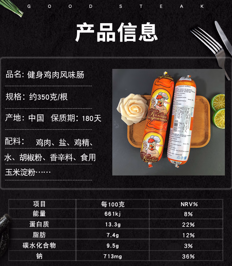 俄罗斯风味哈客斯鸡肉肠350g