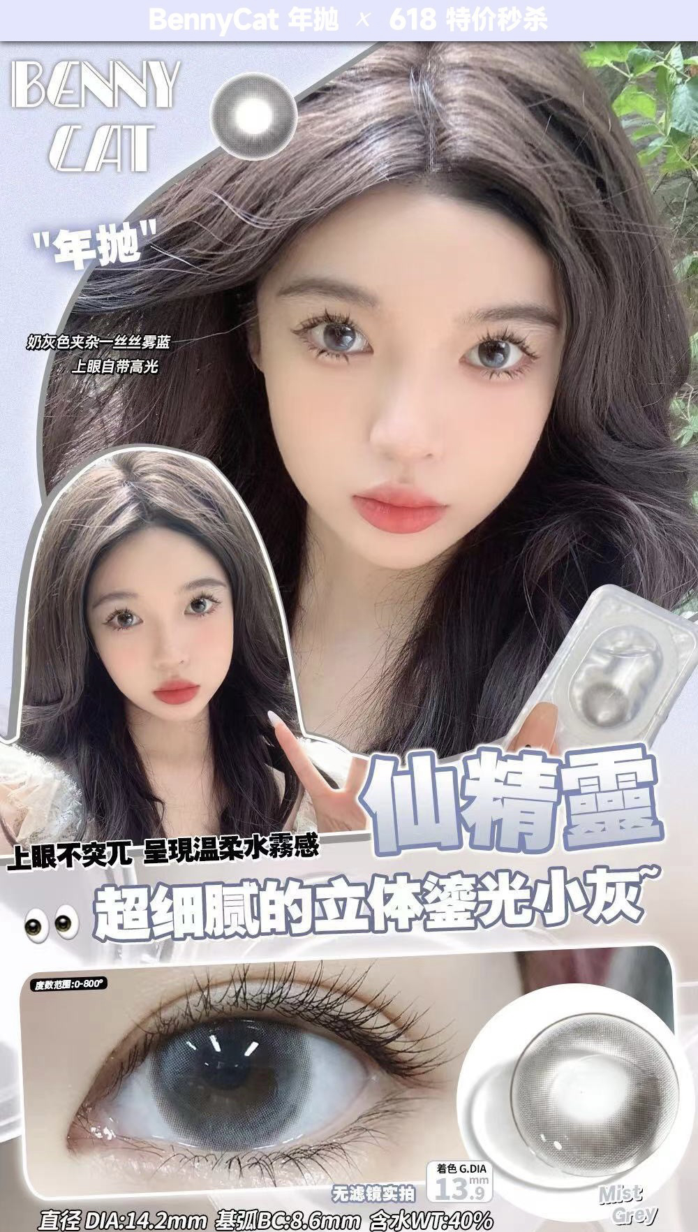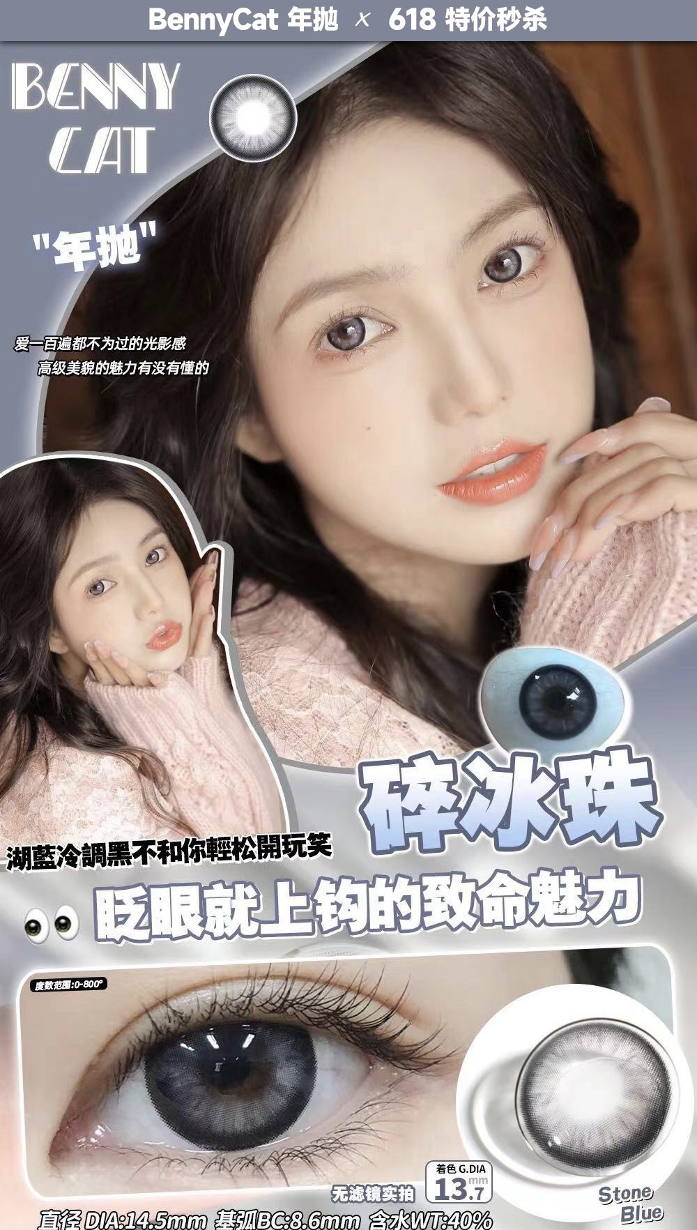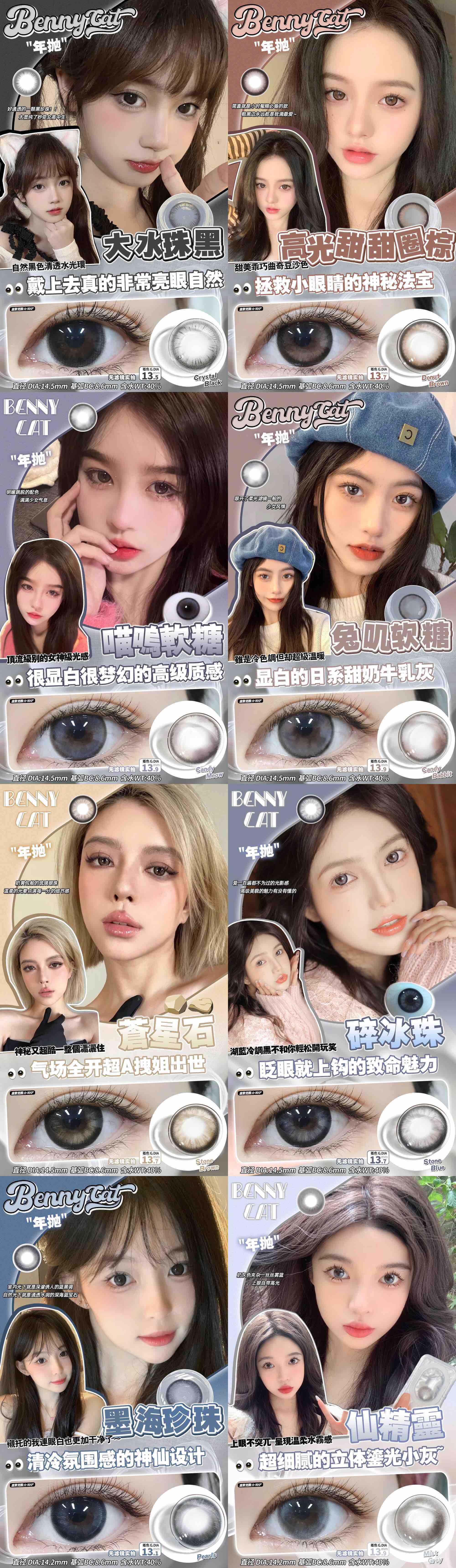 Bennycat2024年抛活动;红遍小红书镜片采用医用NVP保湿因子+HEMA 锁水工艺敏敏眼放心冲;活动 88/副 108/2副 148/3副 168/4副