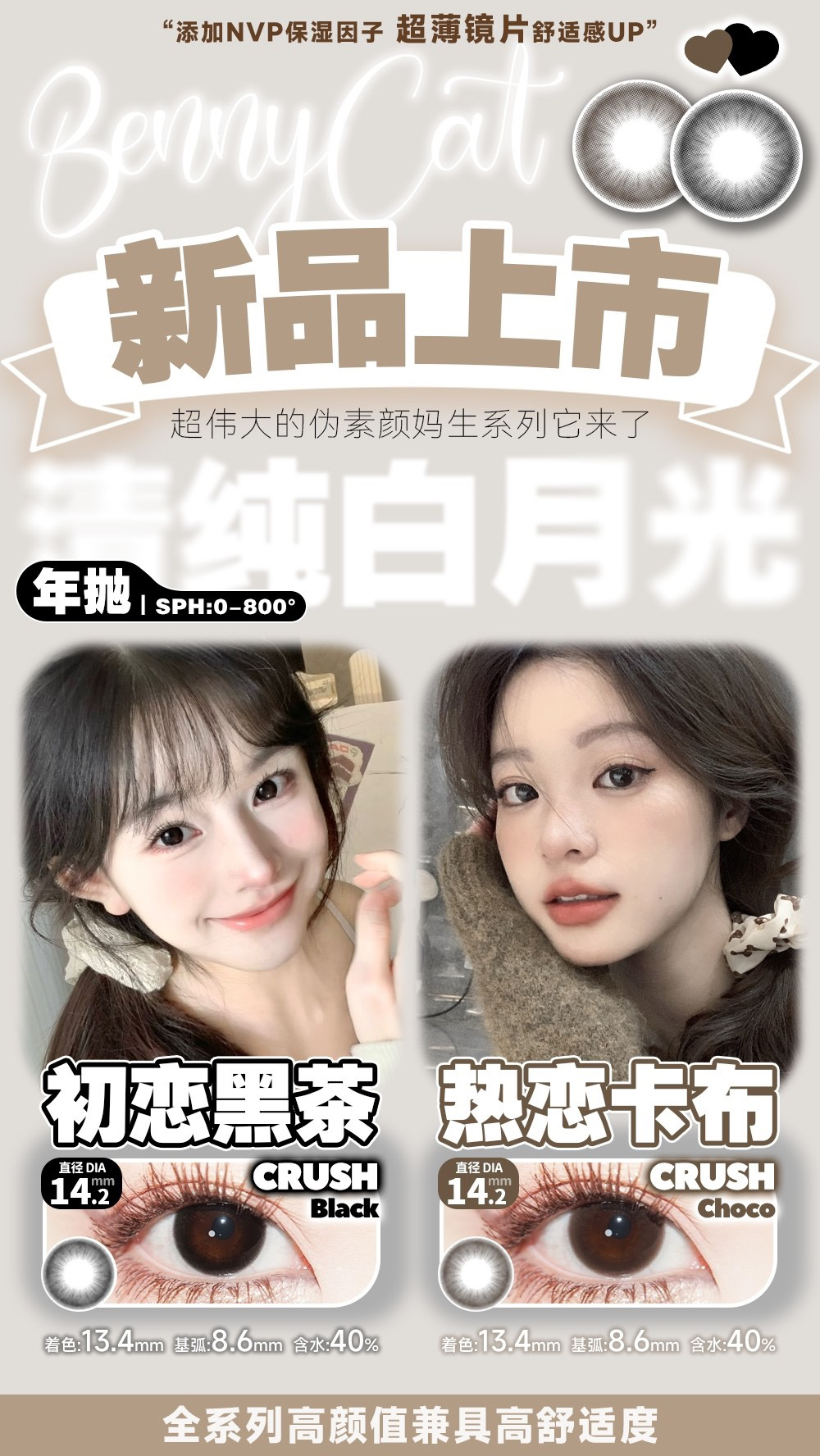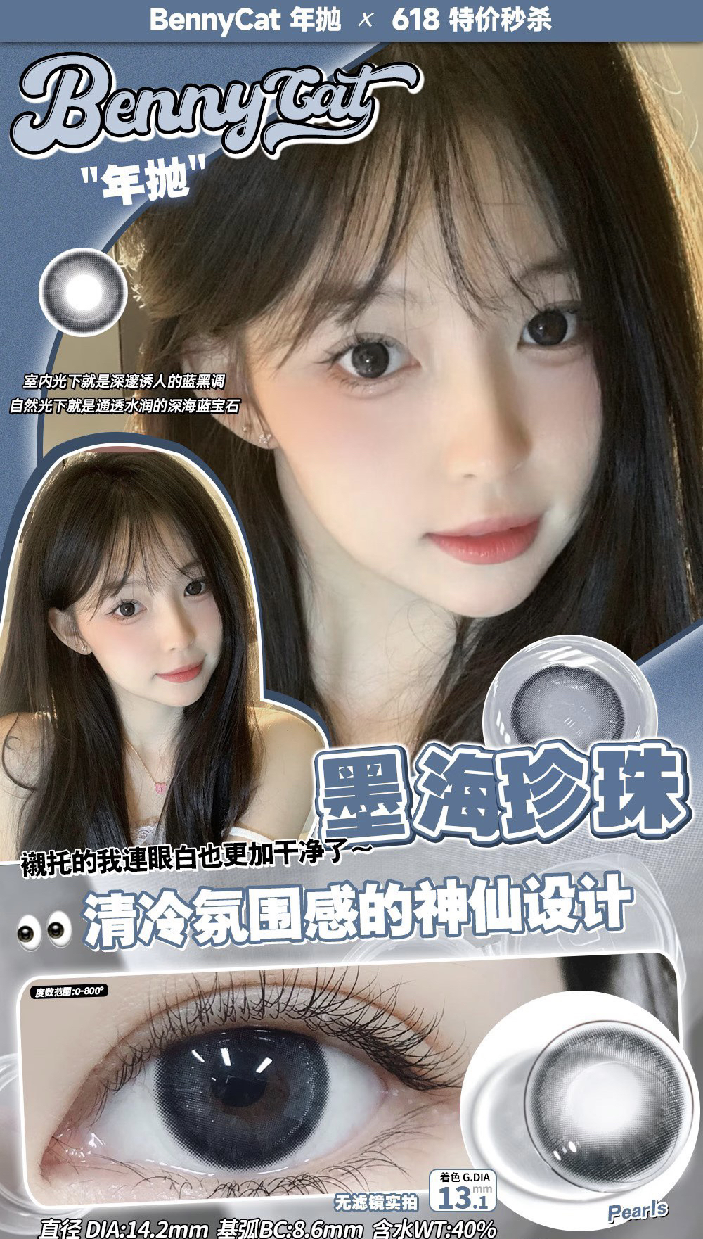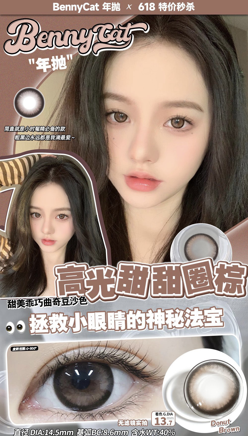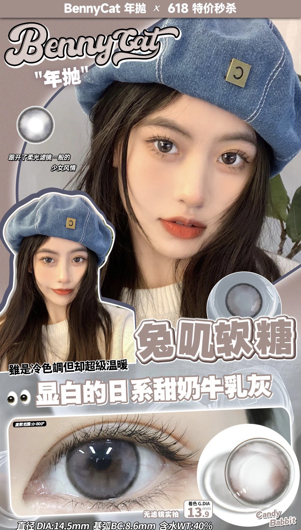 Bennycat2024年抛活动;红遍小红书镜片采用医用NVP保湿因子+HEMA 锁水工艺敏敏眼放心冲;活动 88/副 108/2副 148/3副 168/4副