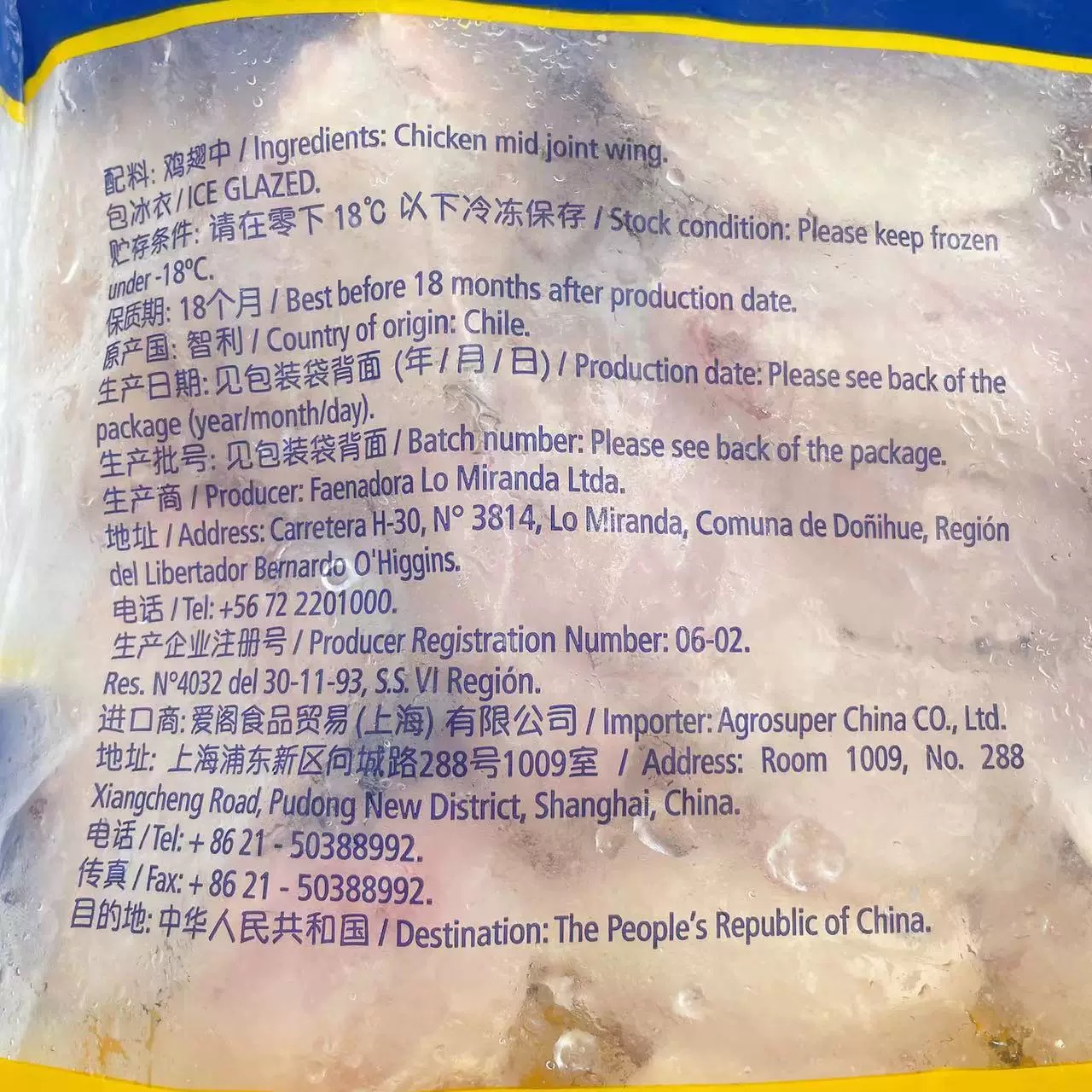【上新特价59.9元/袋】智利爱阁鸡翅中,1kg/袋,特价59.9元