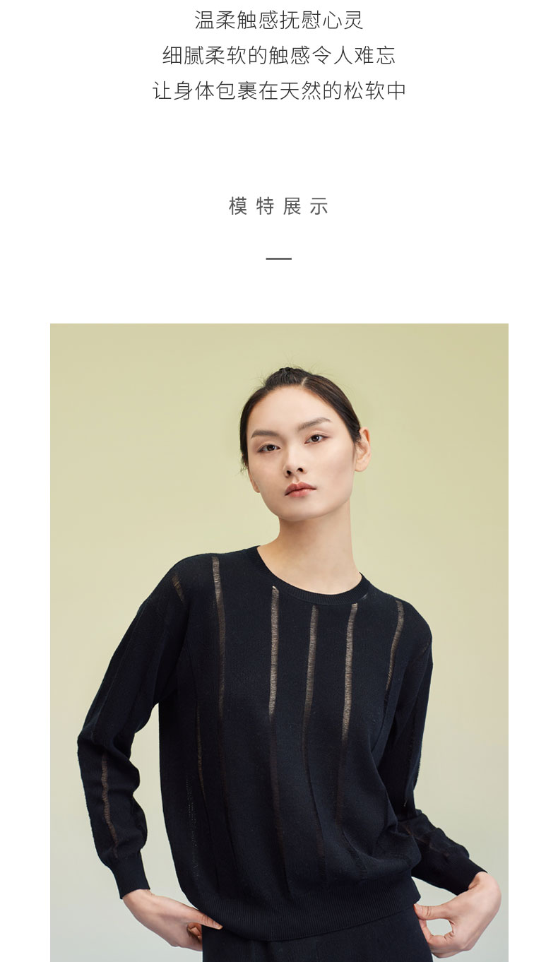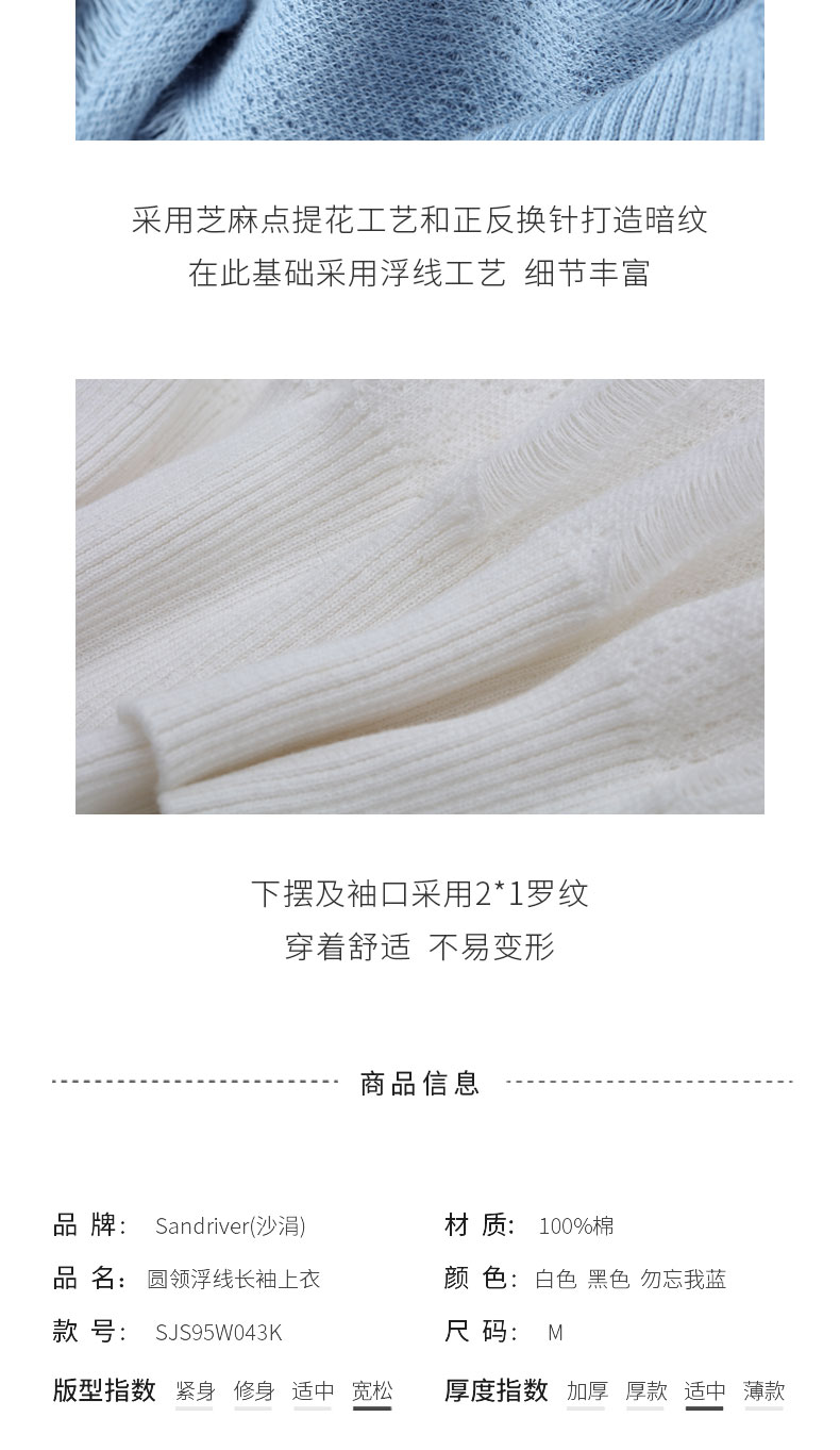 圆领浮线长袖上衣 SJS95W043K