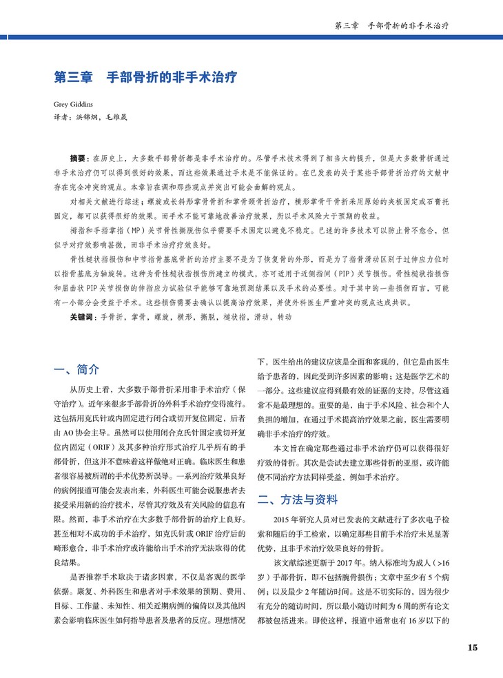 书中囊括许多著名的专家的经验分享。书中章节包括解剖学,流行病学,固定类型,关节镜的作用,复合手部损伤的策略(软组织,皮瓣等)。具体章节涵盖骨折类型和位置的全部范围,包括骨干和关节内骨折的指骨和跖骨,骨撕裂,骨折错位和腕骨骨折。本书特色在于针对临床病例的循证治疗建议,以恢复解剖结构和关节功能。