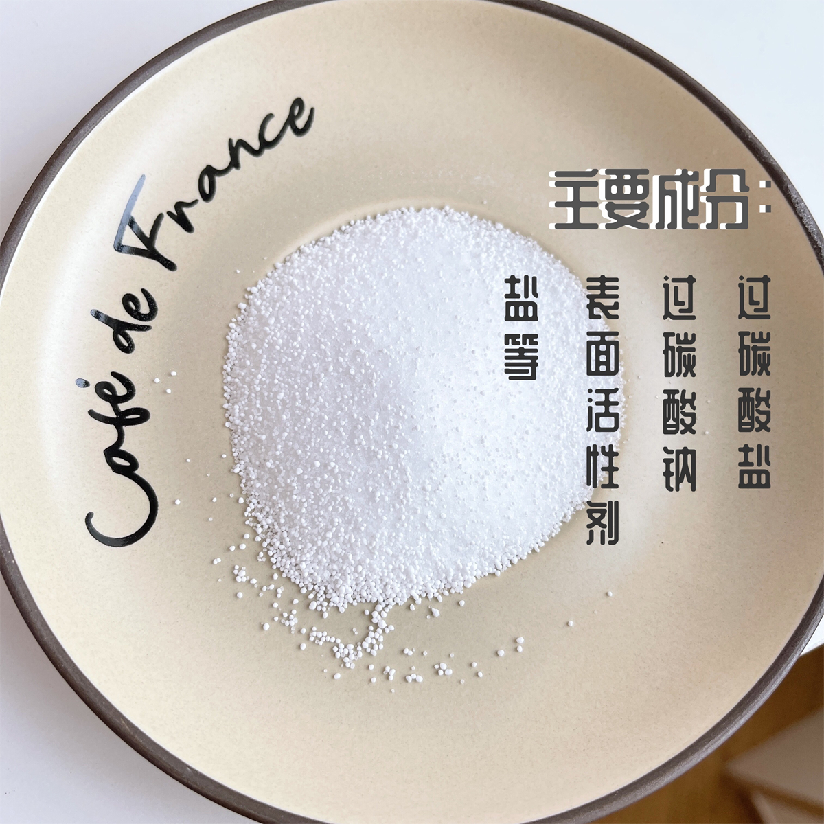 1.成分:过碳酸盐,过碳酸钠,表面活性剂,盐等;