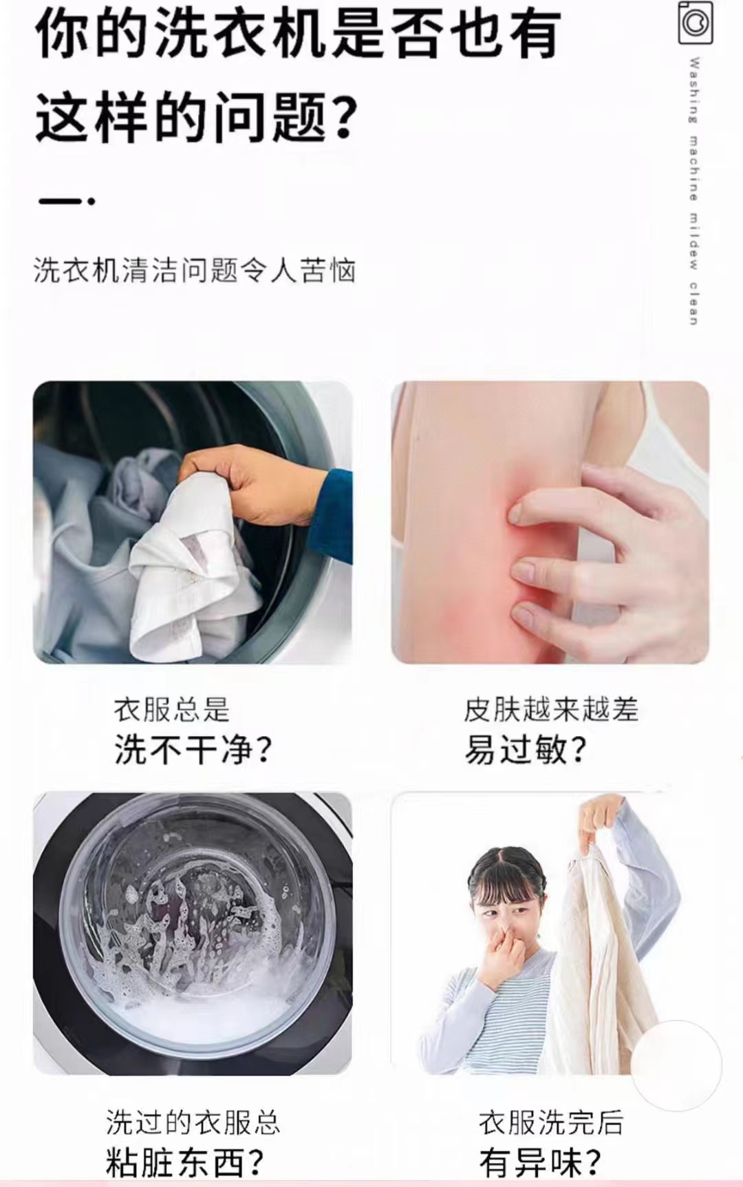 4.深层分解吸附在洗衣机上的污渍,细菌;