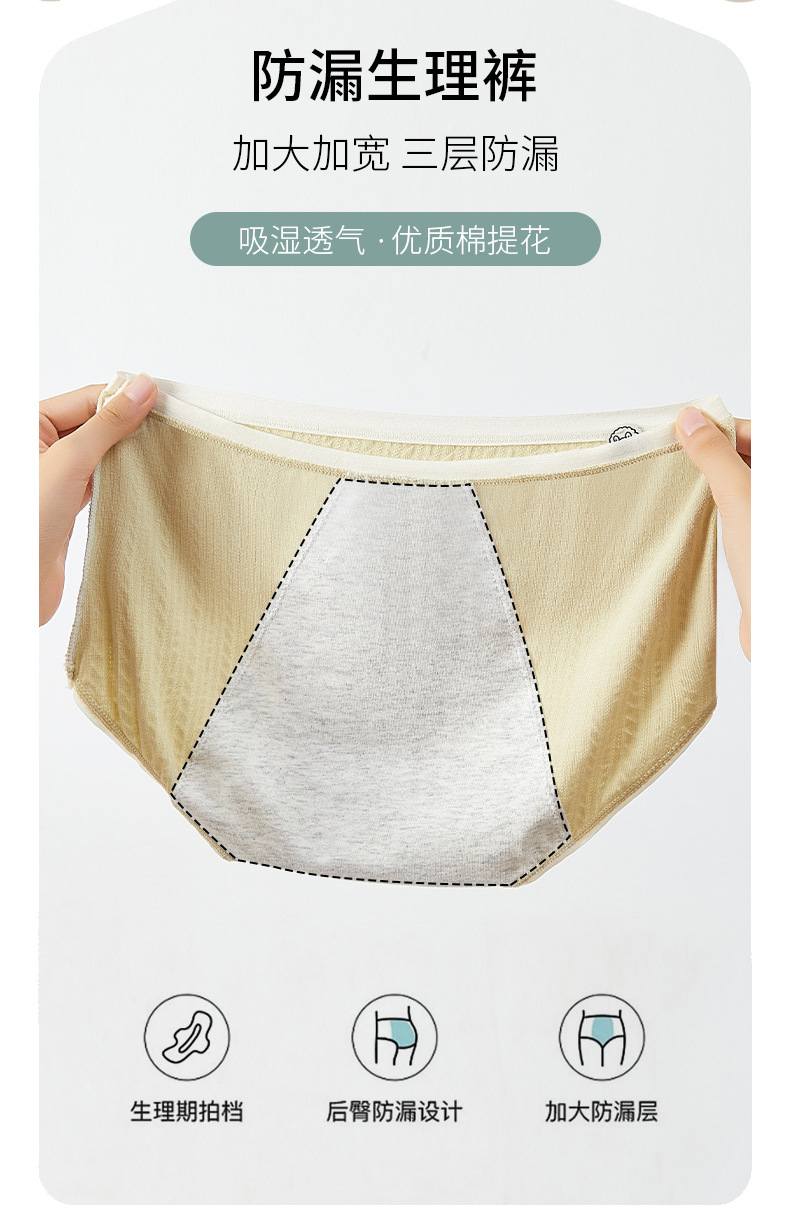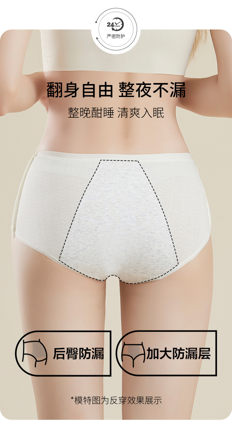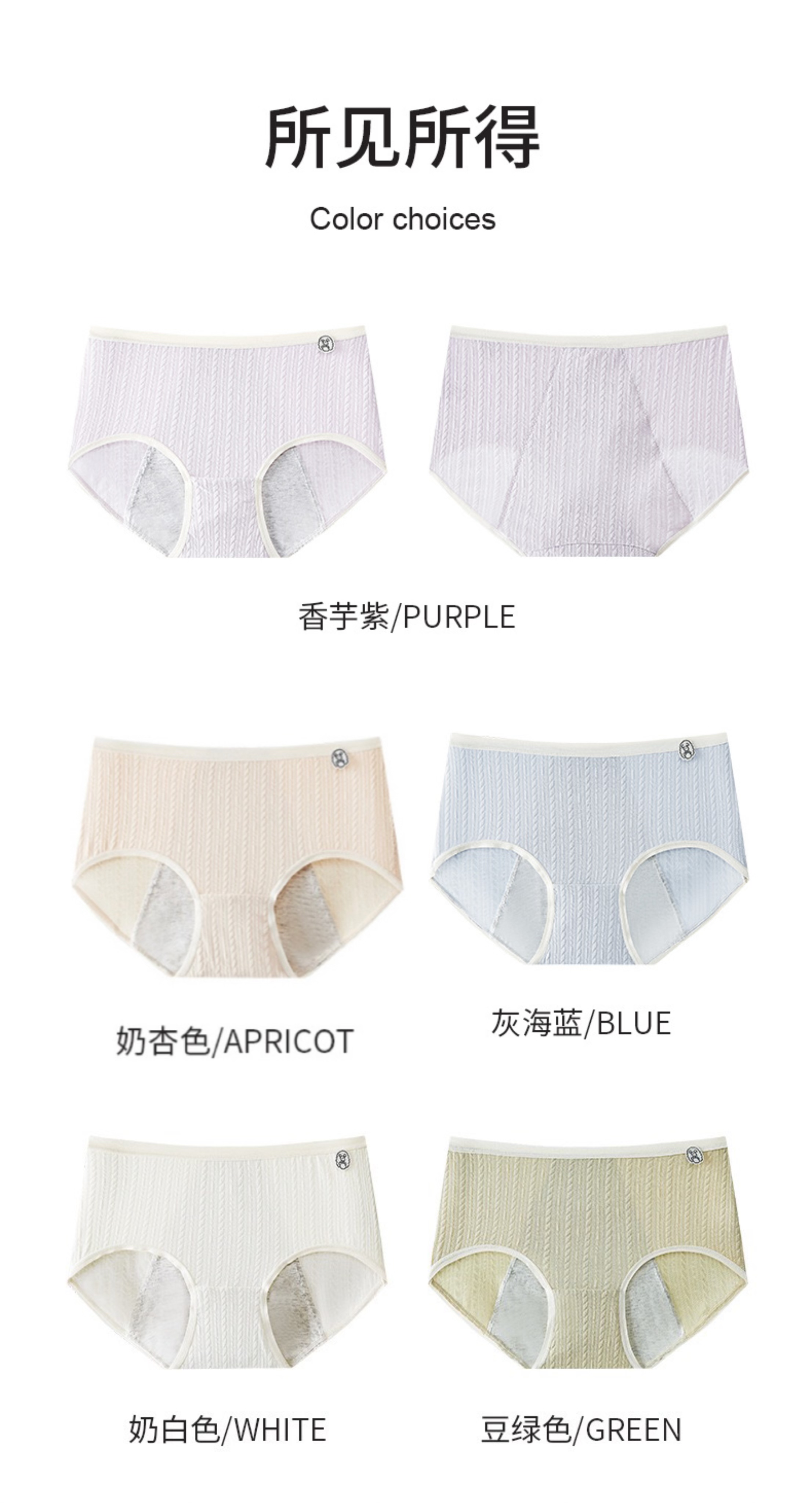 【翻身自由 整夜不漏】五色各一 细腻麻花棉舒适柔软 三层防漏360度加大加宽设计纯棉防漏不闷自由呼吸舒适整晚