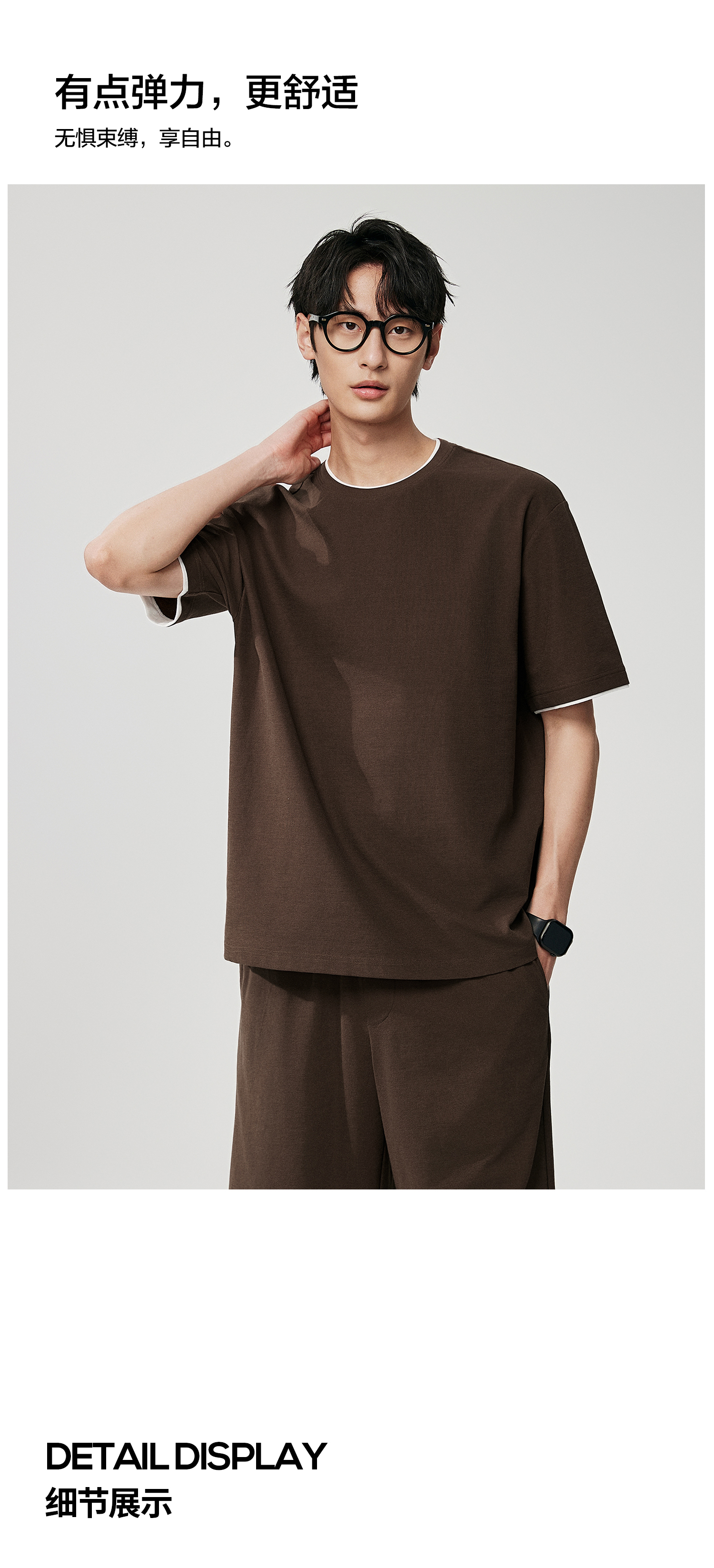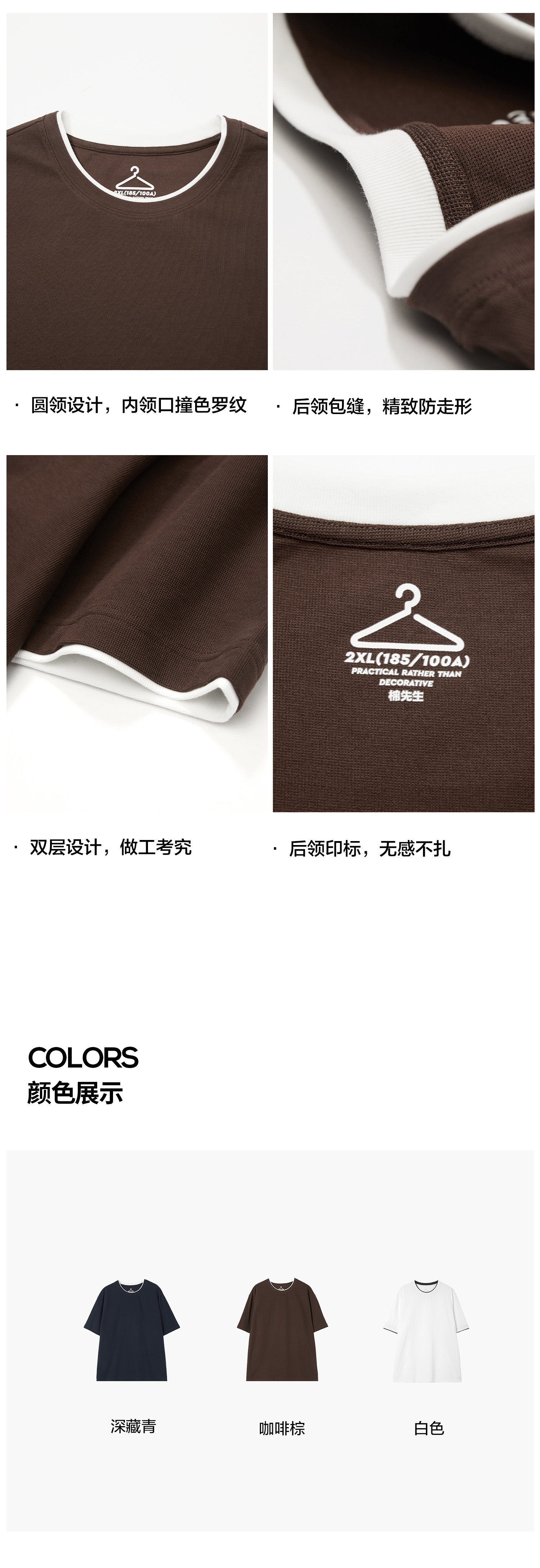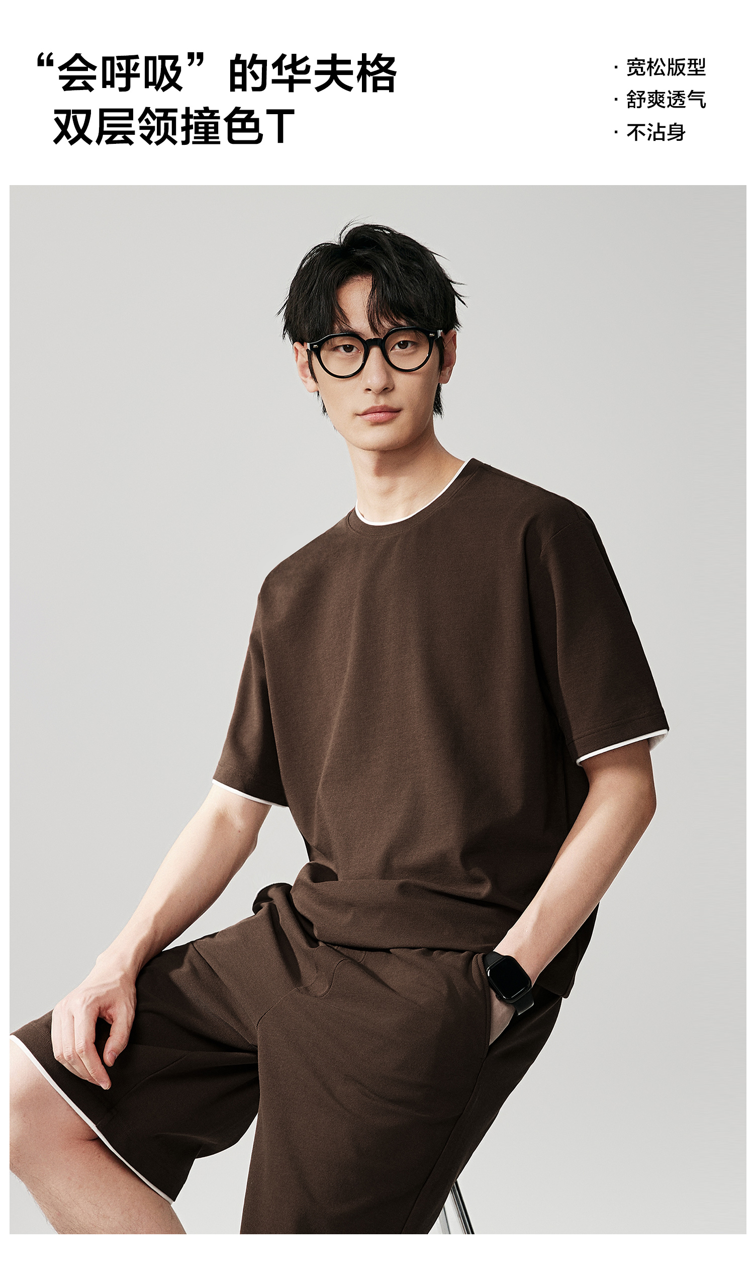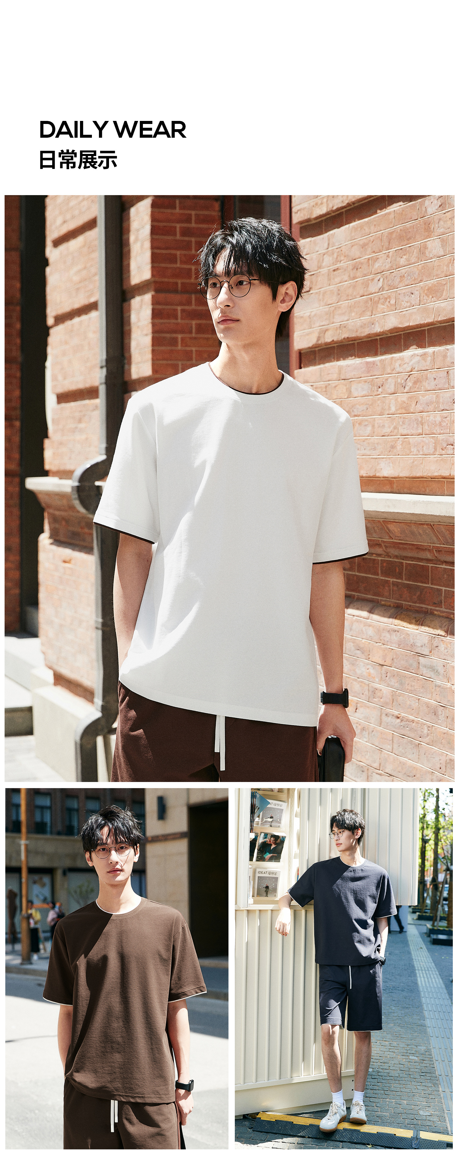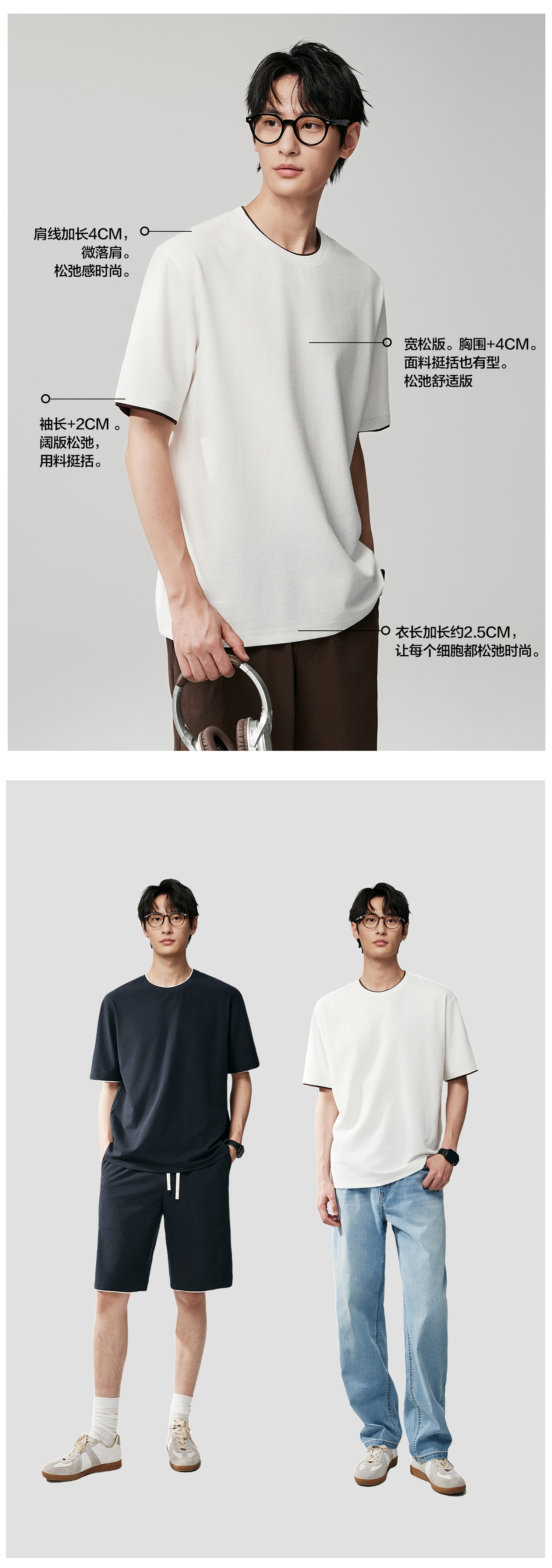 棉仓363801033-微宽松假两件套头华夫格短袖T