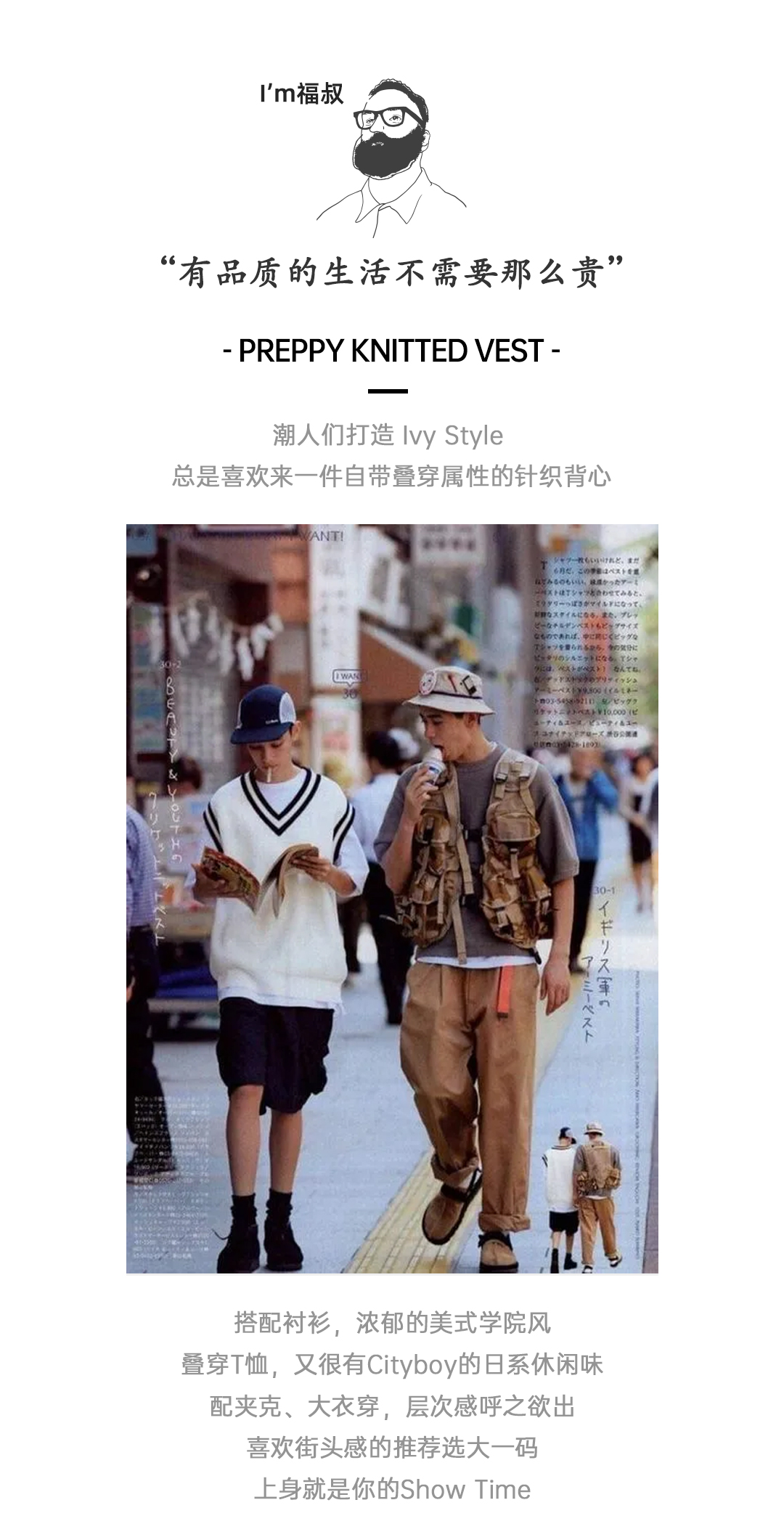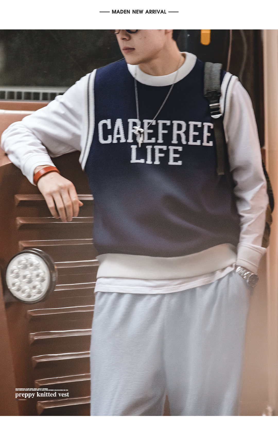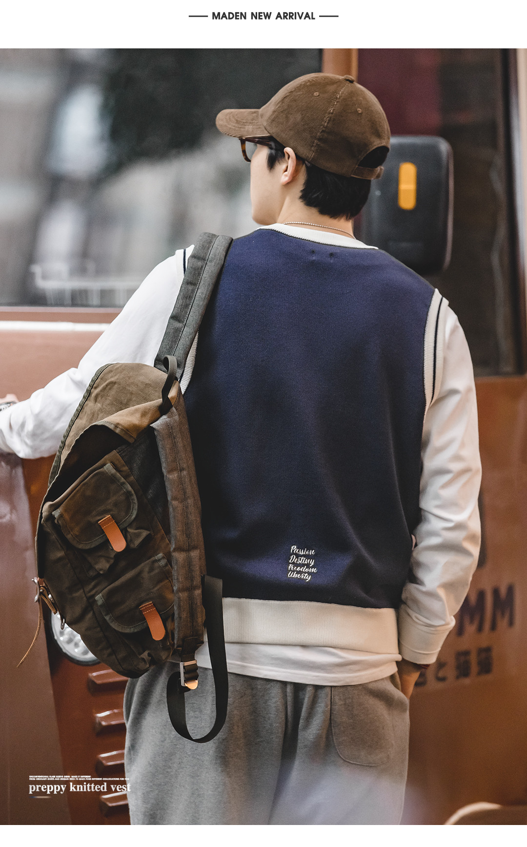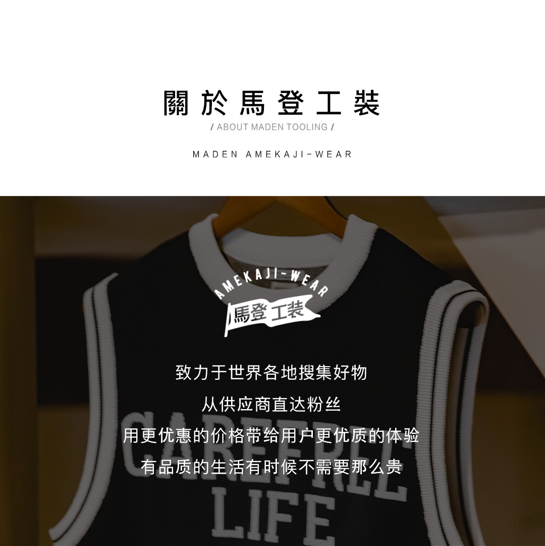 工装精选 美式休闲圆领字母针织背心学院风街头无袖套头马甲男春