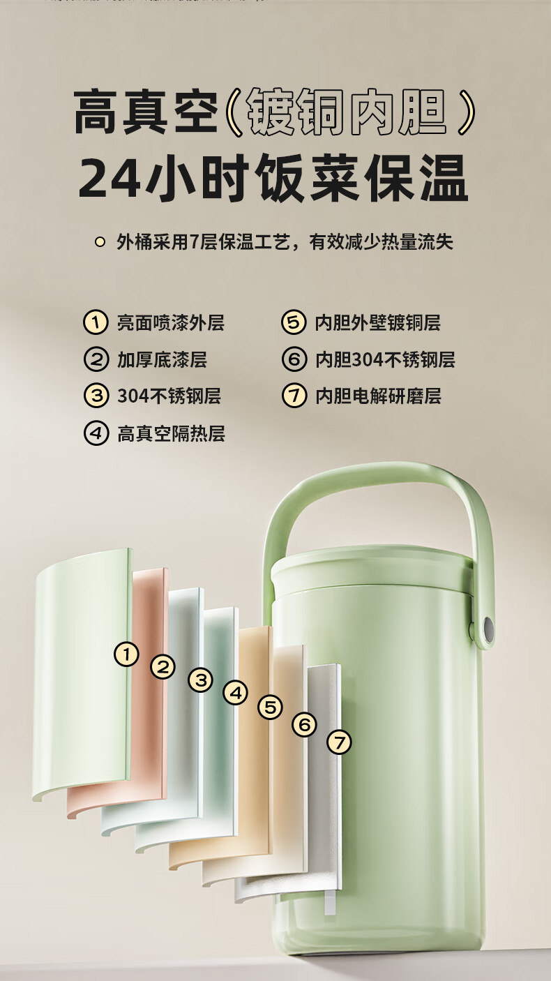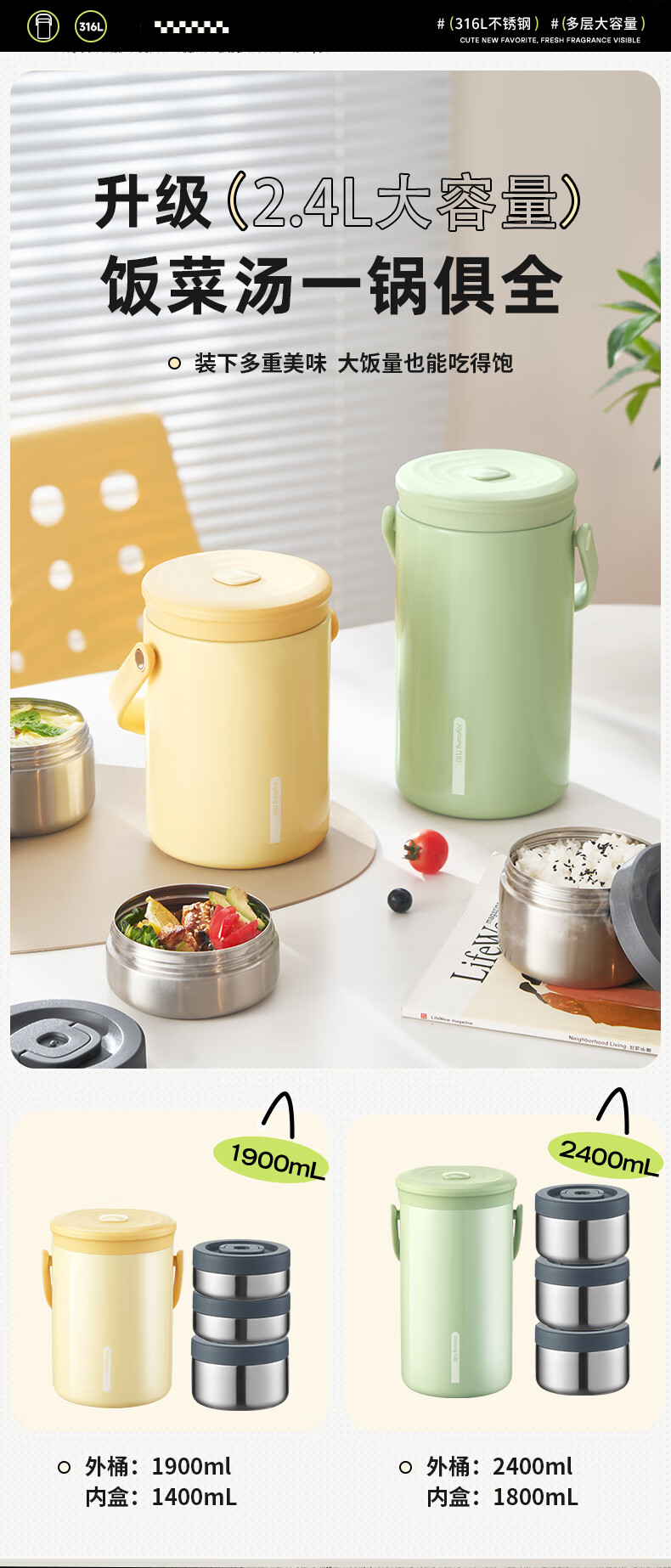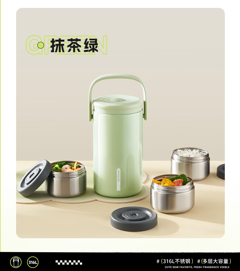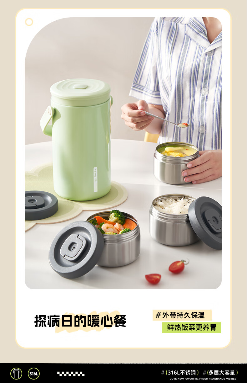 九阳保温提锅上班族女学生超长保温饭盒保温桶多层不锈钢便当餐盒