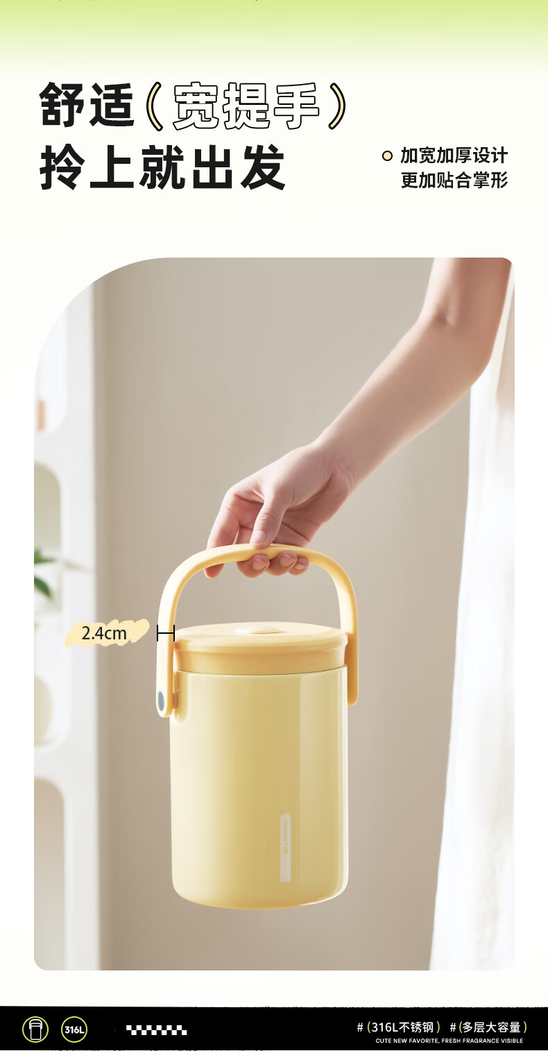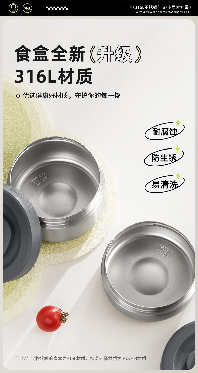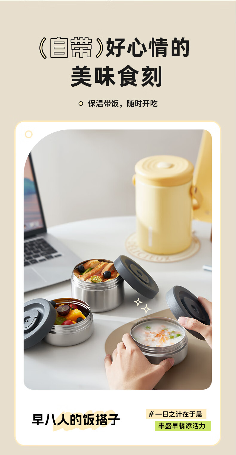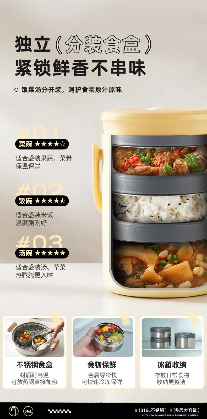 九阳保温提锅上班族女学生超长保温饭盒保温桶多层不锈钢便当餐盒