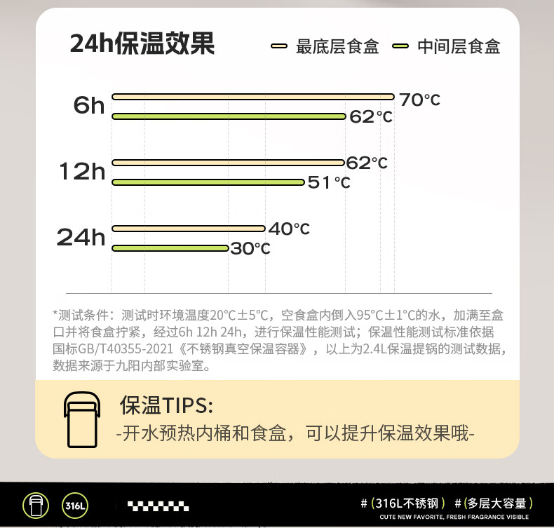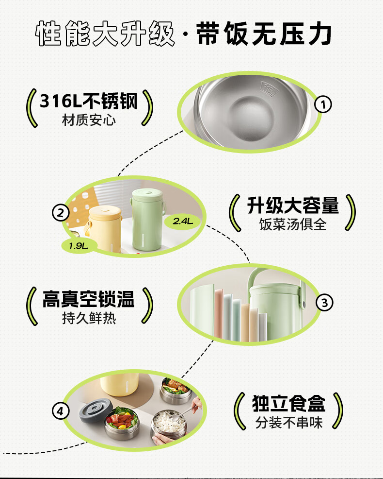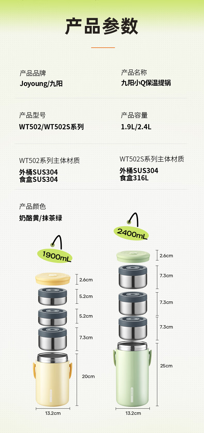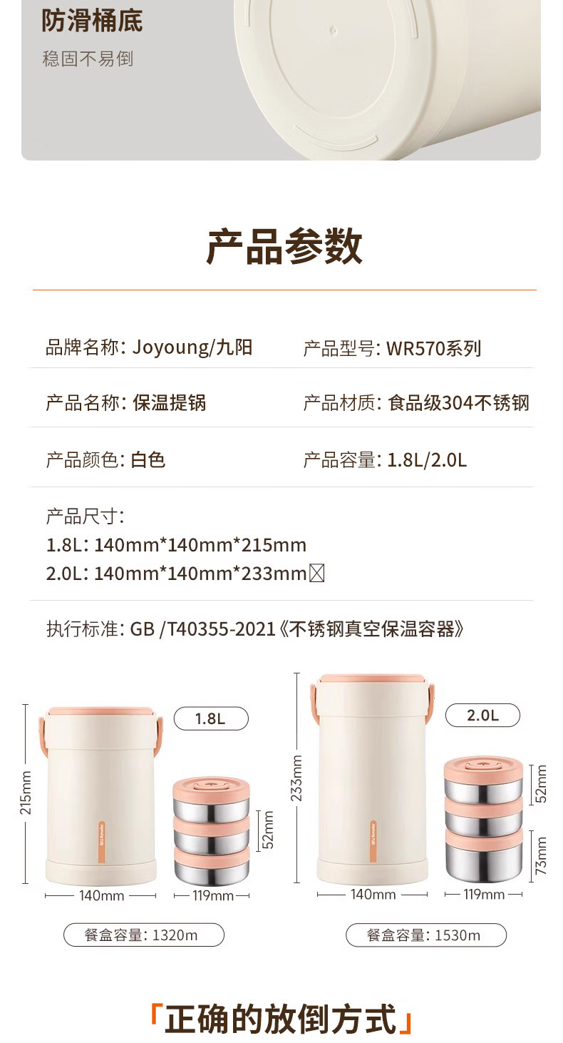 九阳保温提锅上班族女学生超长保温饭盒保温桶多层不锈钢便当餐盒