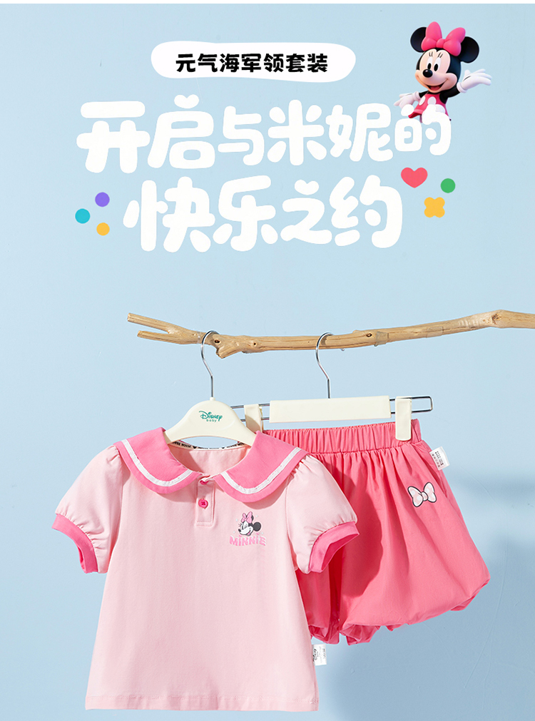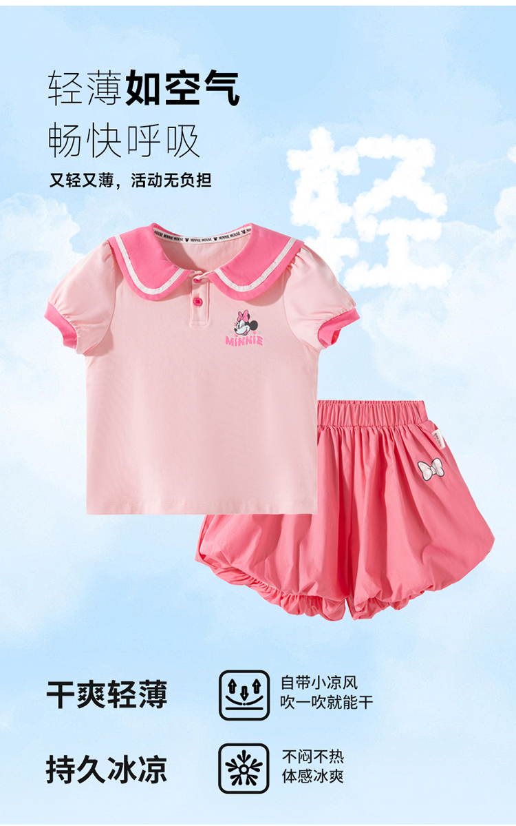迪士尼2025夏季新款冰感短袖套装女童凉感T恤宽松透气短裤运动休闲套装ZD2ET050