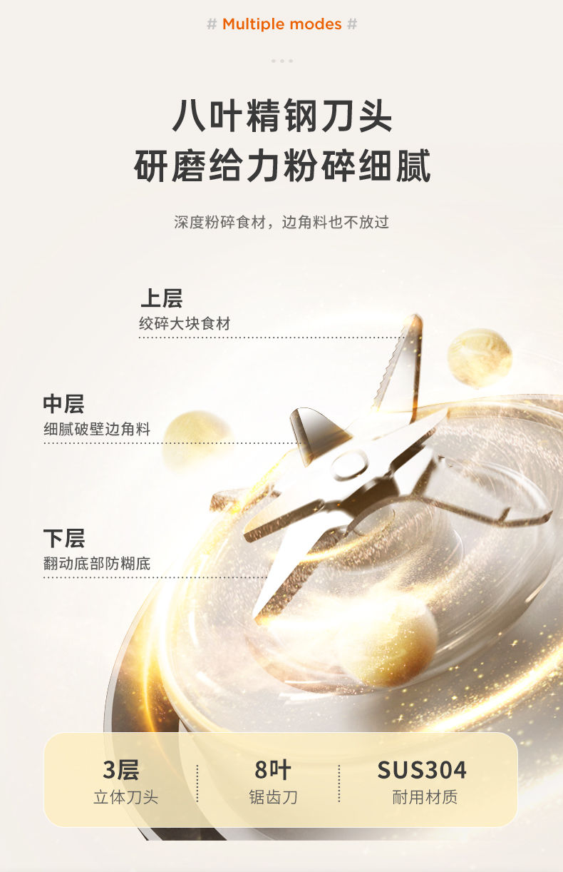 华帝超薄轻音防糊底破壁 宝宝辅食 八叶钢刀上蒸下煮