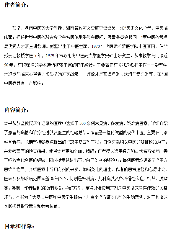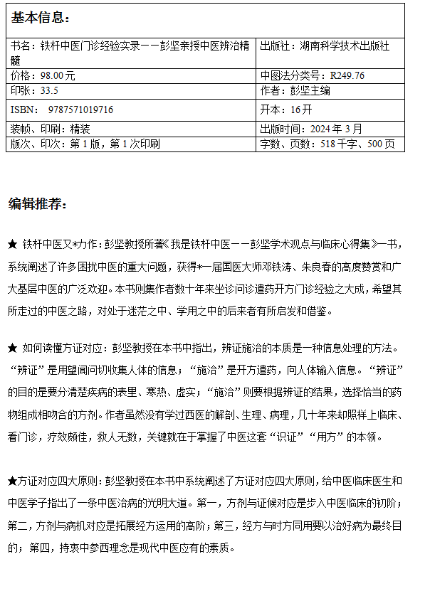 铁杆中医门诊经验实录——彭坚亲授临床辨治精髓 方证对应是中医临床辨治的*髓 中医世家 伤寒论 识证用方