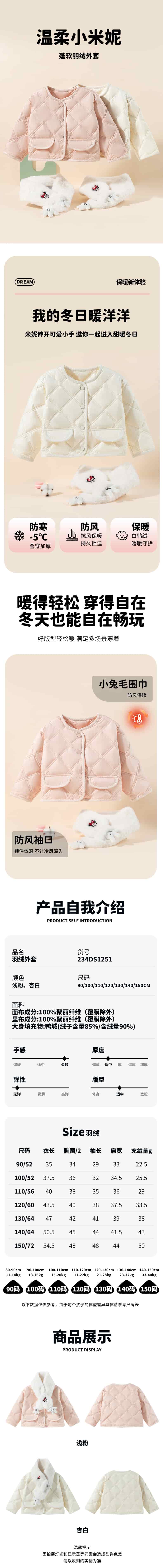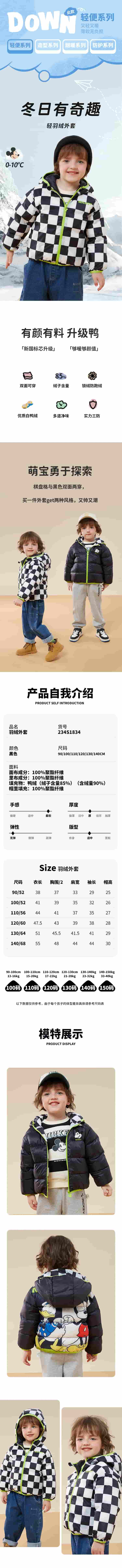 【迪士尼Disneybaby正品羽绒服】冬款防风保暖男女童羽绒服
