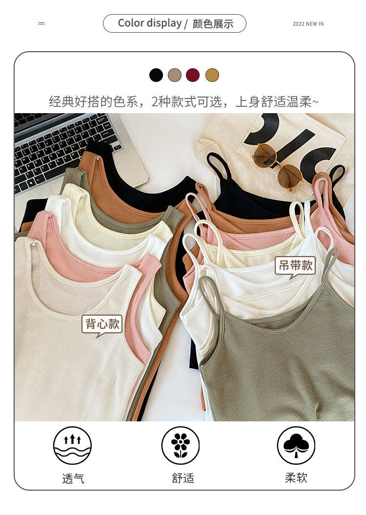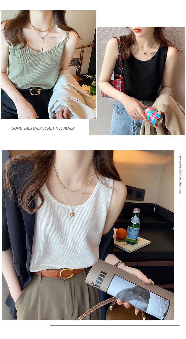 买1送1【双版型 纯色别致吊带宽松背心!】性感时尚吊带女 夏穿超舒适 可外穿 辣妹纯色上衣 打底华夫格宽松 显瘦无袖舒适百搭打底衫t恤