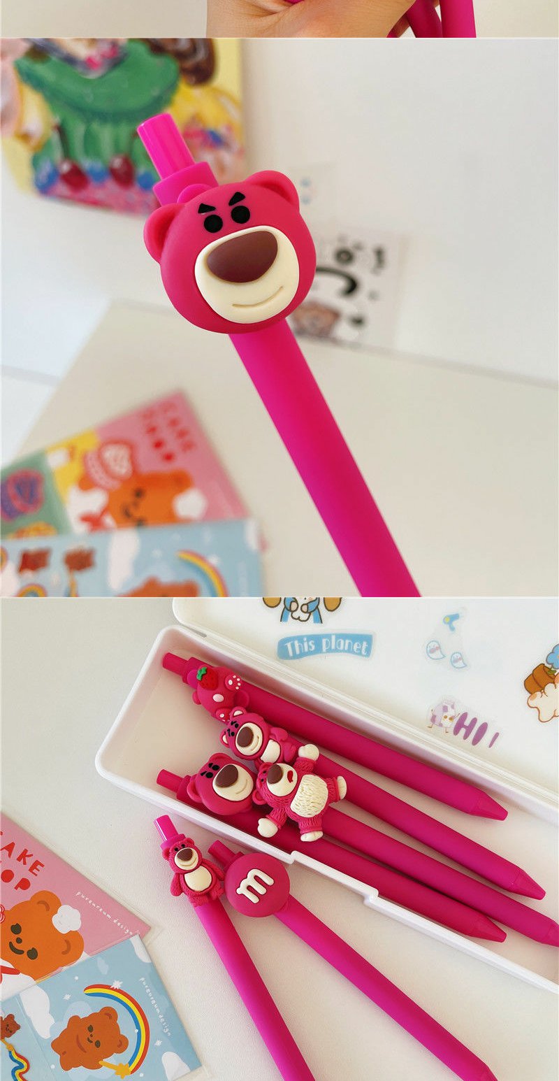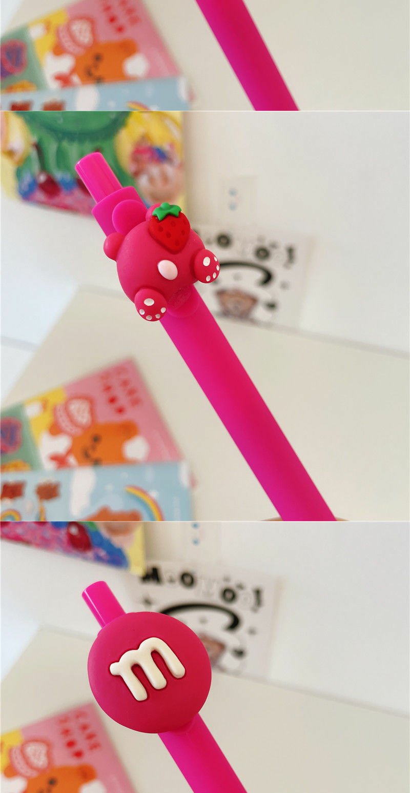 ins可爱草莓熊立体卡通中性笔学生考试0.5mm黑色中性按动水笔限定