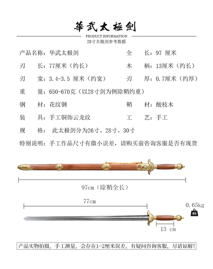华武太极剑 男女通用剑 武术健身 剑 龙泉沈广隆宝剑 软剑 未开刃