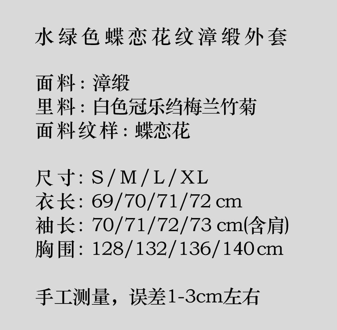 瑕疵|盛唐牡丹| 水绿色蝶恋花纹漳缎外套[特价品](特殊商品不退不换)