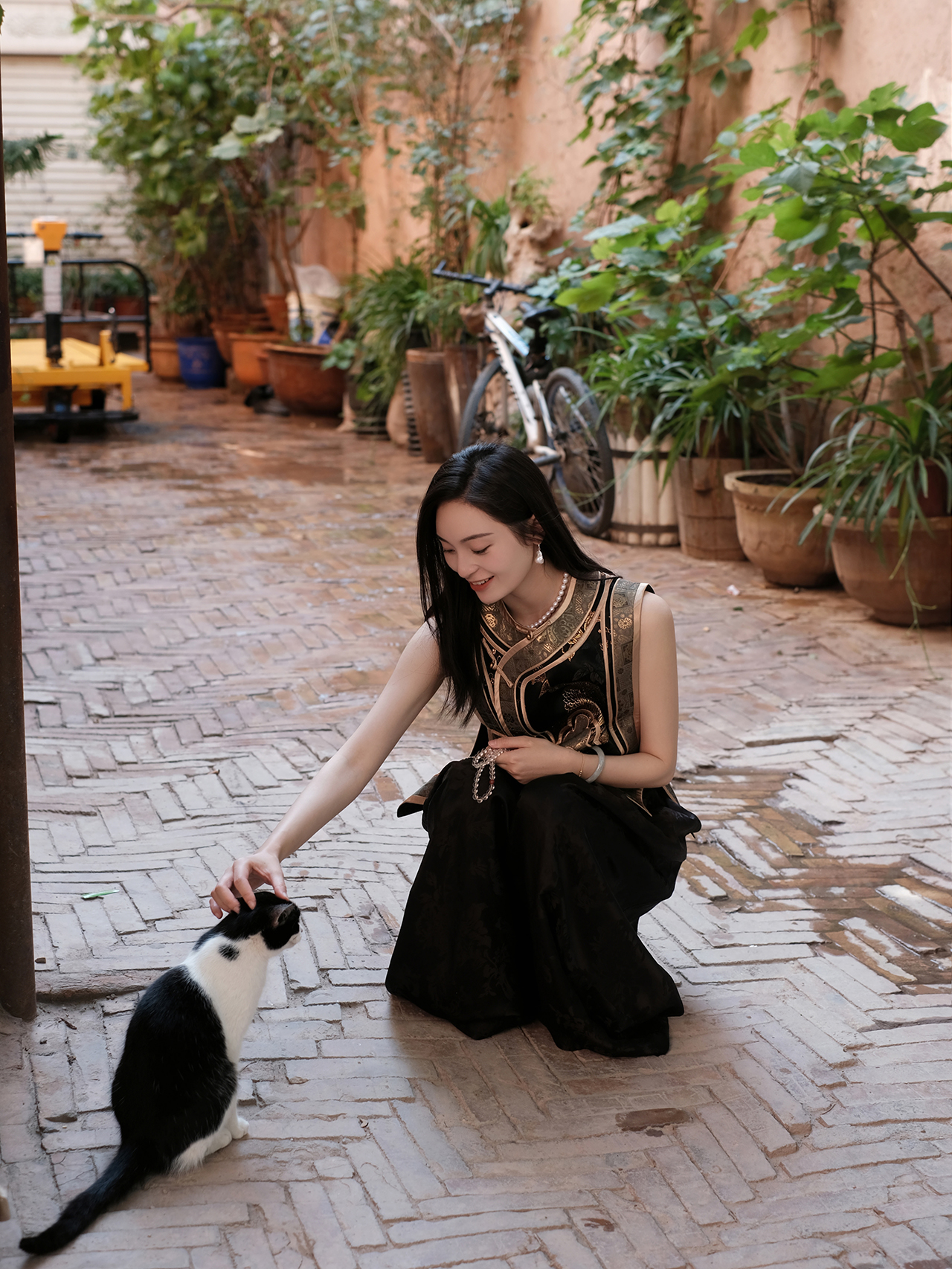 盛唐牡丹 |鹤鹿同春宋锦双面穿马甲
