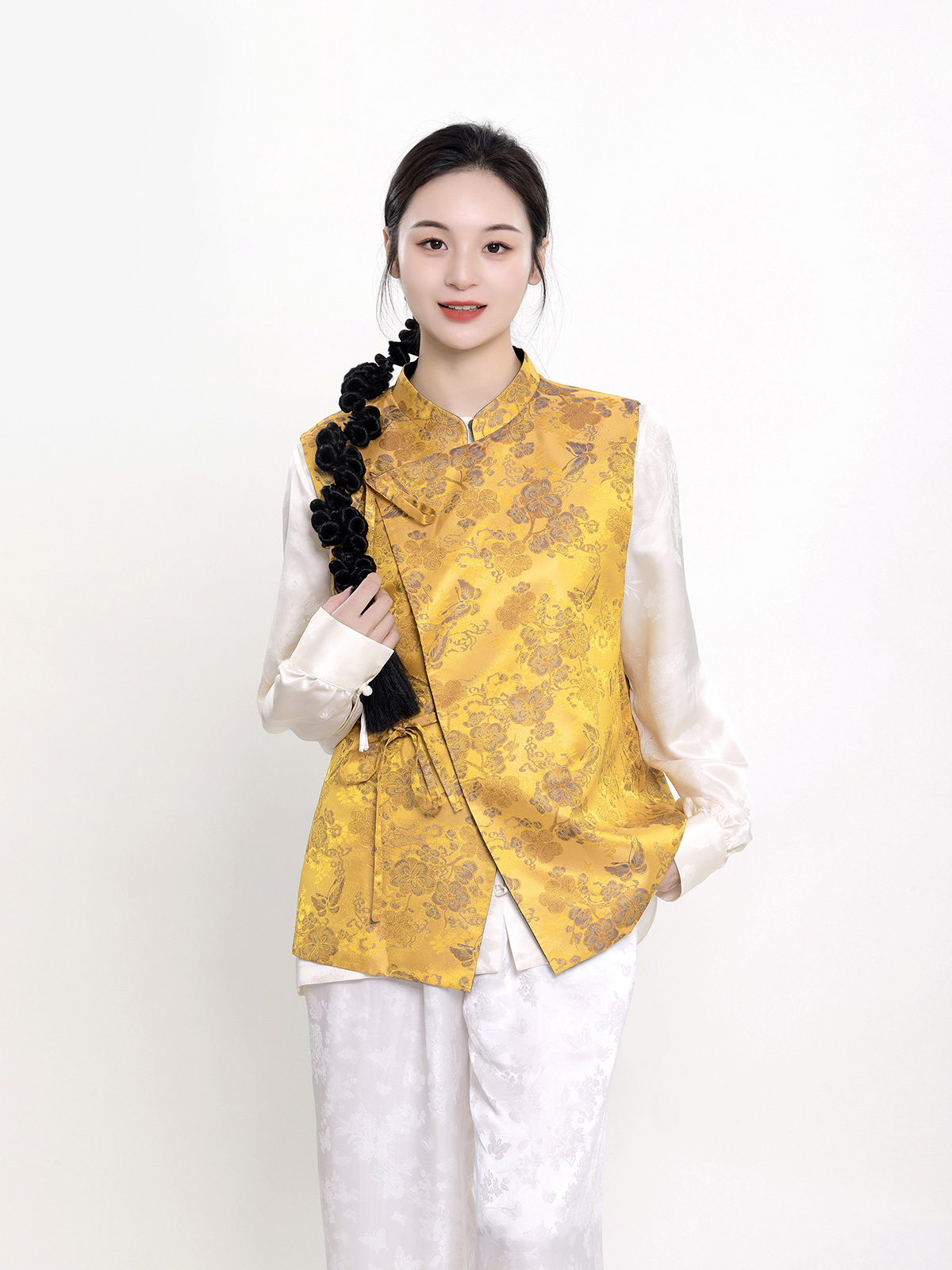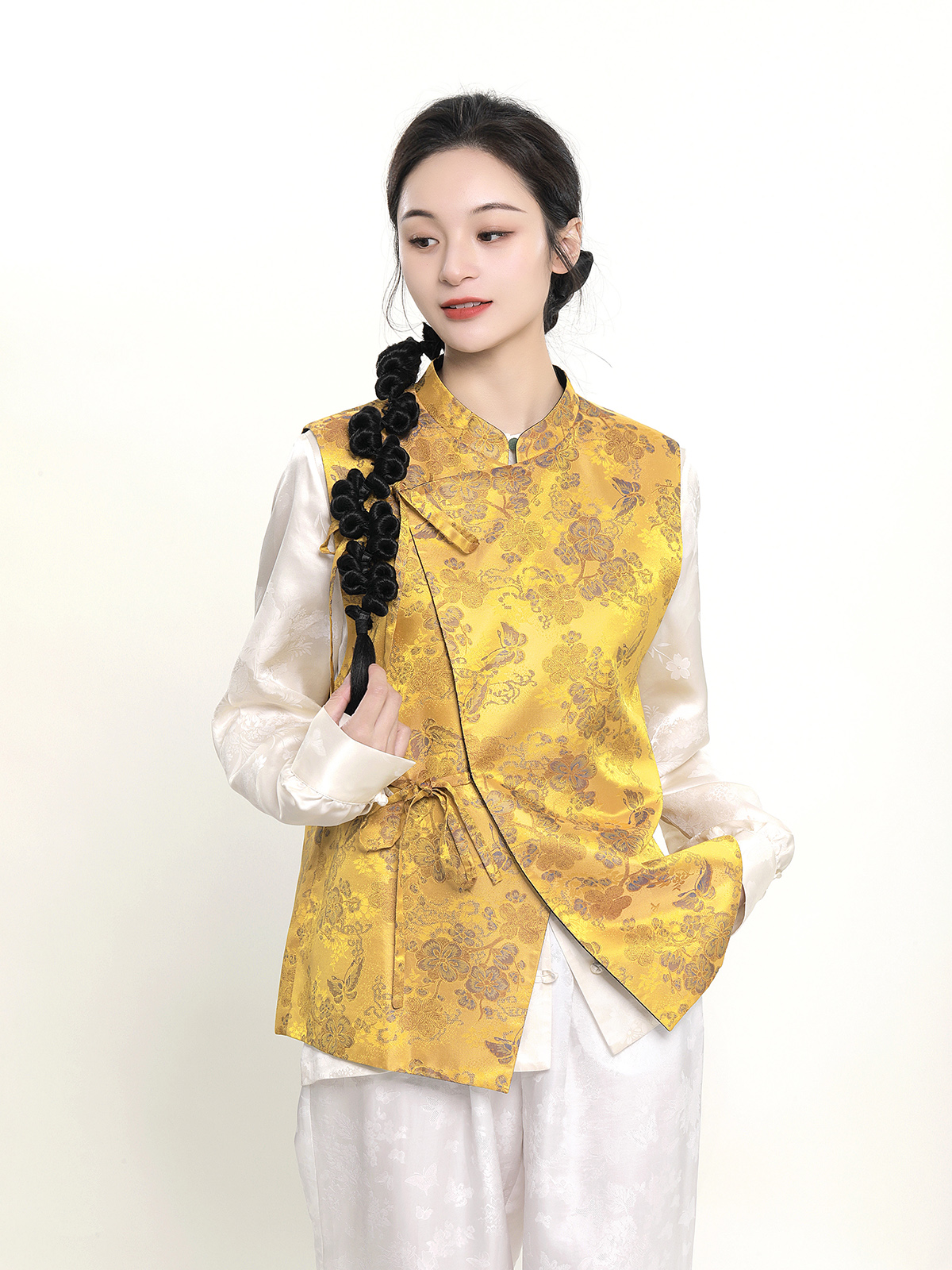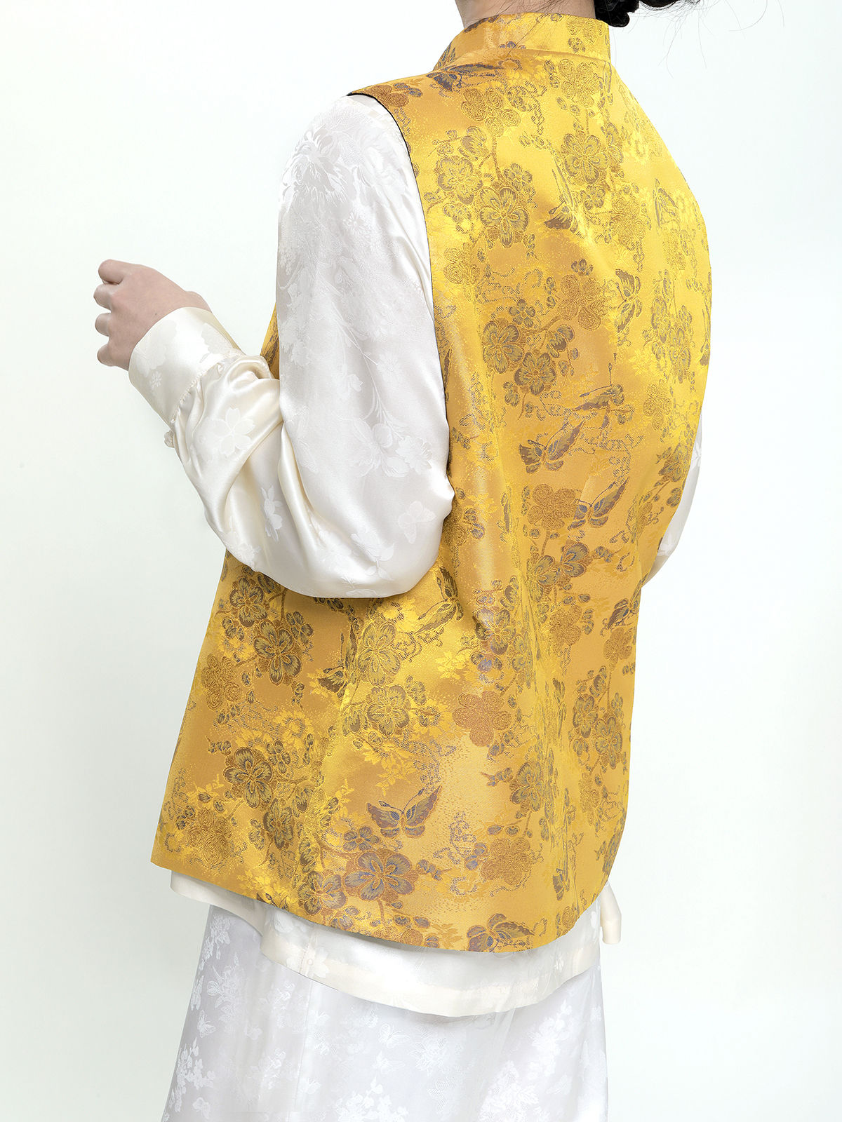 盛唐牡丹 |花香引蝶真丝宋锦新中式马甲正反两穿(里料随机花纹)