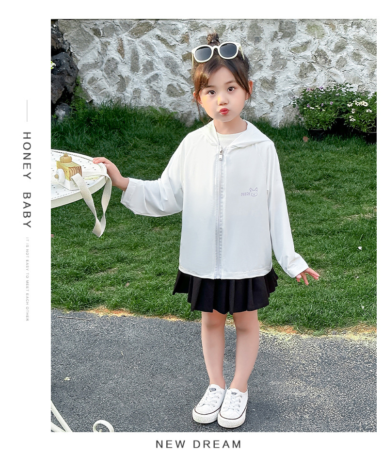【超亲肤❗️UPF50+儿童冰丝防晒衣】1件顶防晒帽+防晒霜+防风衣+防晒雨伞+防晒袖套!夏季男童女童舒适简约薄款透气宽松款防晒服