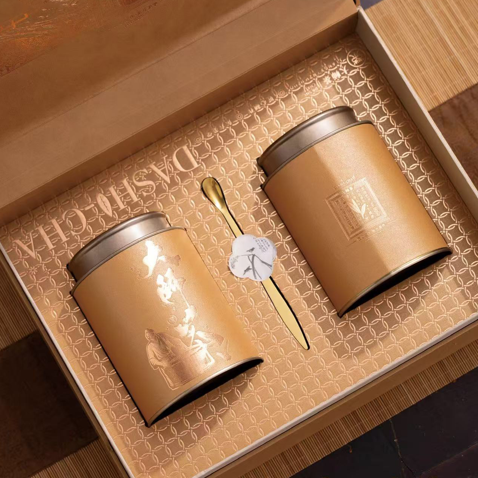 大师茶【浅胡桃木.2大圆罐+茶勺】25元1套.整箱12套