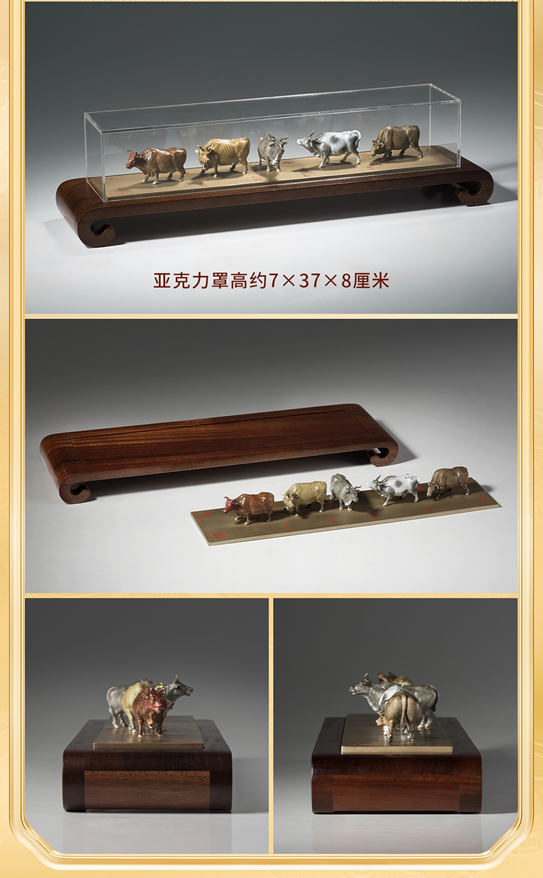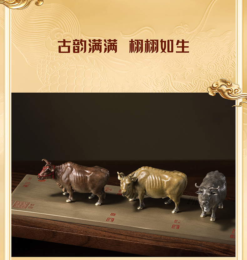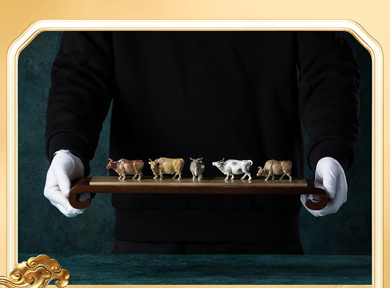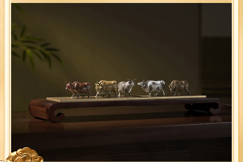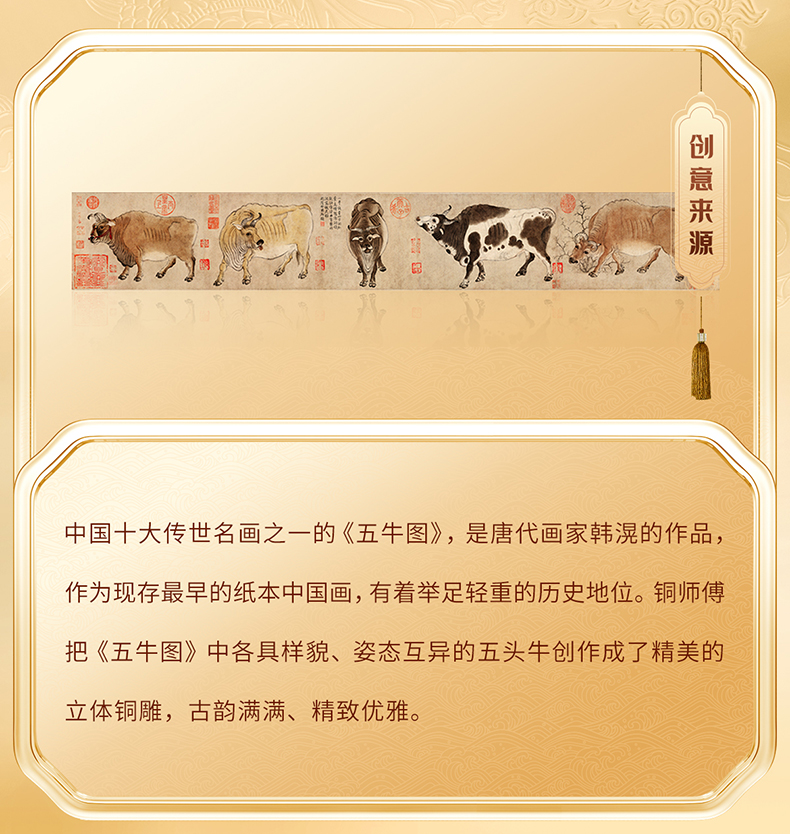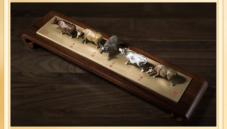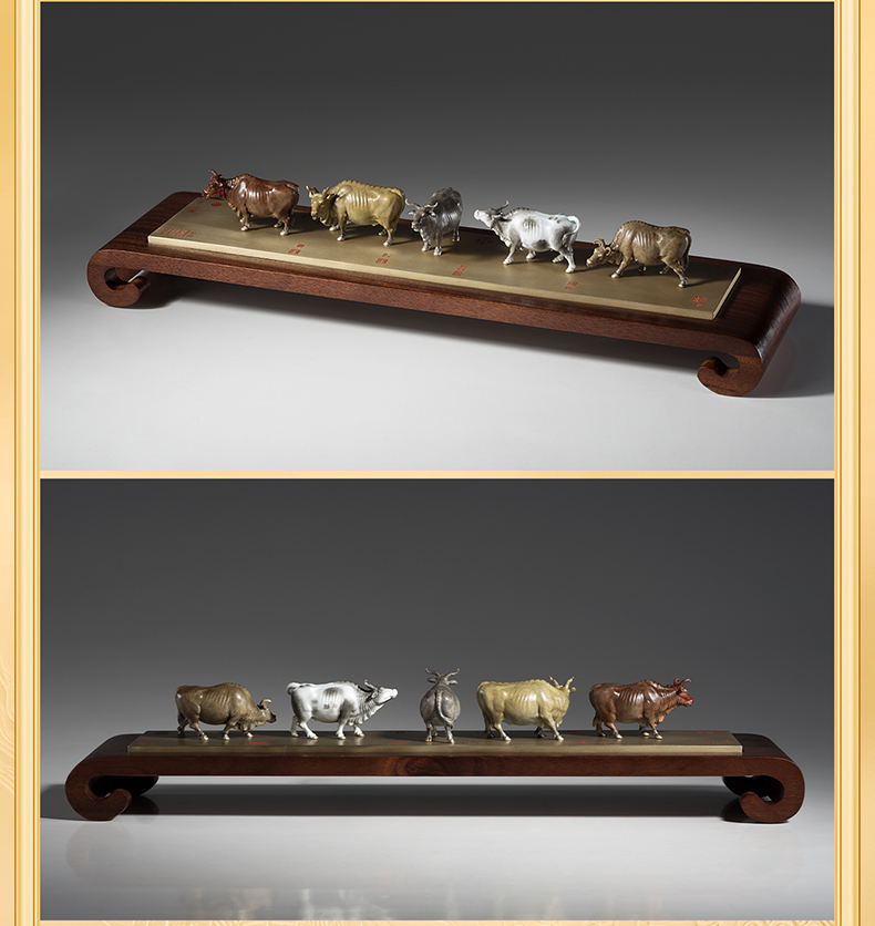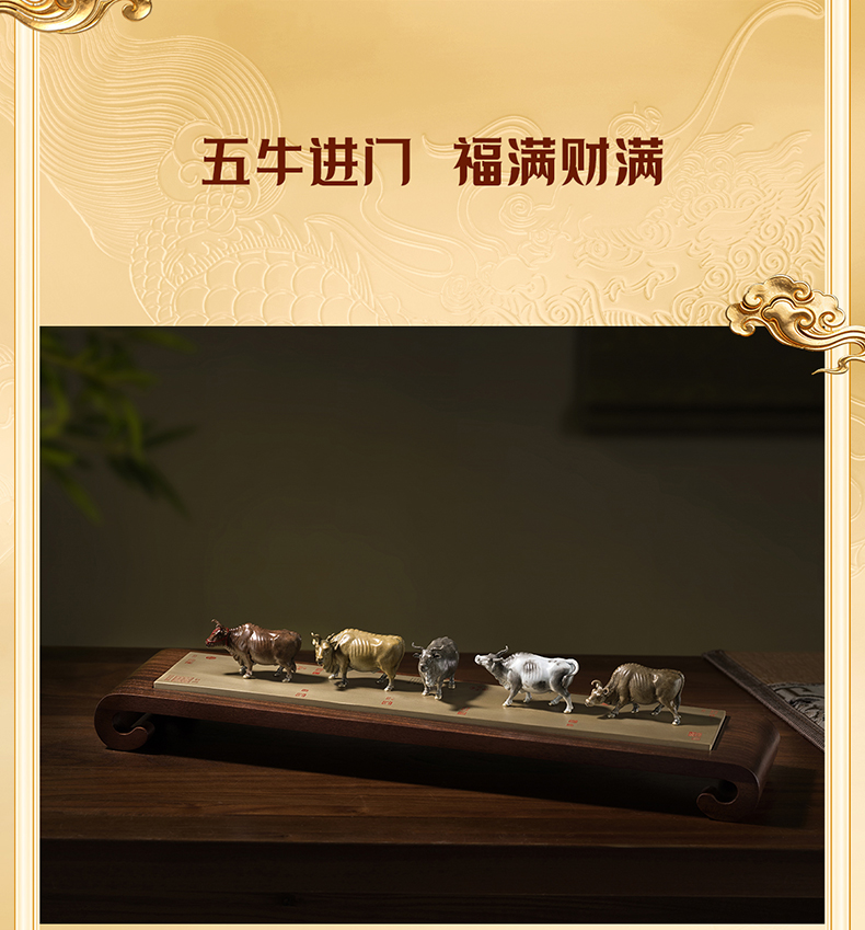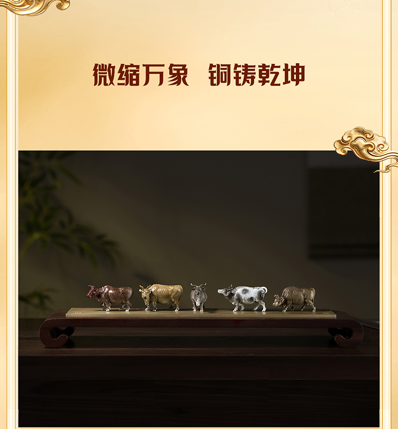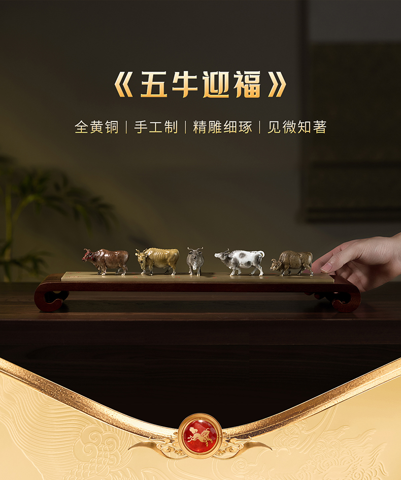 铜师傅 见微系列《五牛迎福》客厅桌面铜牛摆件 家居装饰工艺品