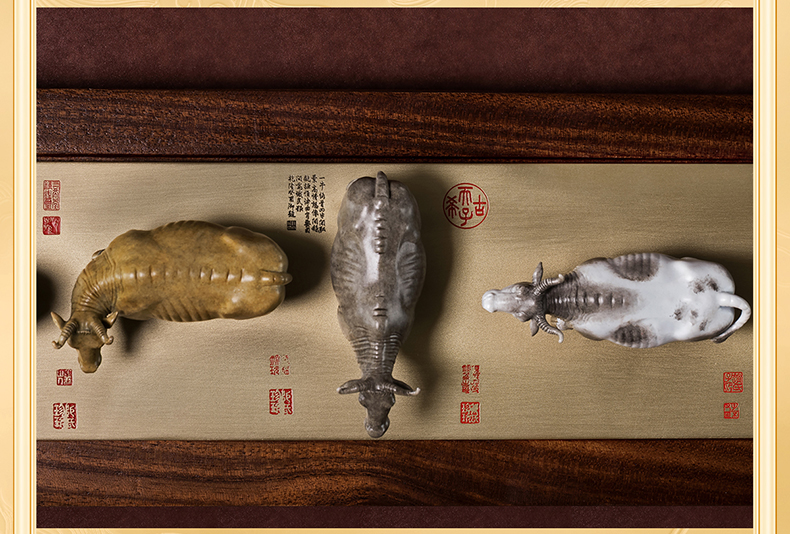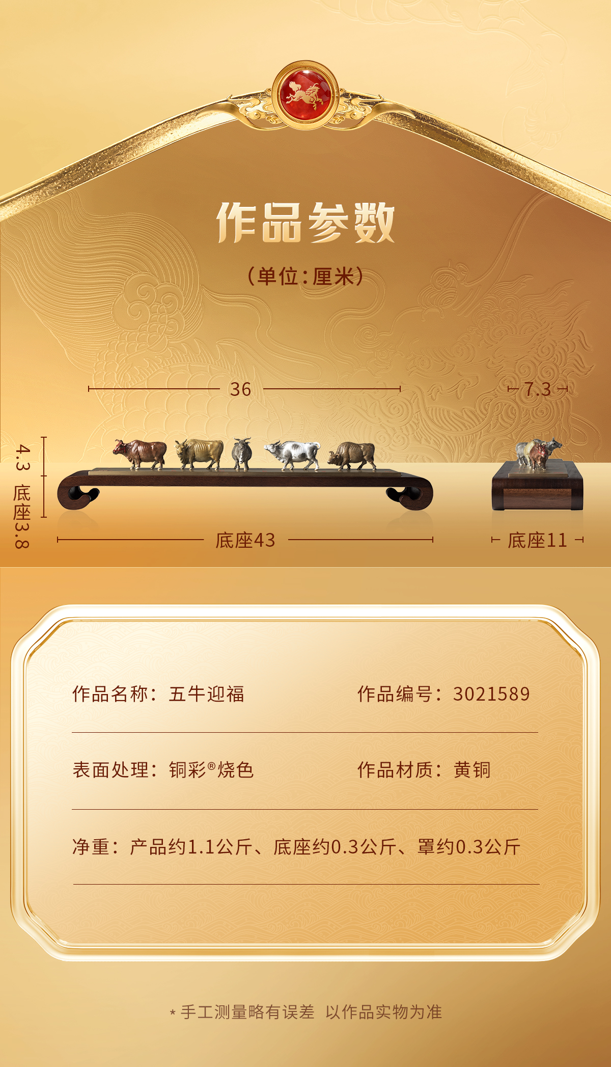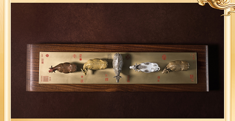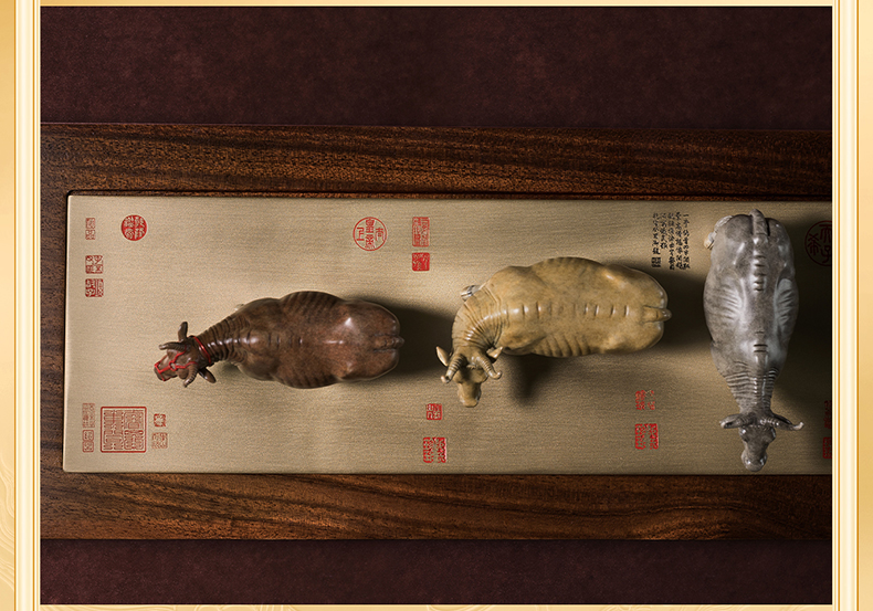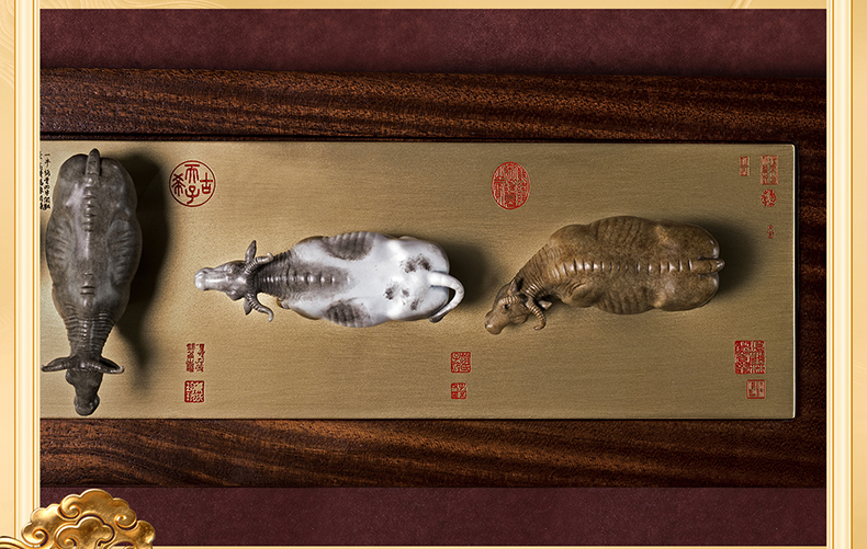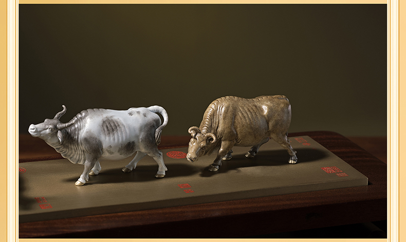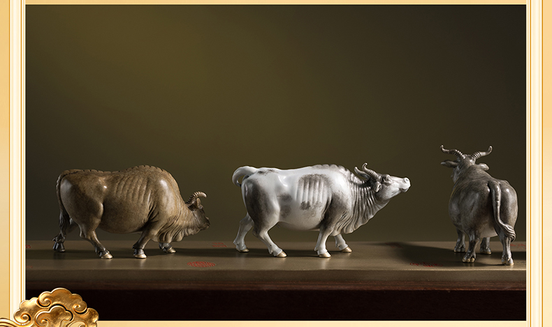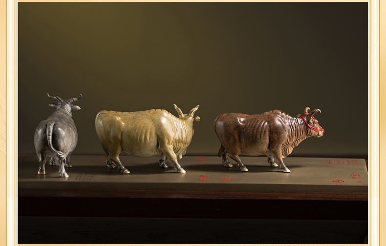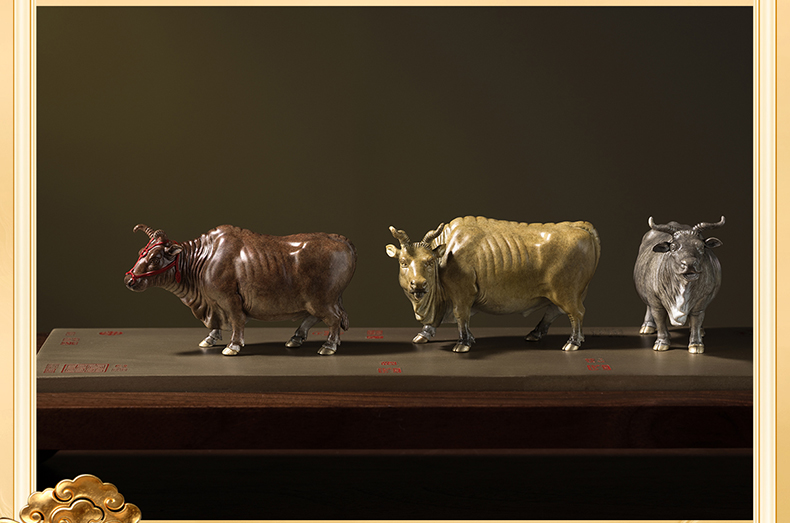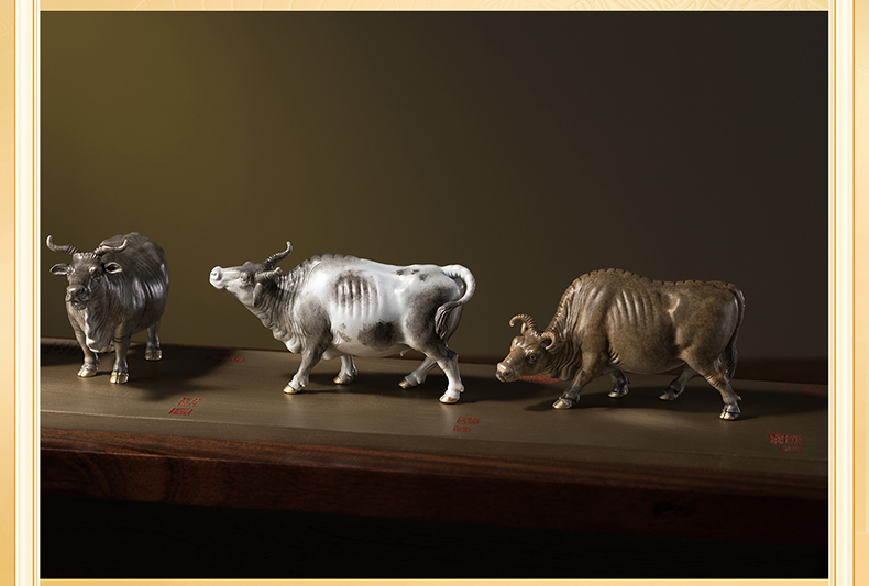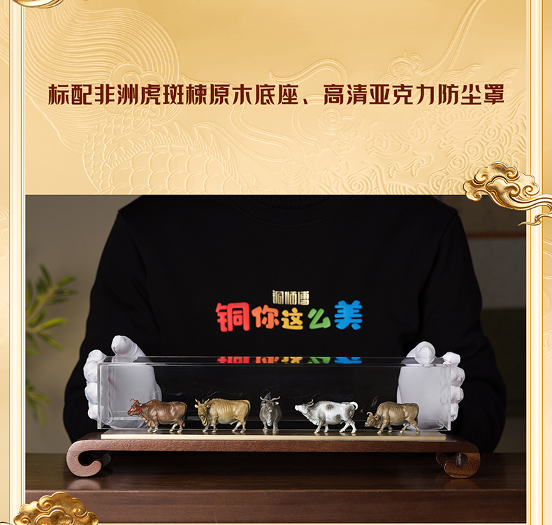 铜师傅 见微系列《五牛迎福》客厅桌面铜牛摆件 家居装饰工艺品