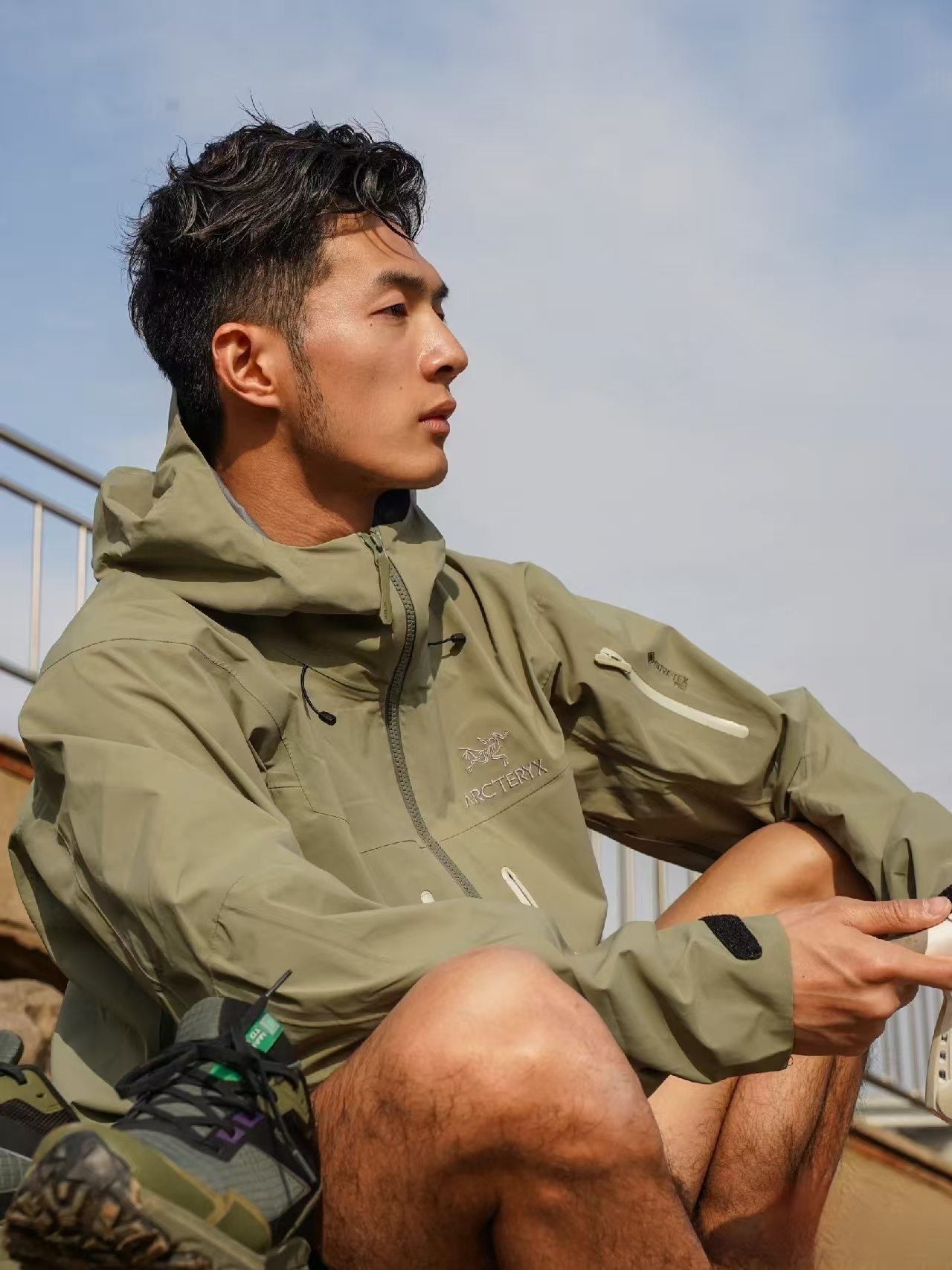 面料采用高度耐用的GORE-TEX 面料 外层抗撕裂尼龙材质 带有科技EPTFE膜复合工艺
