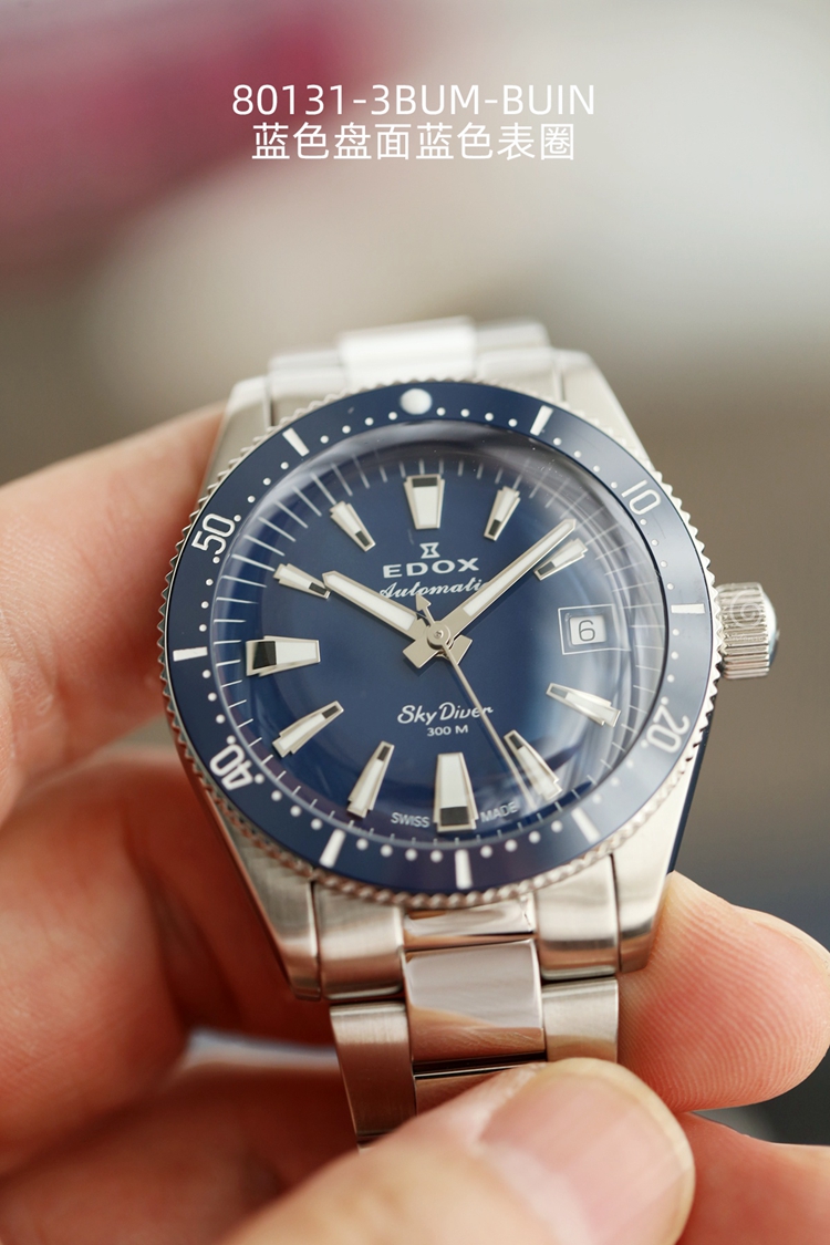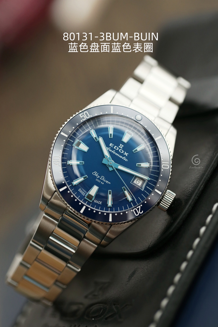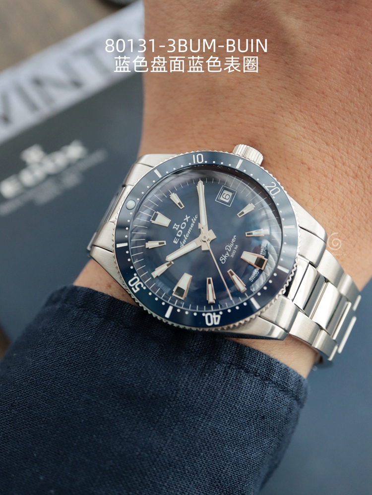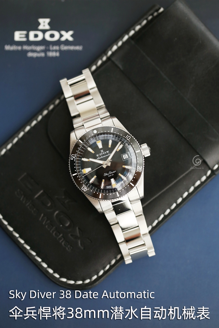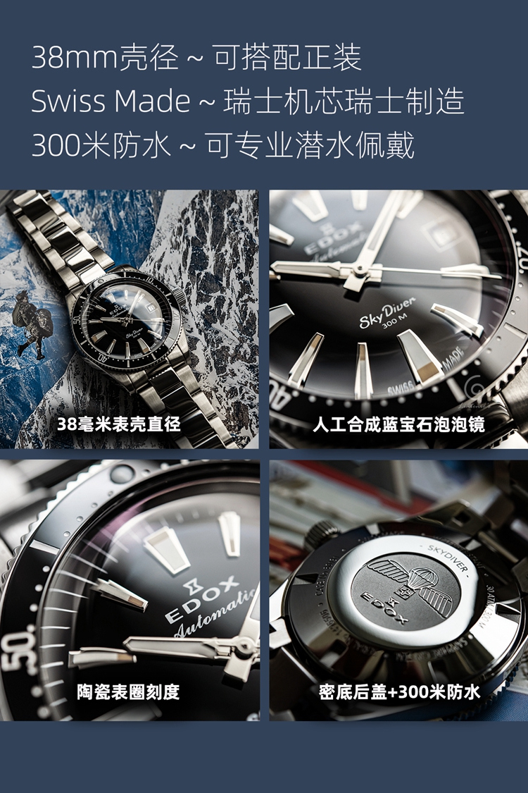 现货瑞士EDOX依度SkyDiver伞兵悍将38mm自动机械手表钢带夜光防水