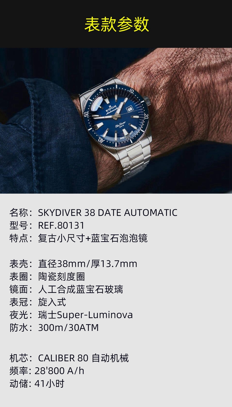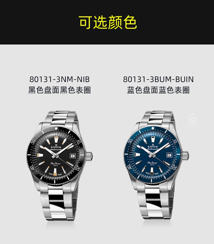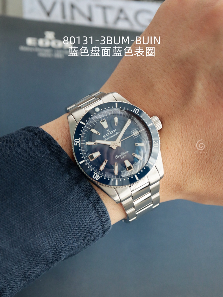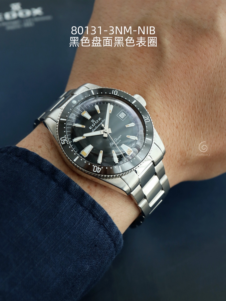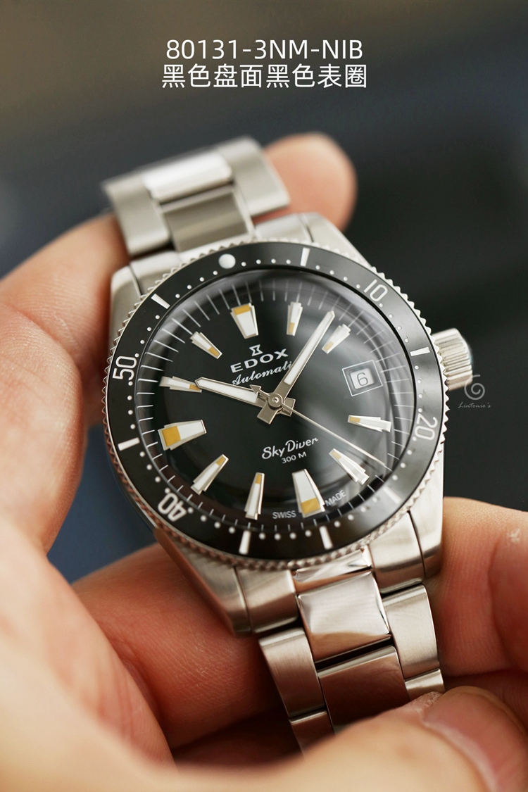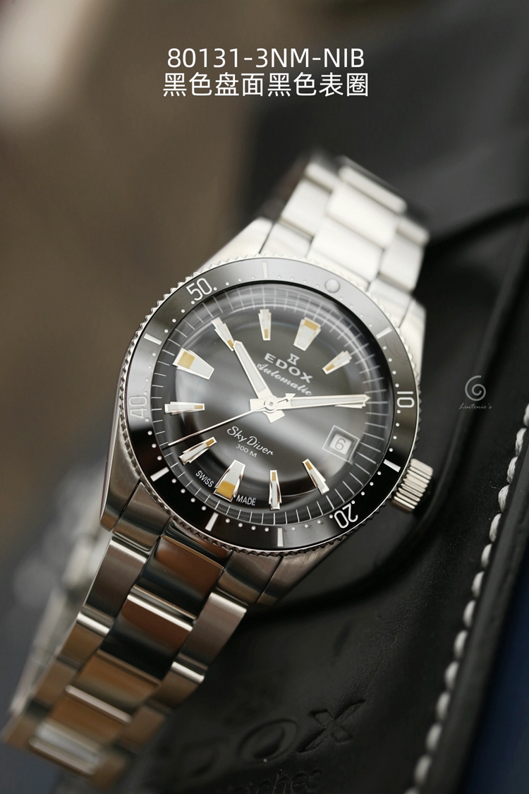 现货瑞士EDOX依度SkyDiver伞兵悍将38mm自动机械手表钢带夜光防水