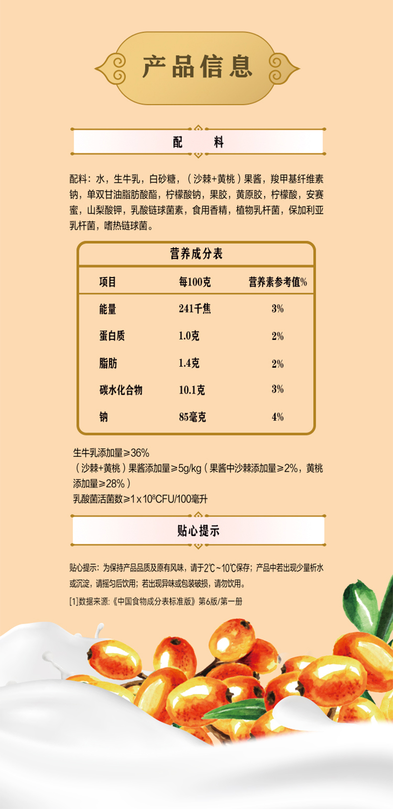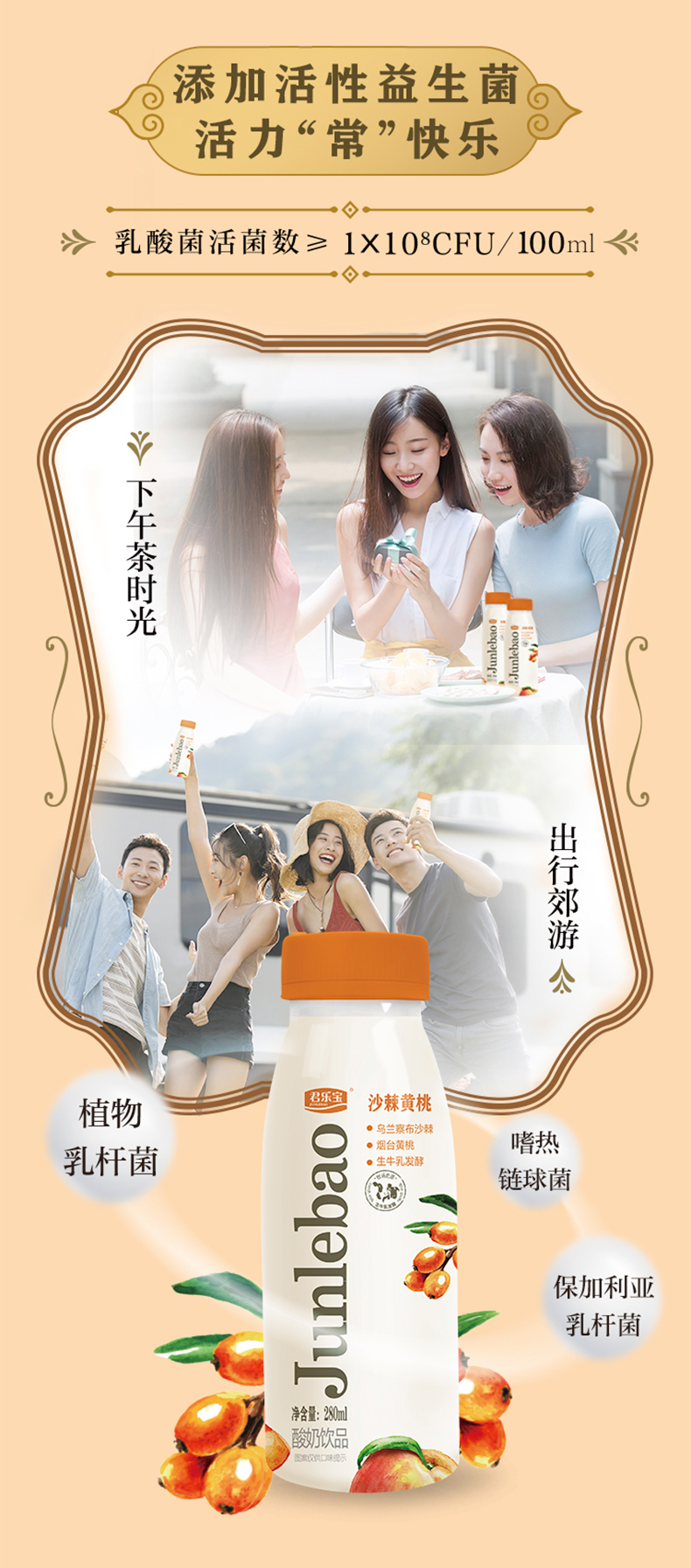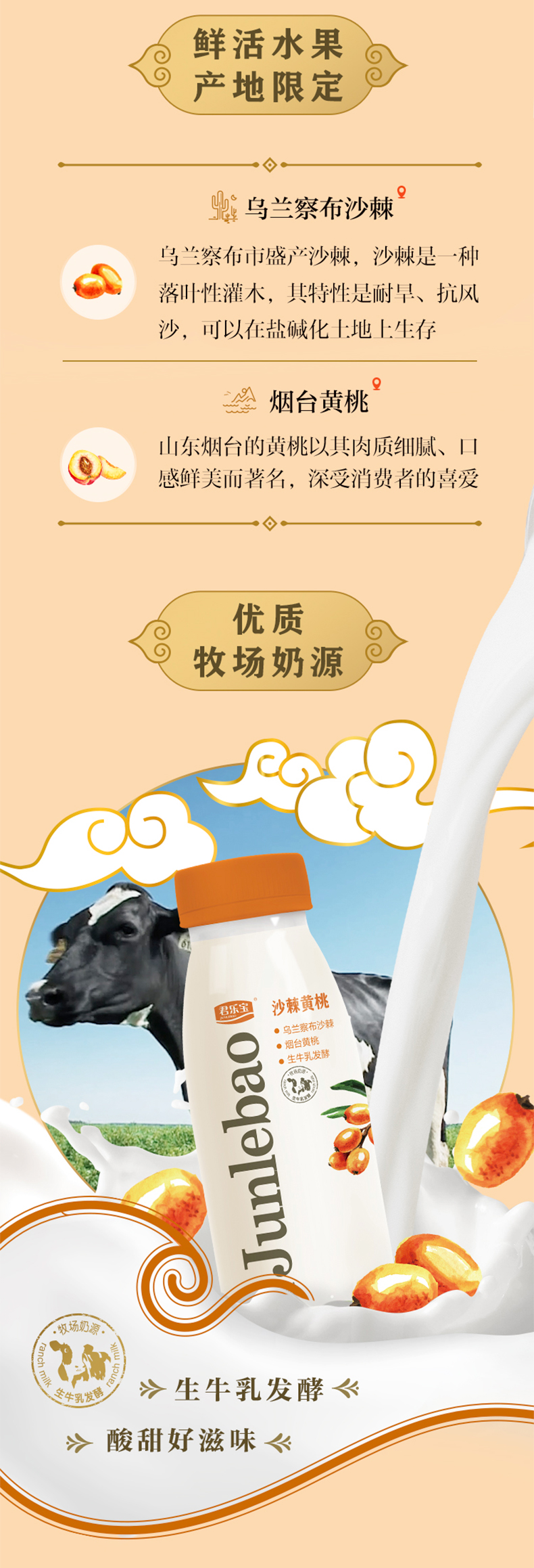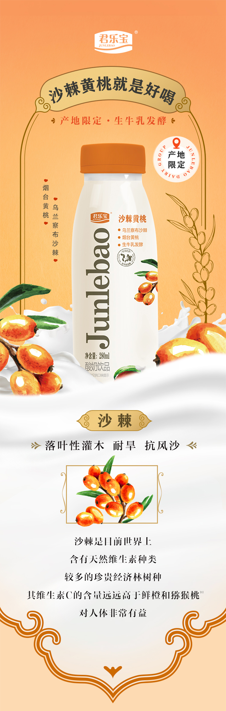 君乐宝沙棘黄桃280ml低温营养酸奶饮品生牛乳发酵乌兰察布沙棘