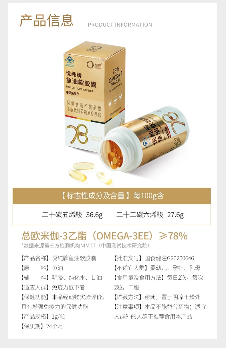 【达人专享】悦纯鱼油软胶囊-78%纯度