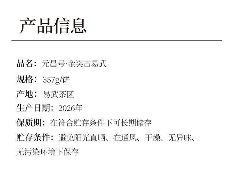 【元昌号】2026年金奖古易武青饼357g生饼(2021年原料)