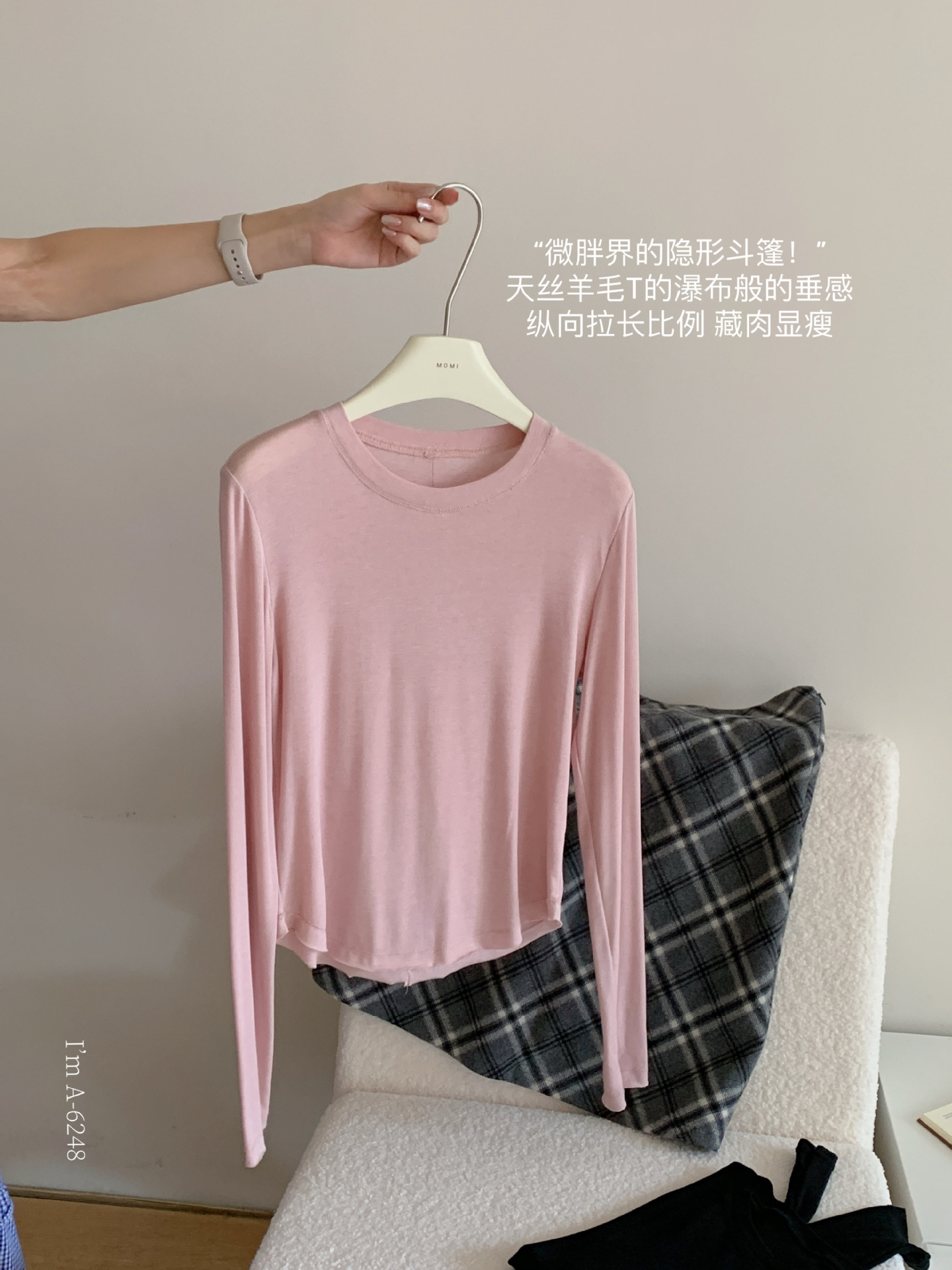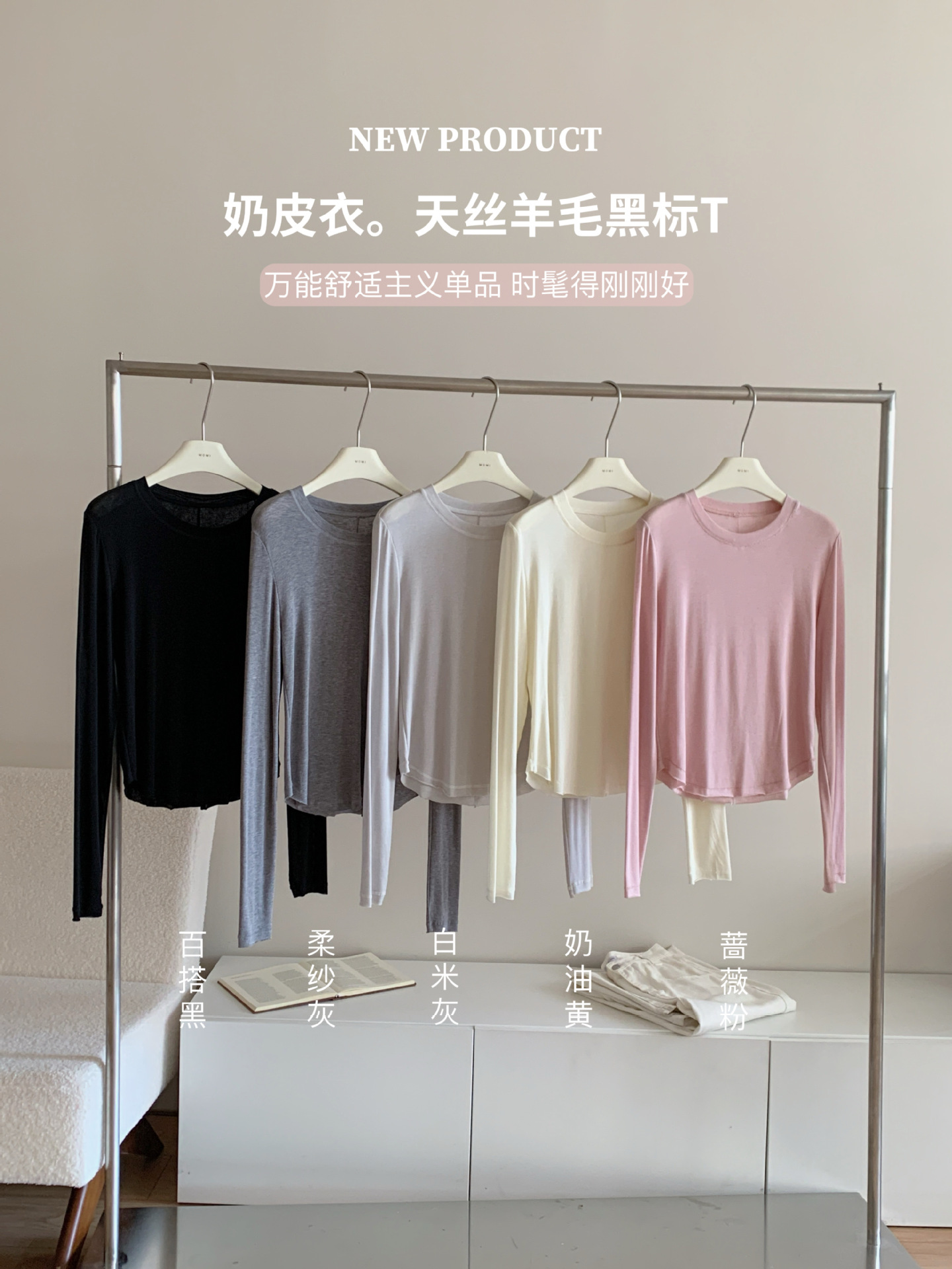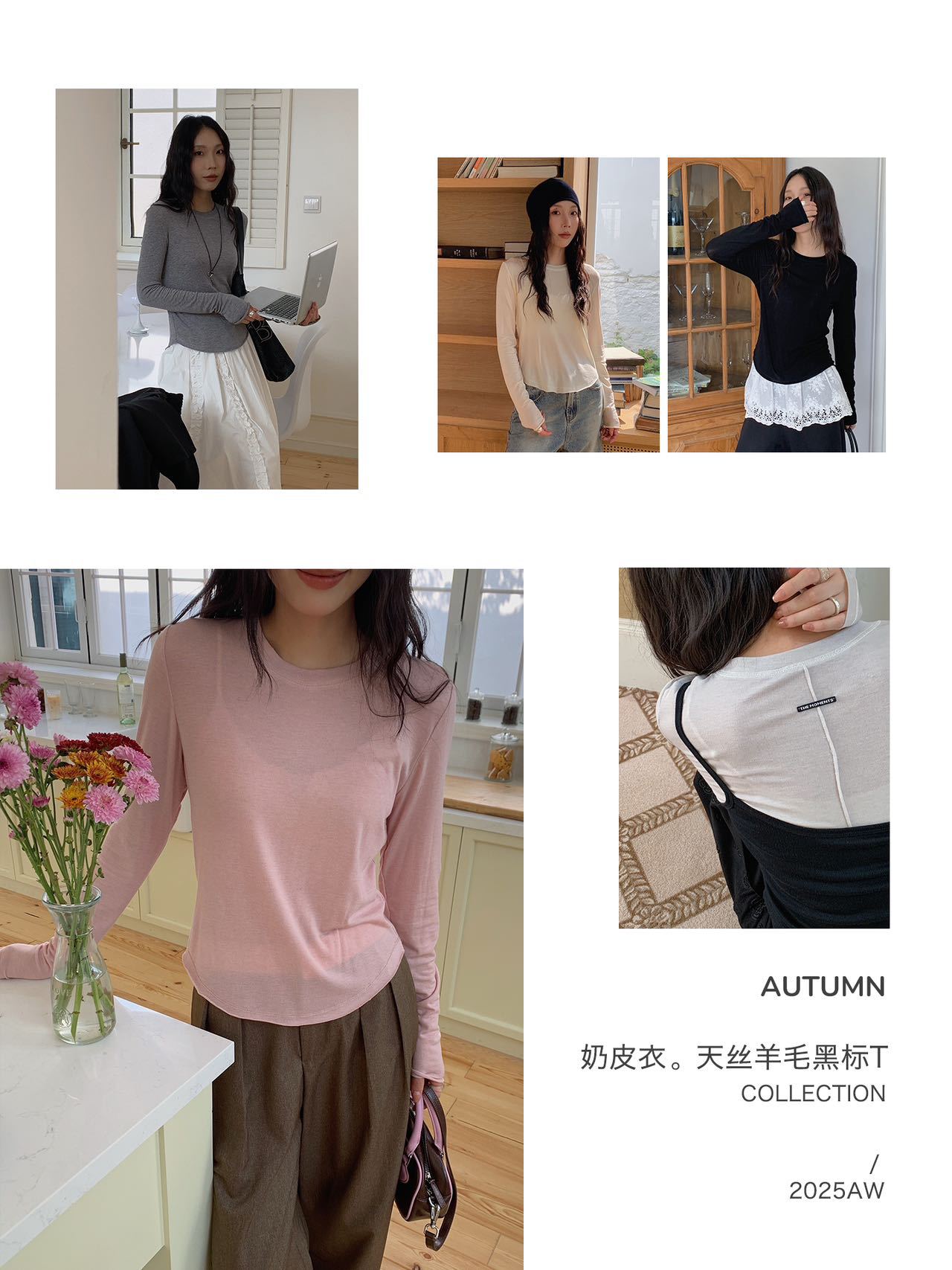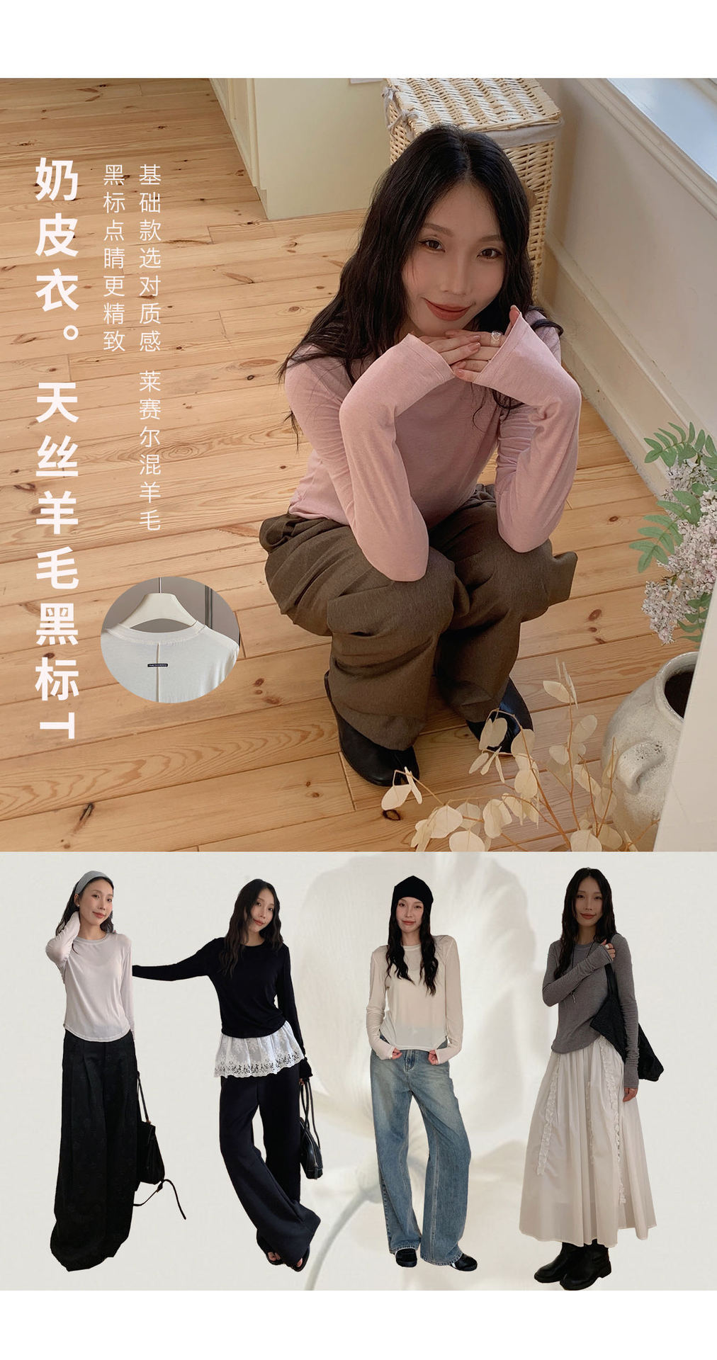 奶皮衣。天丝羊毛黑标T恤女秋冬新款可外穿设计感内搭打底衫上衣