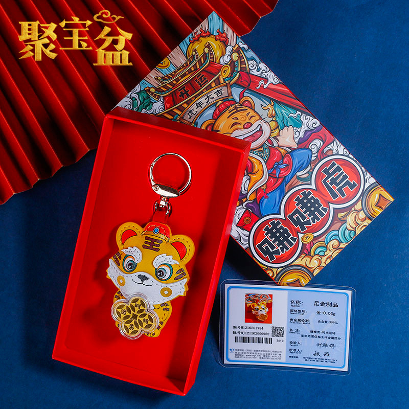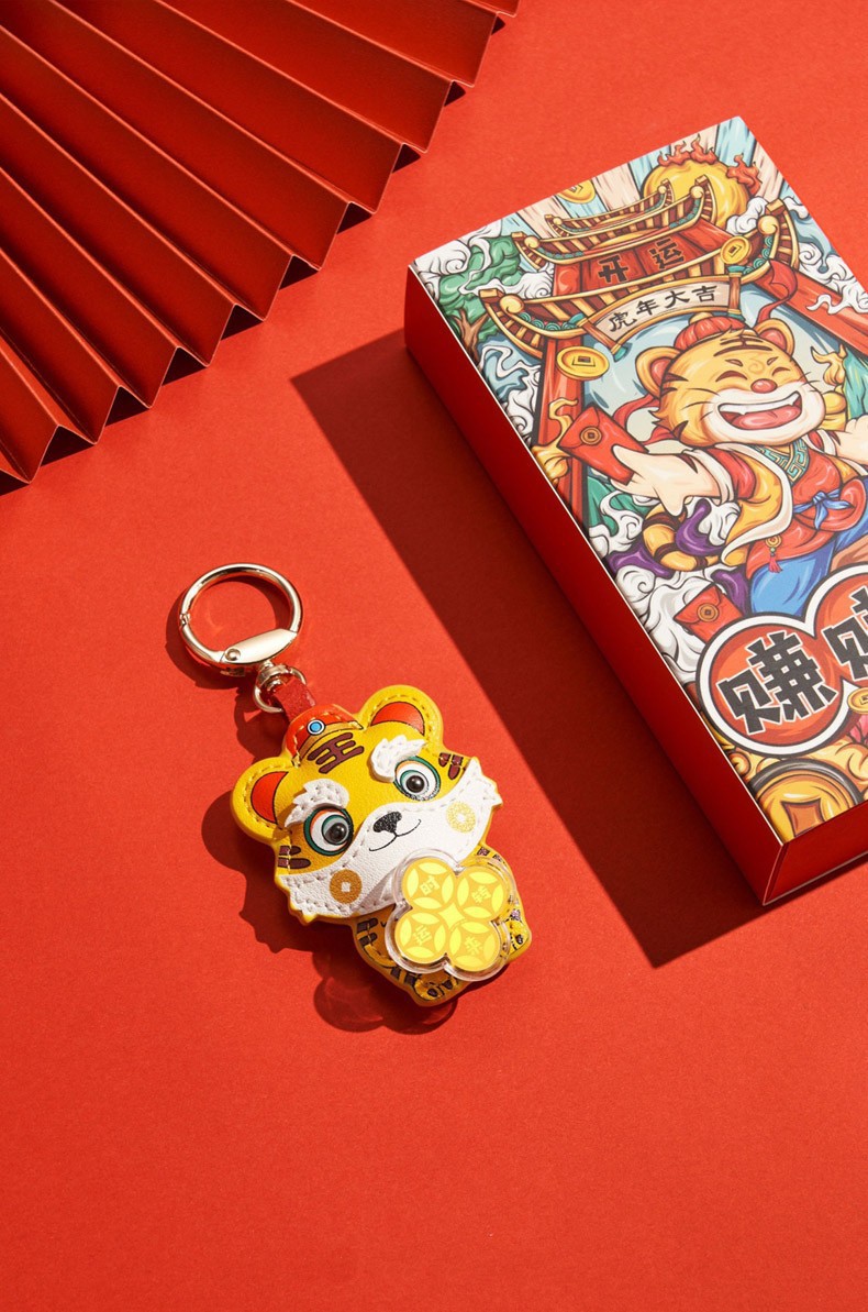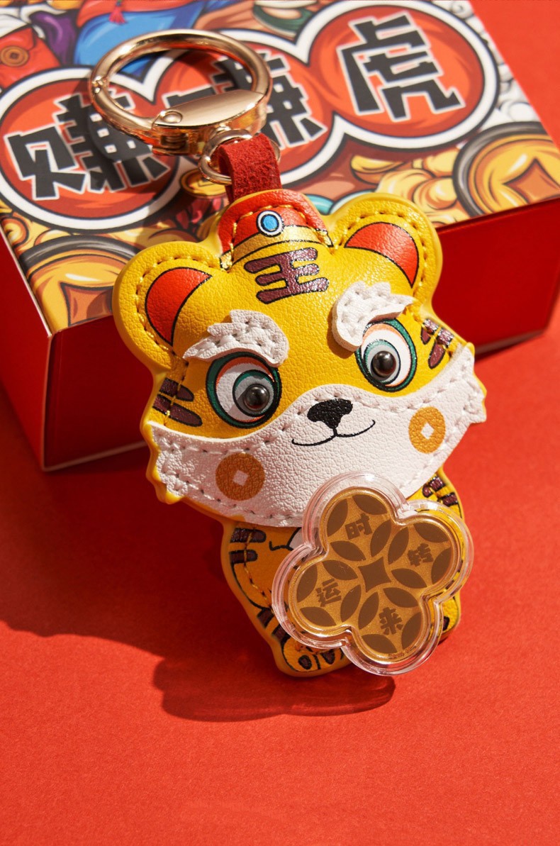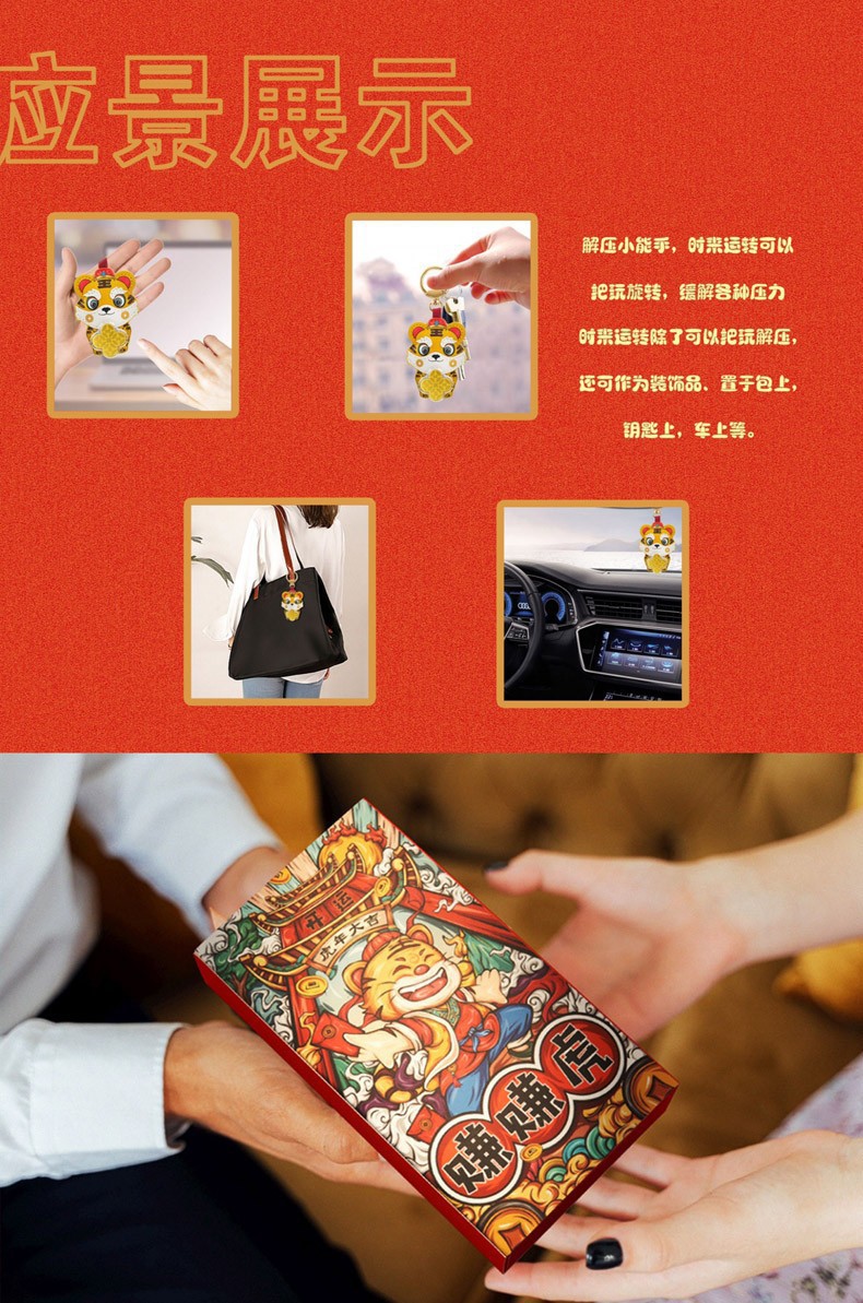 【赚赚虎-可以把玩旋转-好看又解压】2022虎年金箔时来运转赚赚虎钥匙扣配件包包挂件挂饰车挂礼品