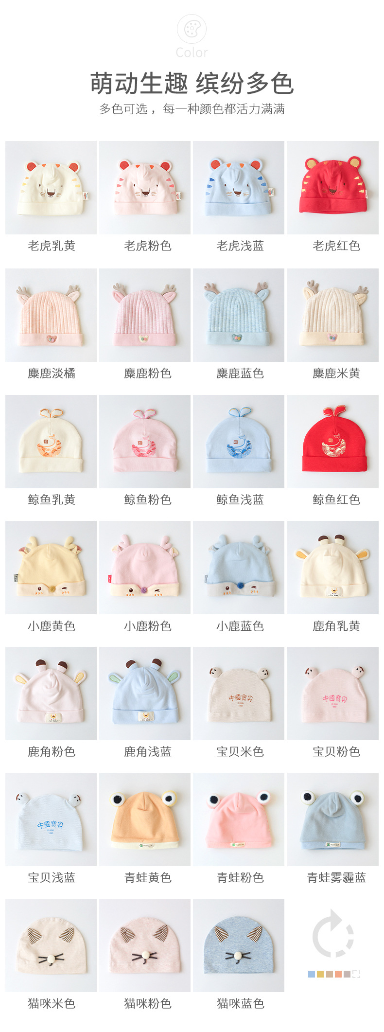 【萌动生趣 无骨胎帽】婴儿帽子春秋韩版ins纯棉无骨婴幼儿胎帽新生儿宝宝护卤门帽