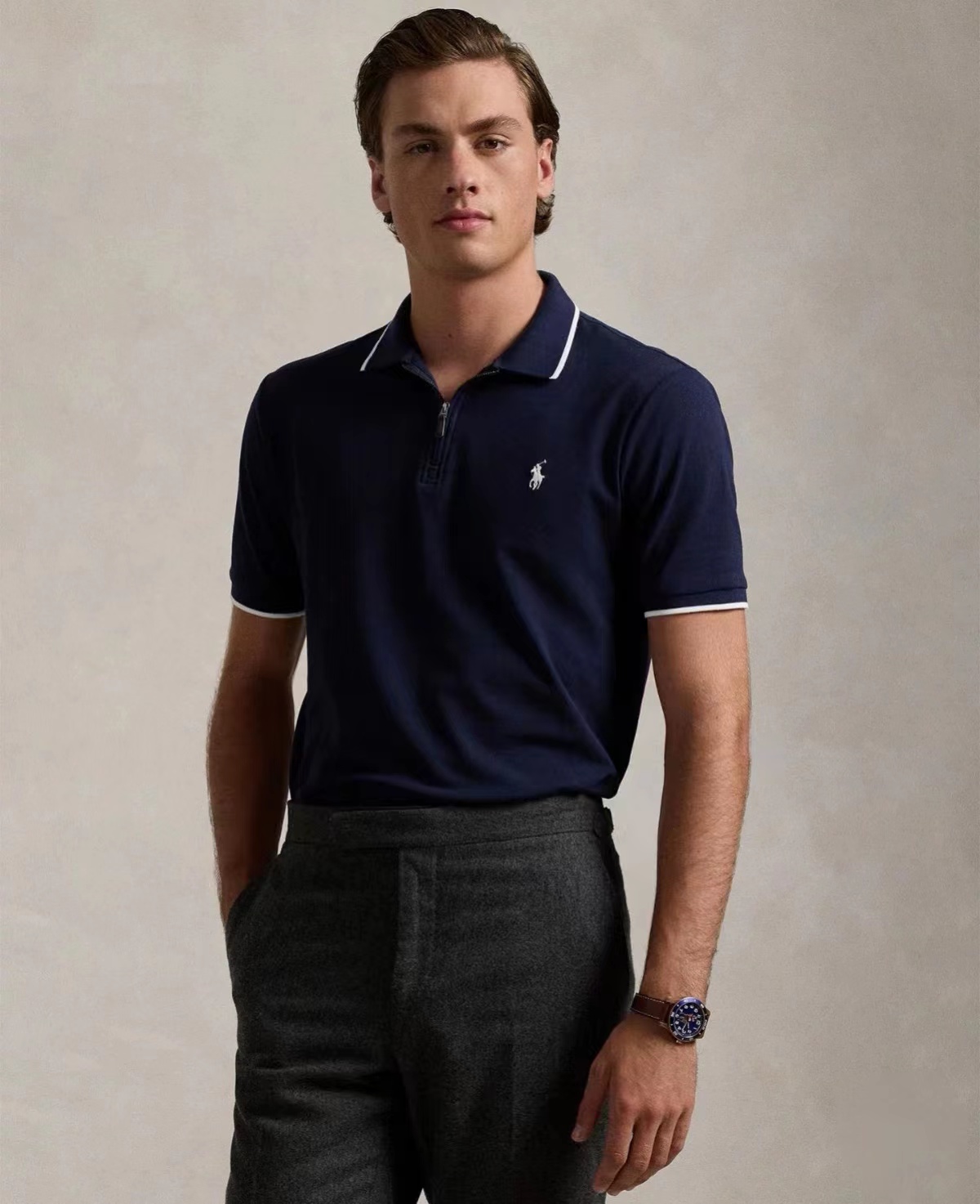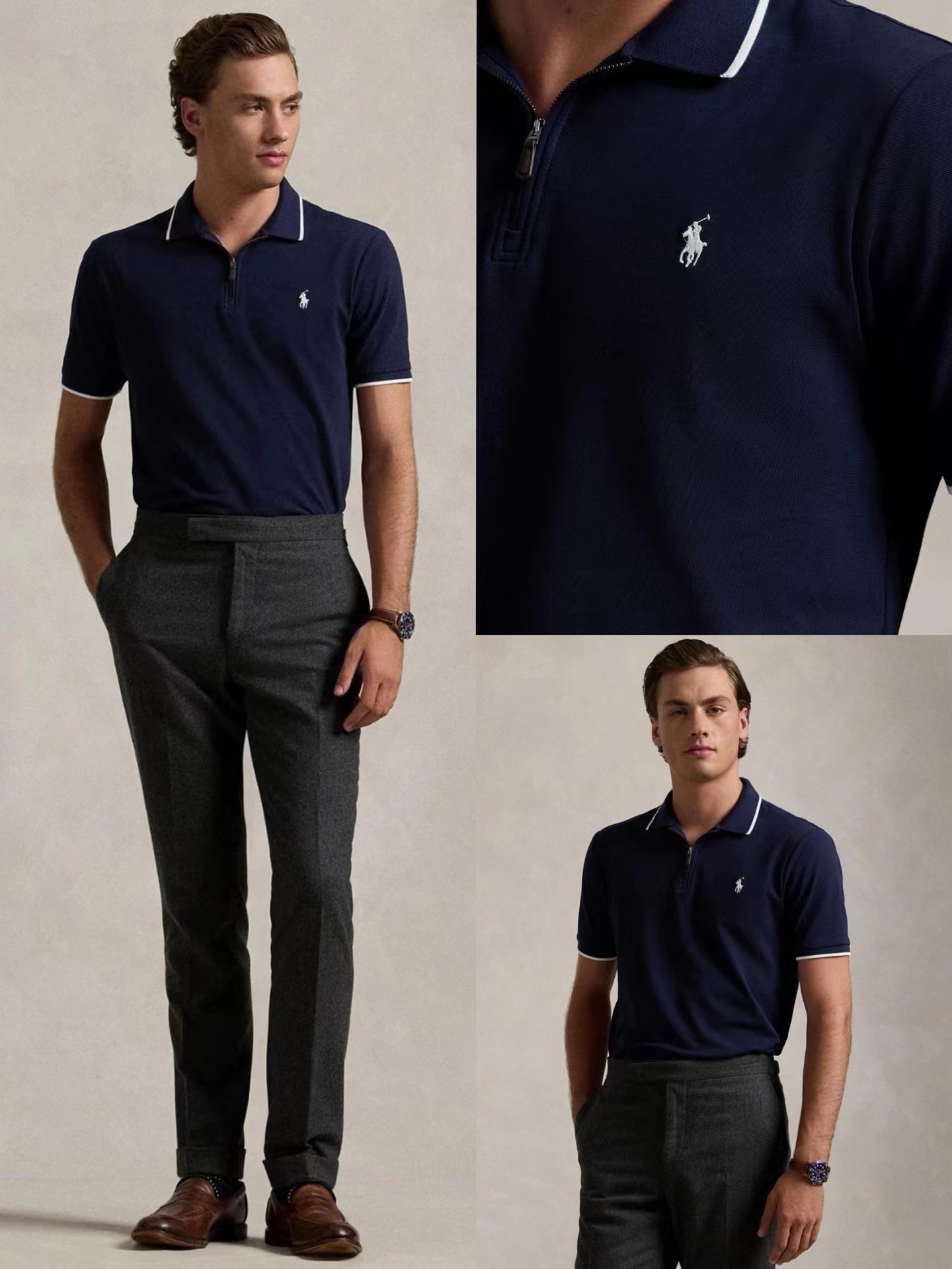 男装半拉链新款镶边翻领男士POLO衫 商务休闲纯色领子小马刺绣重磅纯棉T恤 短袖POLO衫 四色齐发 领子升级 230克拉架珠地洗水面料 胸前和后背是刺绣 上身非常好看!随意搭配,!采用100纯棉水洗拉架珠地网眼棉,这款非常透气舒爽,领口和袖口 做工非常规整!胸口刺绣一线不连! 修身的版型 搭配非常wan美!这个不需多说!靓丽的彩色,夏日人手都要备上两件,对于男人来说,这类短袖Polo衫,自然是少不了的!使用的是一直流行于欧美时尚奢侈品针织衫中的面料紧致不松口,简约明快的设计让这件POLO衫显目出众人商务还是休闲时候都能胜任!对于男士而言有一件糕端有品味的polo衫!