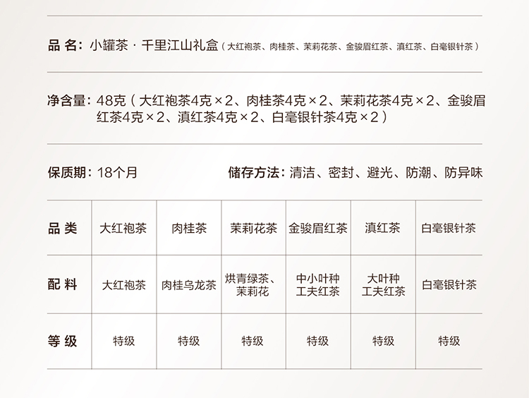 【新品】小罐茶·千里江山礼盒(大红茶、肉桂茶、茉莉花茶、金眉红茶、滇红茶、白毫银针茶) 【现货】