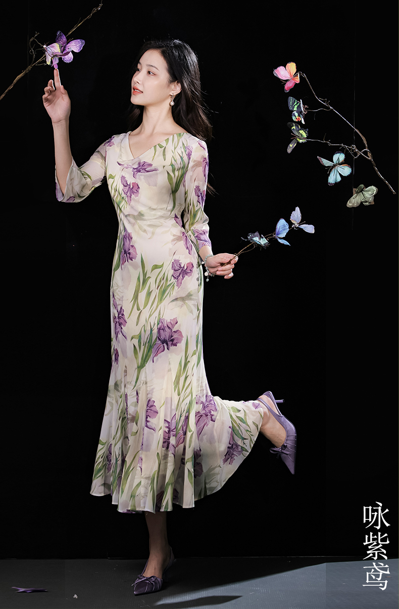 💜穿上这条满是紫鸢尾的裙子,不仅美得像仙女,还自带“聪明、有品位、有希望、被爱包围”的美好光环~~ 穿上它,感觉整个人都充满了温柔又强大的女性力量。