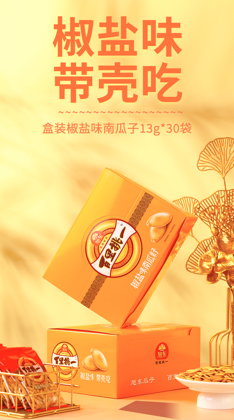 旭东30袋盒装椒盐味南瓜子百里挑一休闲零食坚果炒货年货厂家直供