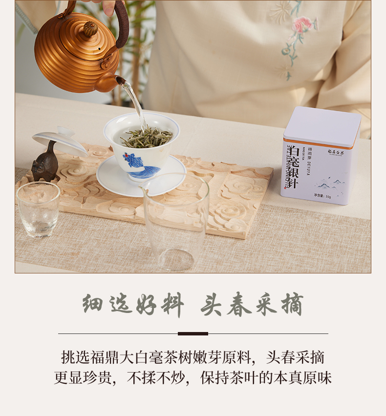 得雨芽丨白毫银针 头春 福鼎白茶 特级 2023年 50g
