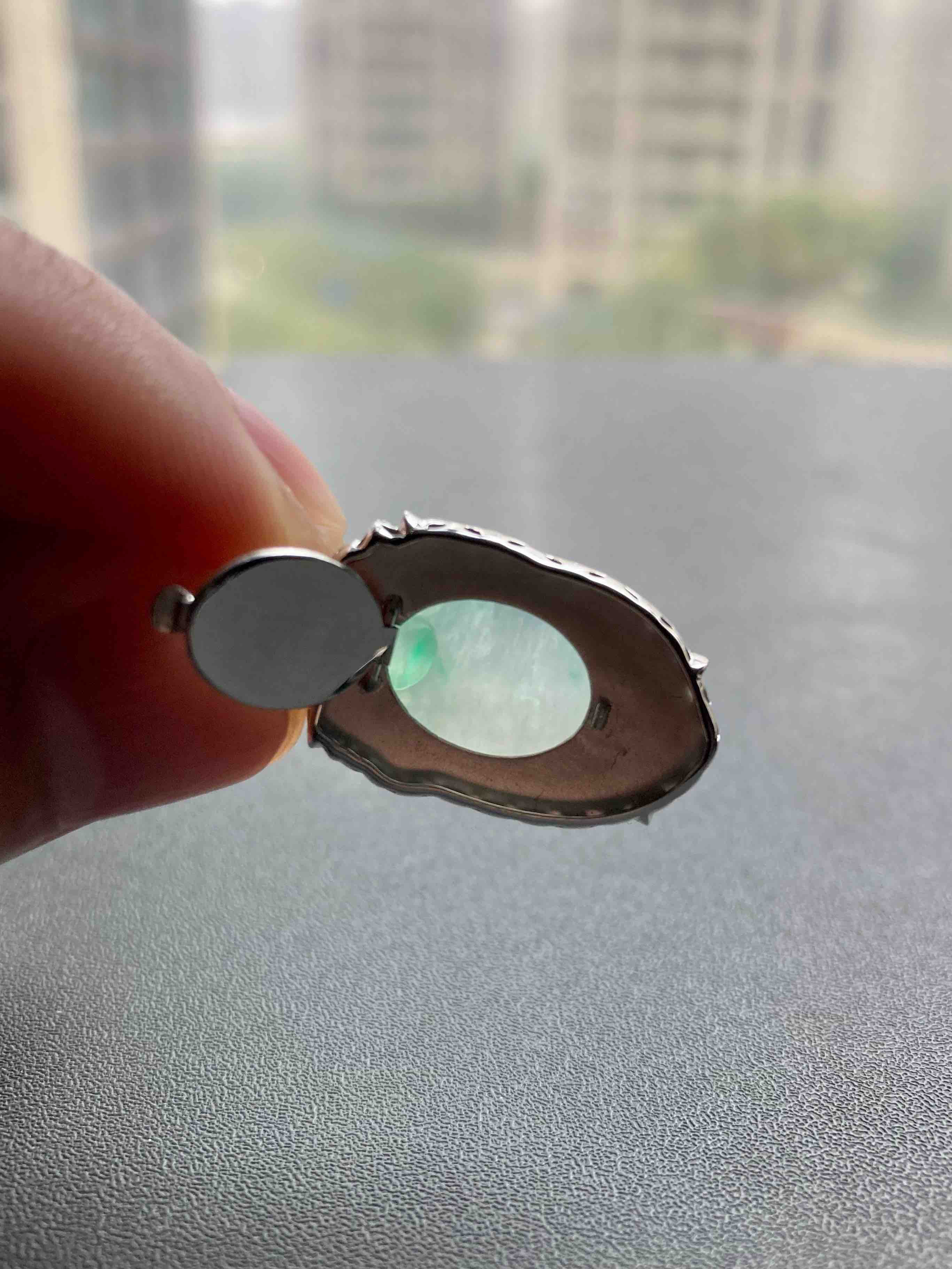 高冰种晴水绿翡翠蛋面戒指18k白金钻石镶嵌