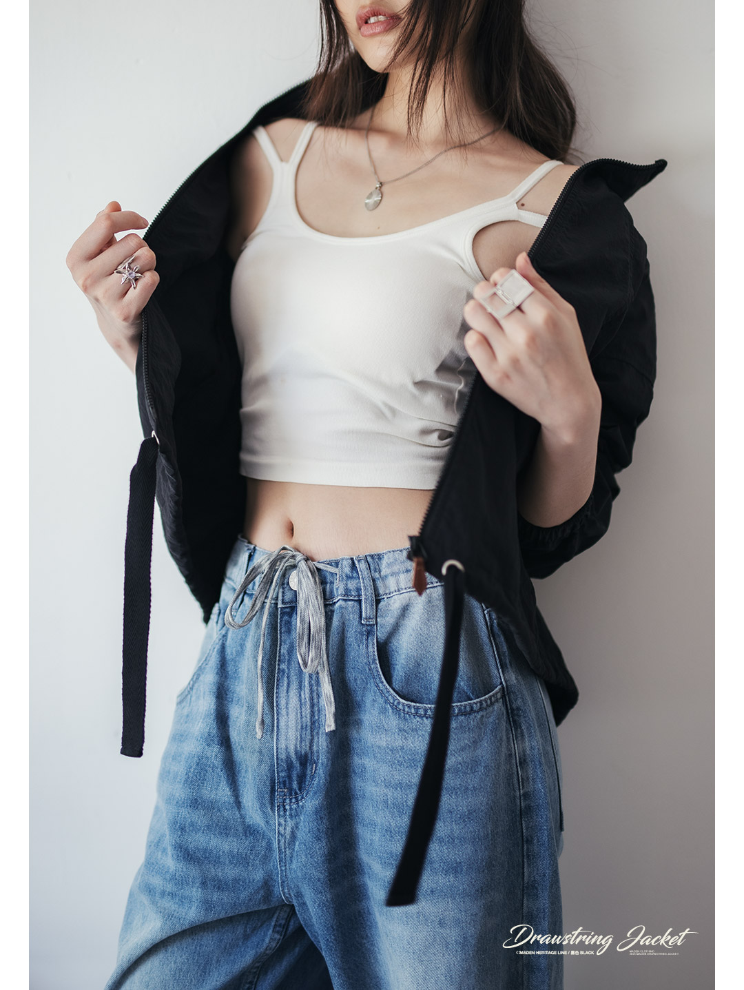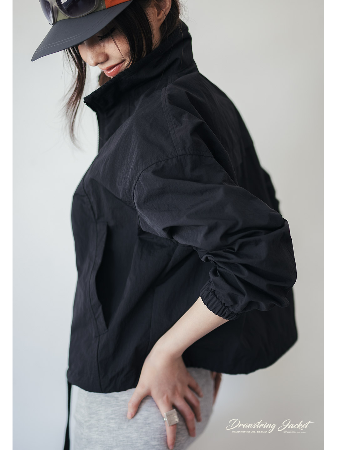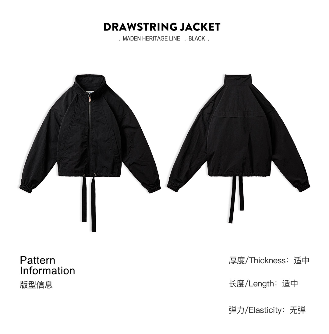马登美式复古抽绳夹克翻领可收腰工装外套小个子宽松上衣春秋季女