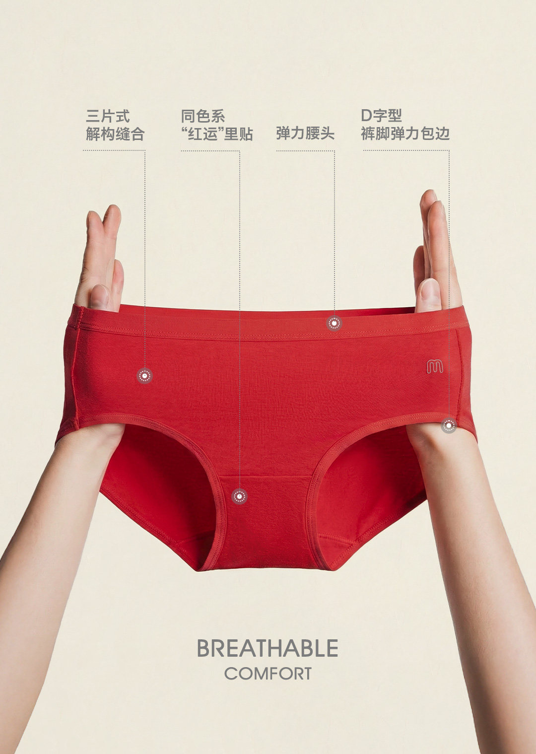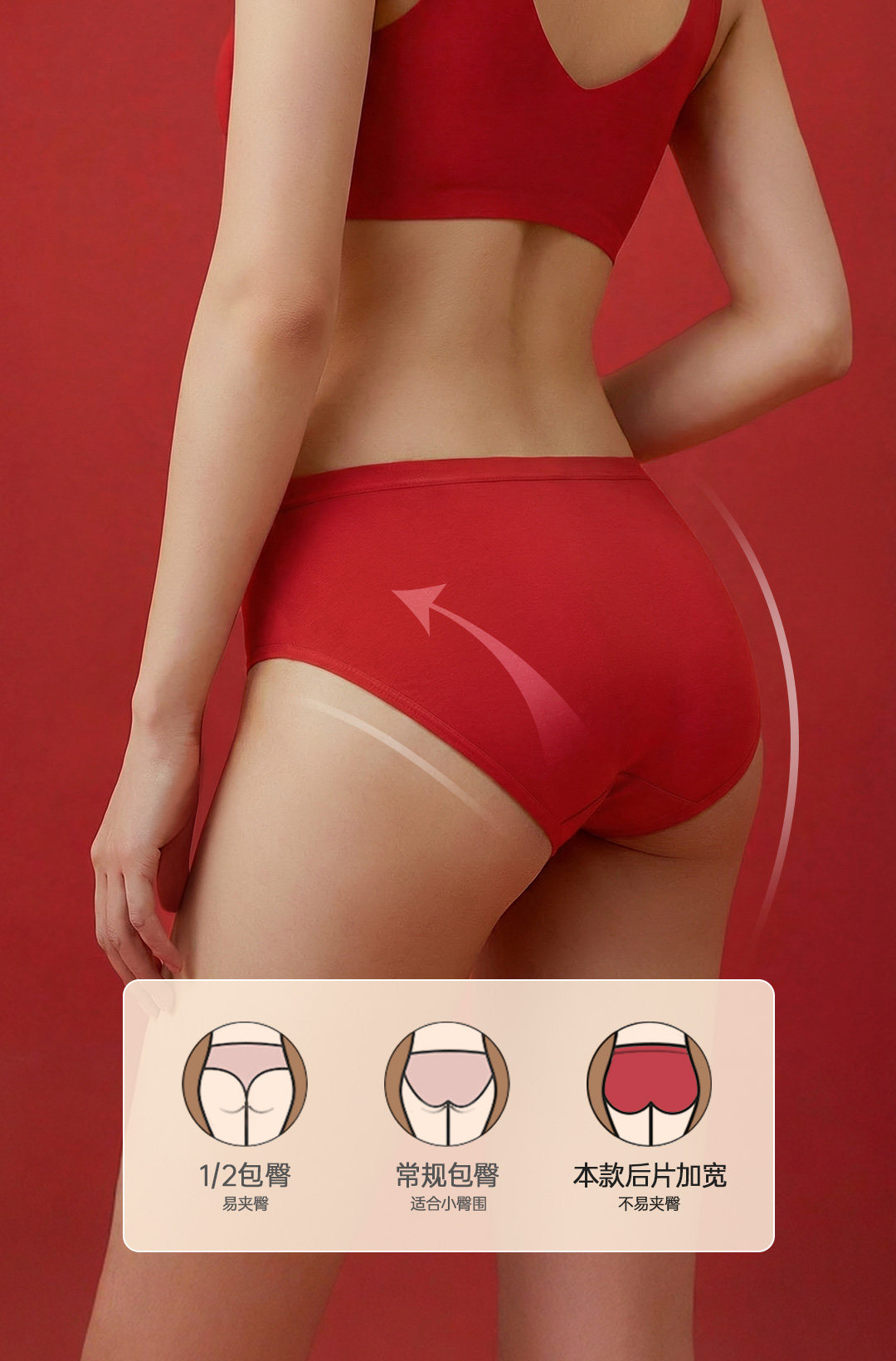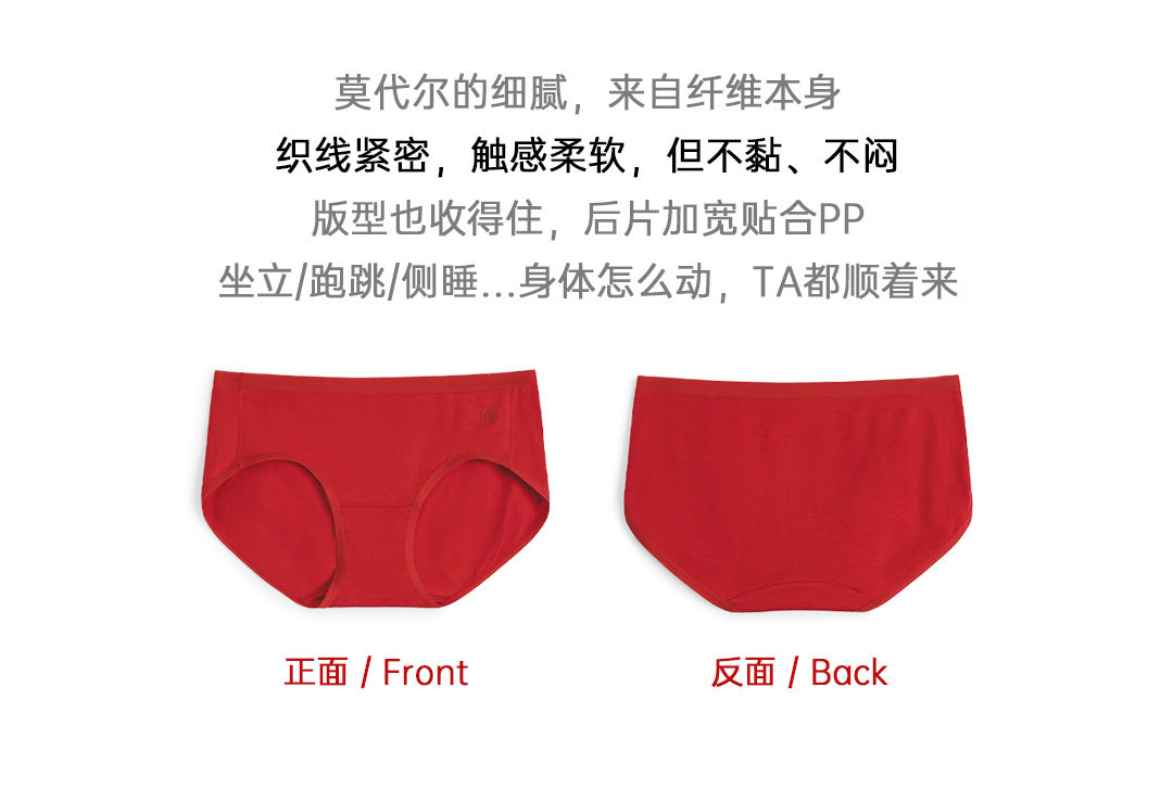 马登莫代尔大红色本命年裸睡透气三角内裤结婚中腰短底裤衩头女士