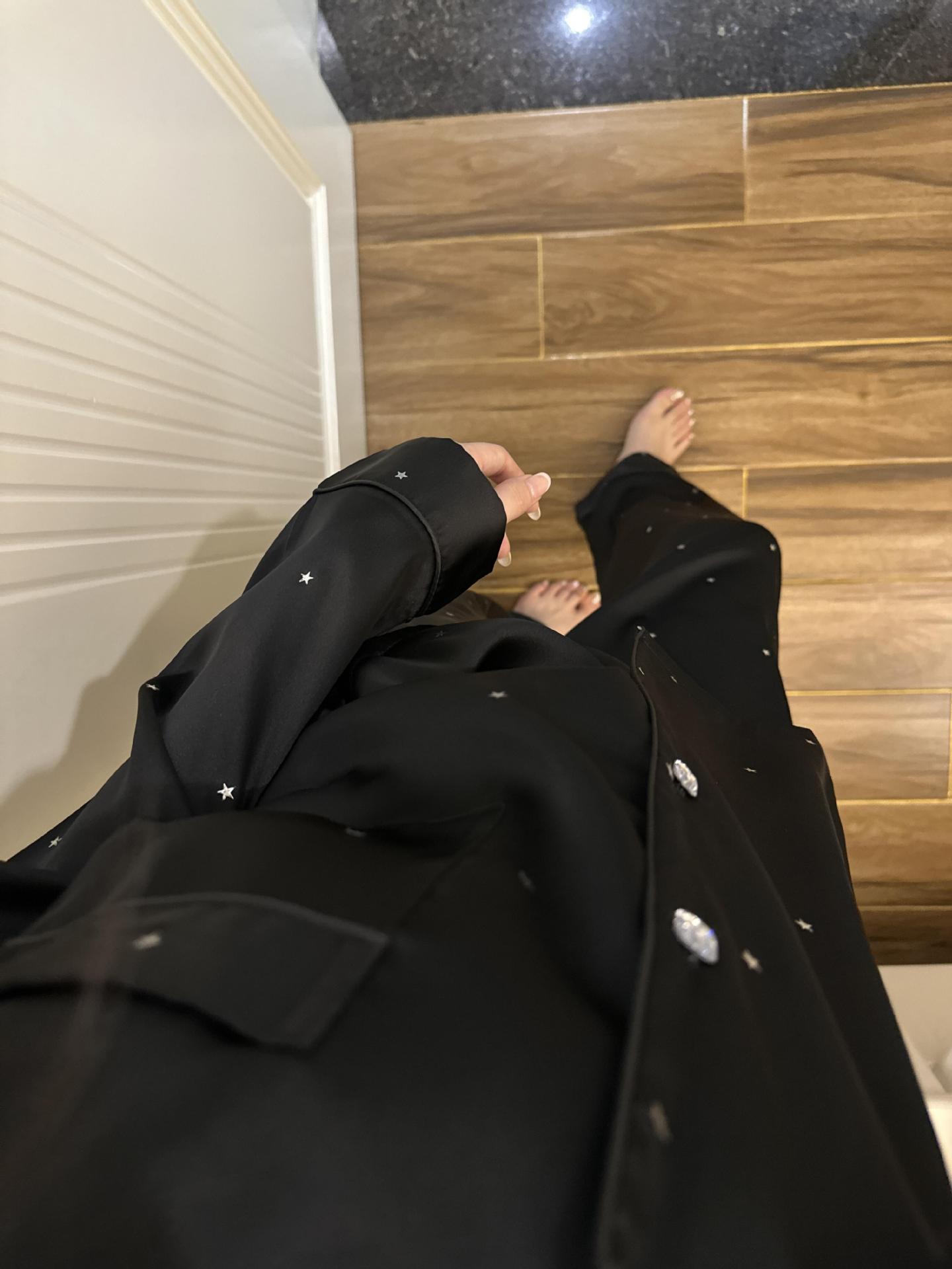 翻领的款式,超级百搭不挑人。星星设计好看也有点性感,钻扣,居家服也要精致~