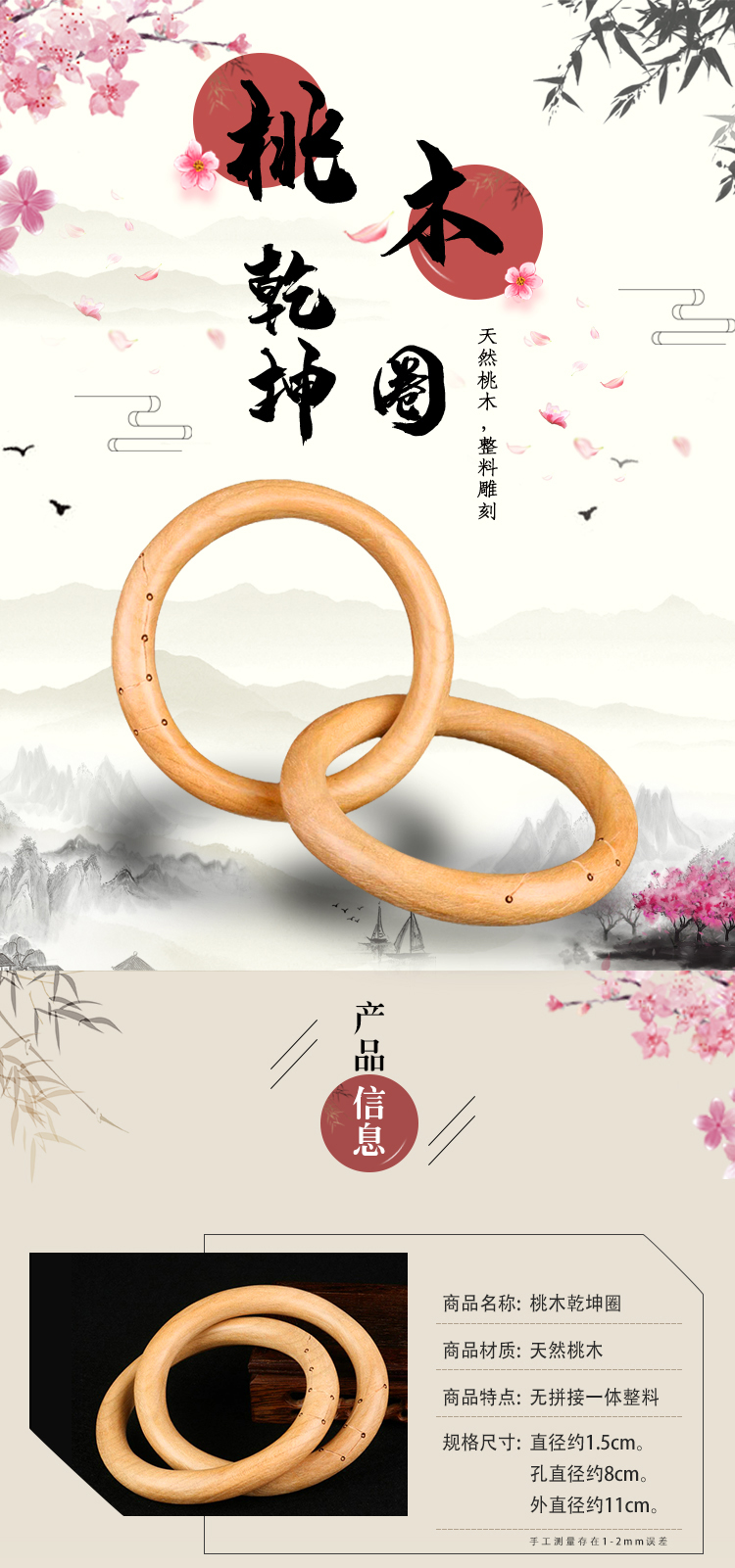 桃木乾坤圈,天然桃木,整料制作