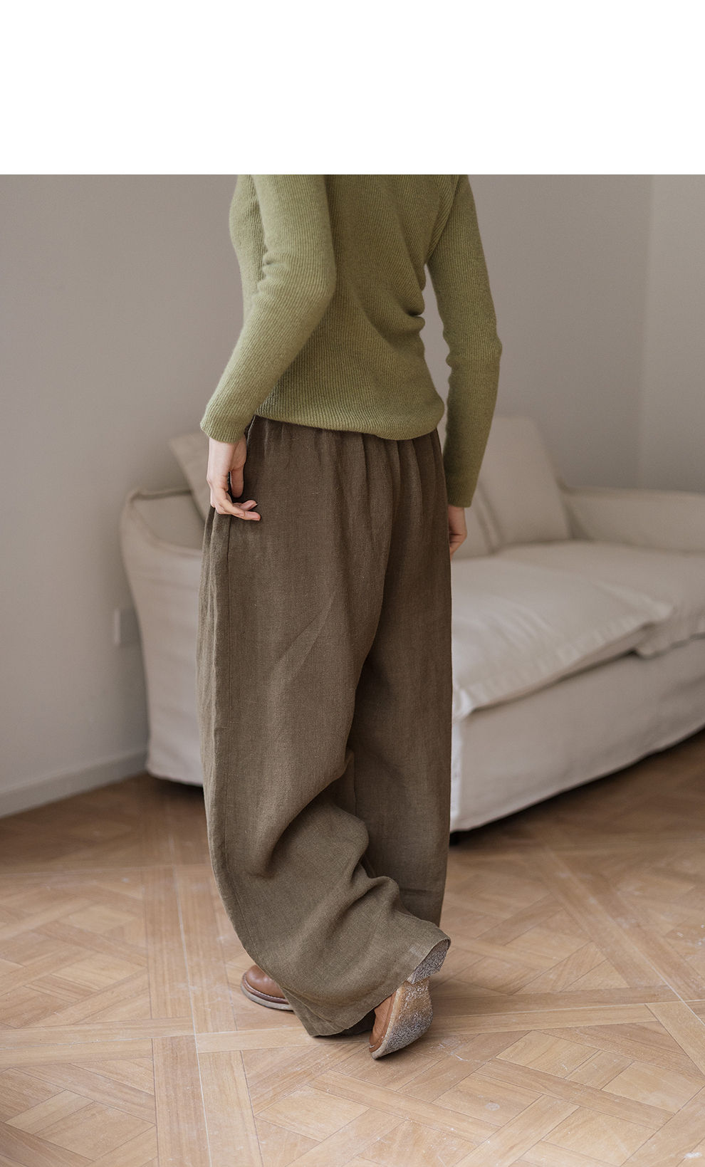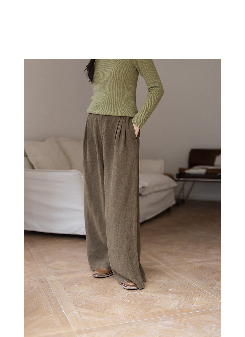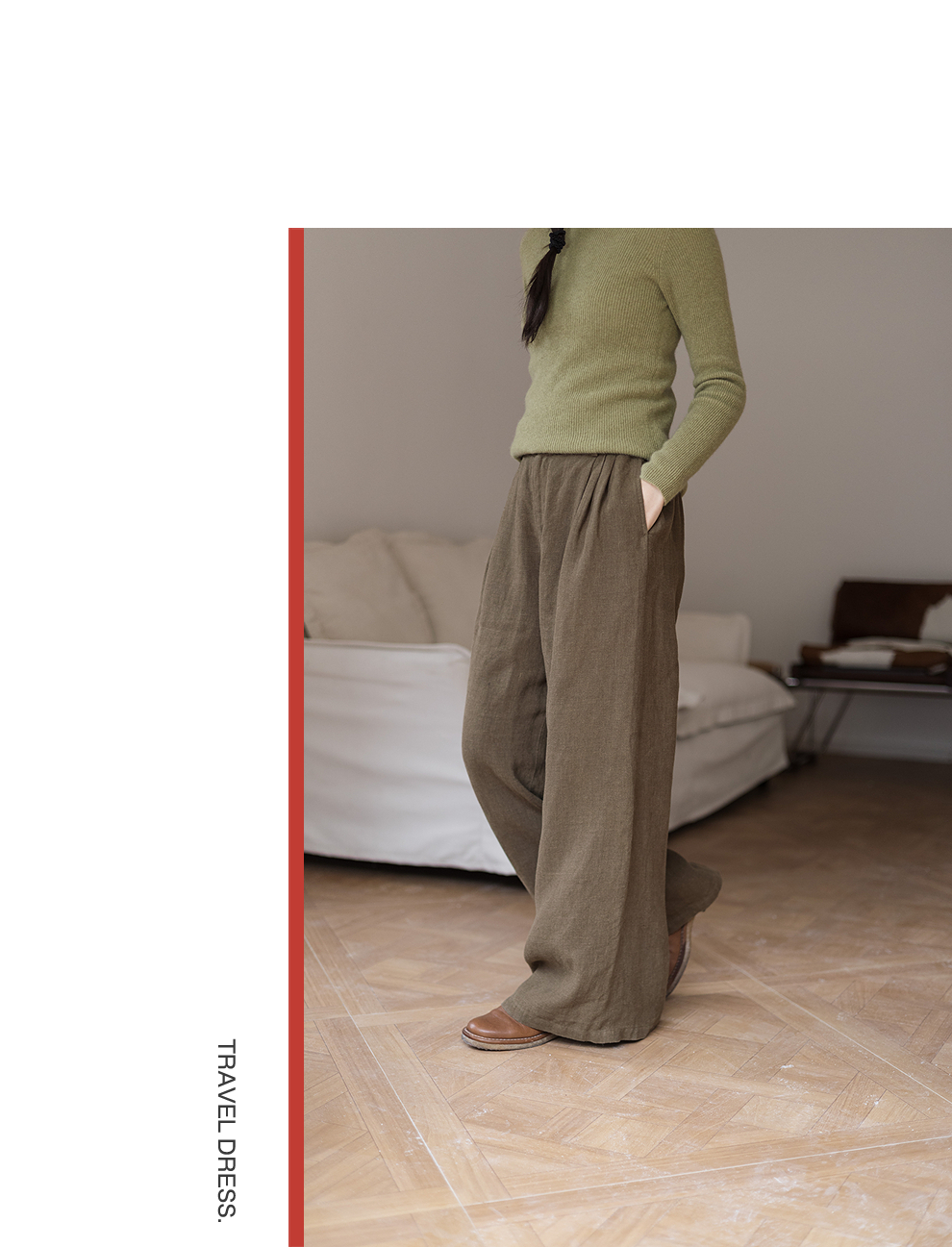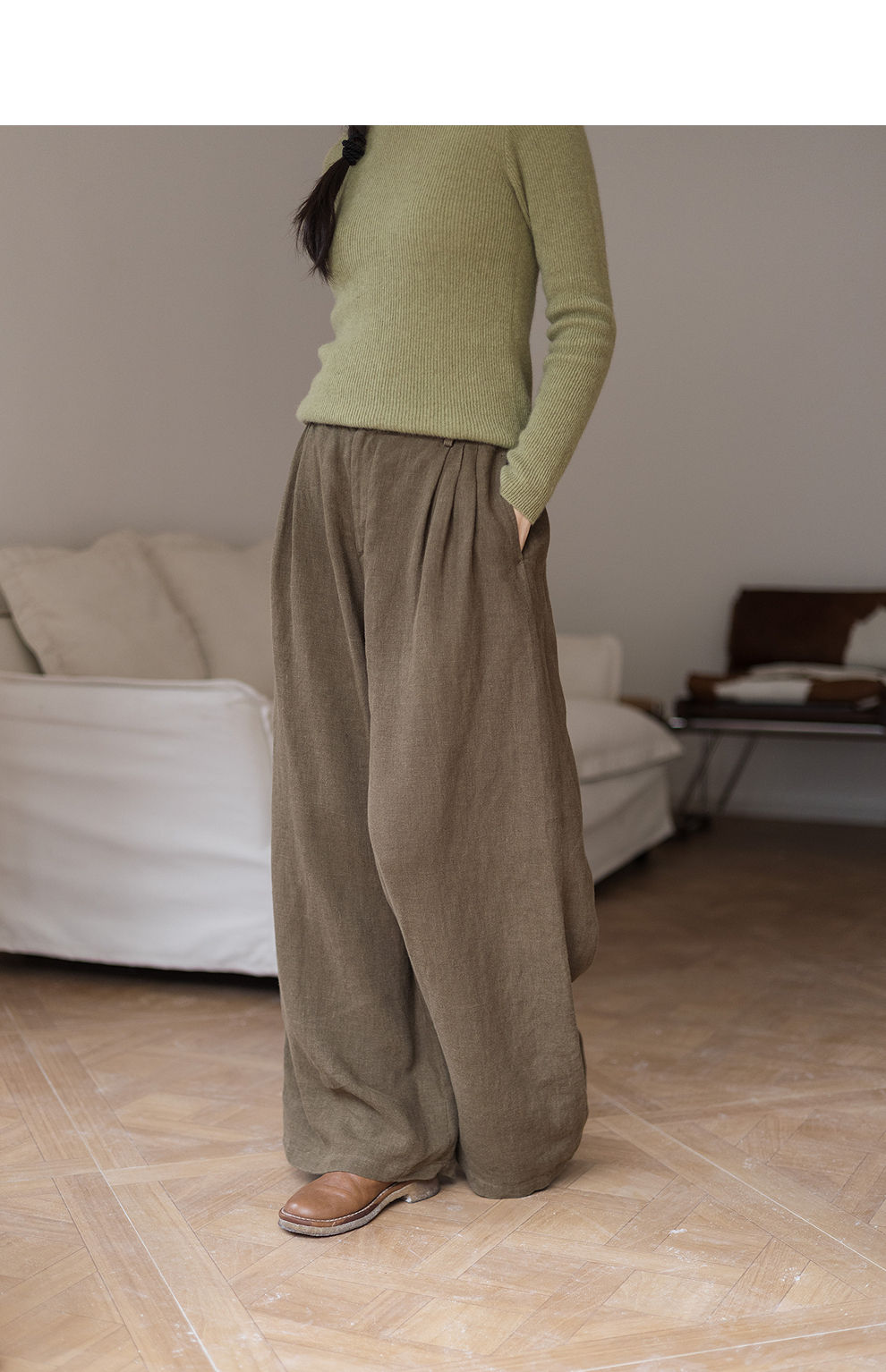 绽放666朵/加厚亚麻半腰松紧宽松阔腿裤女显瘦松弛感休闲裤冬新款