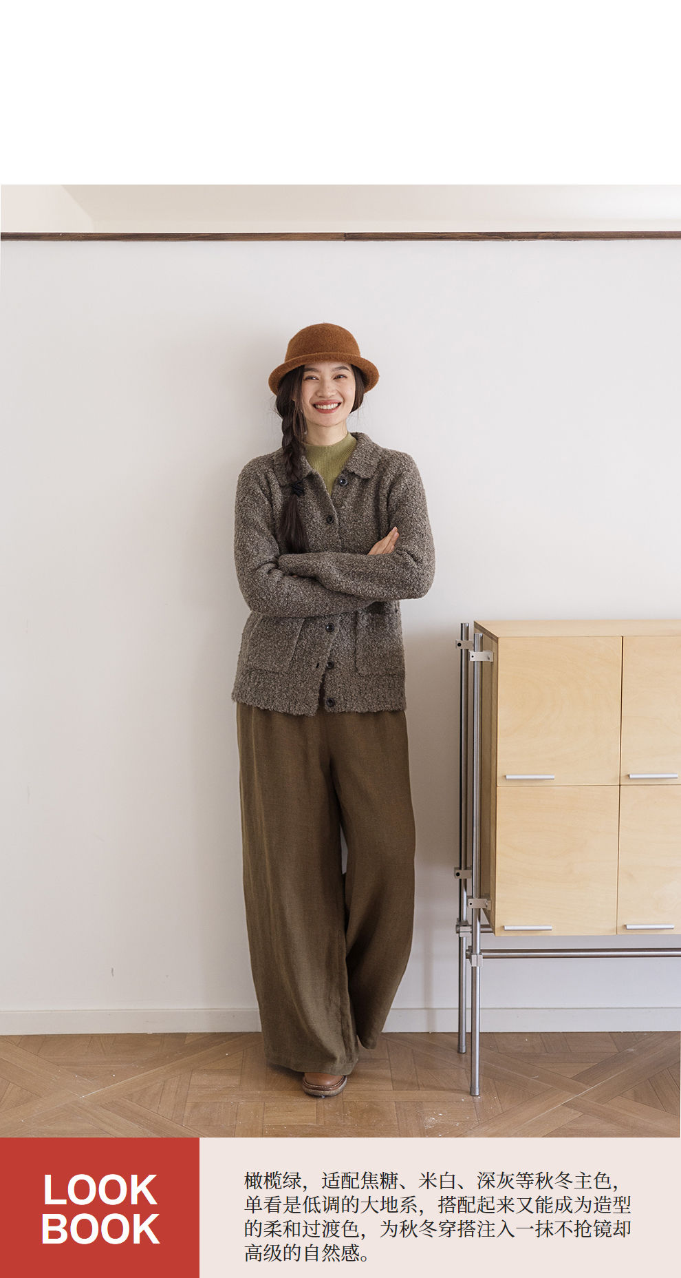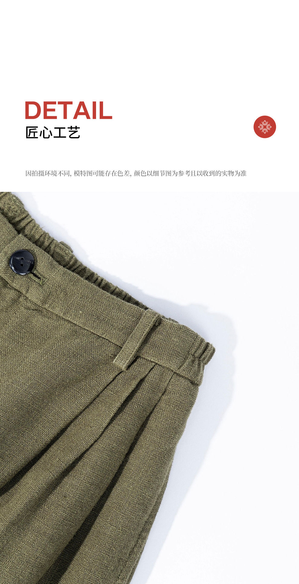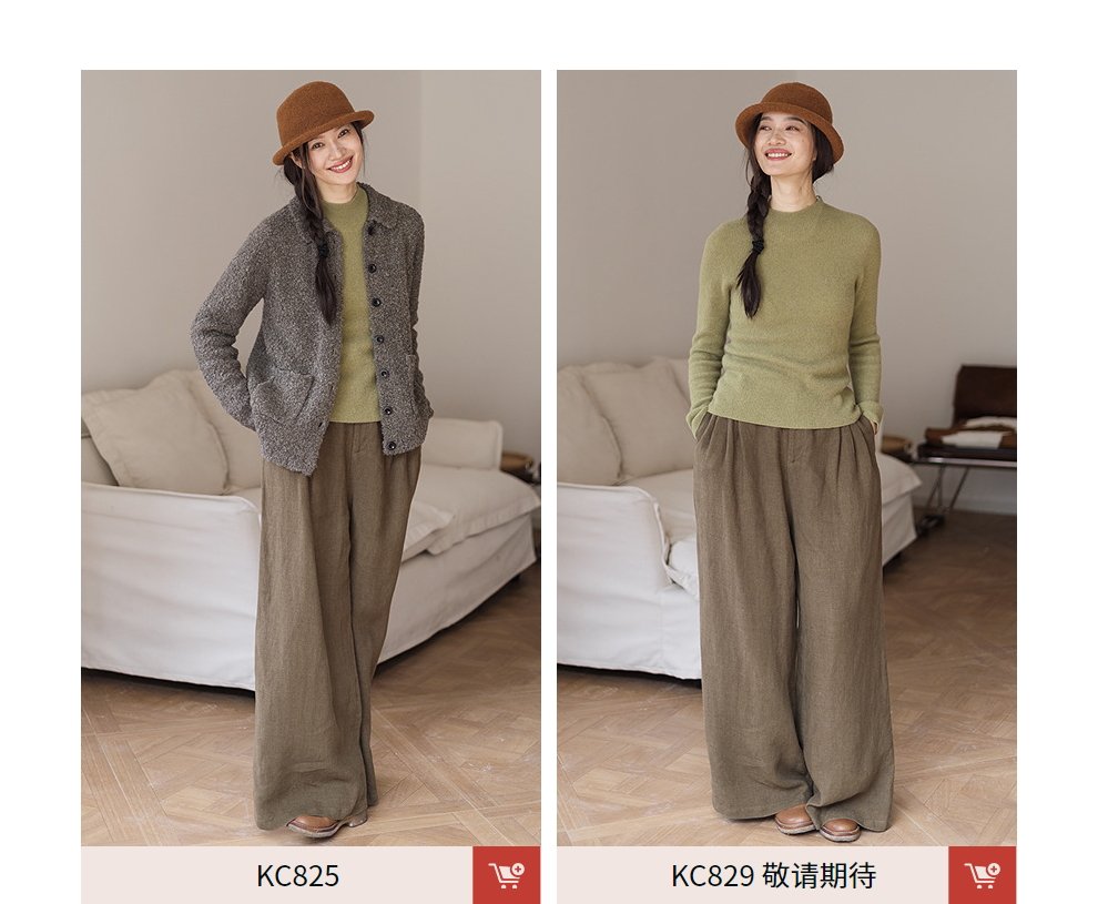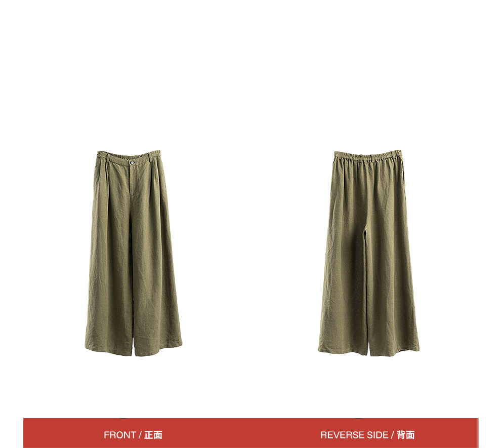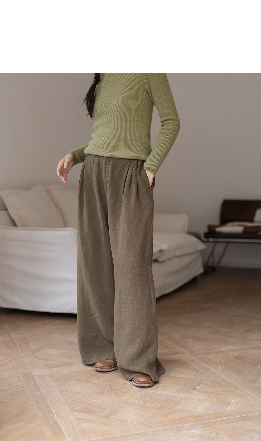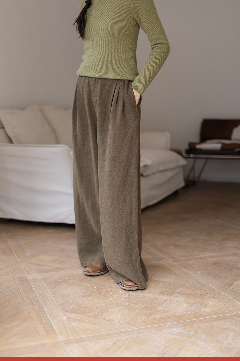 绽放666朵/加厚亚麻半腰松紧宽松阔腿裤女显瘦松弛感休闲裤冬新款